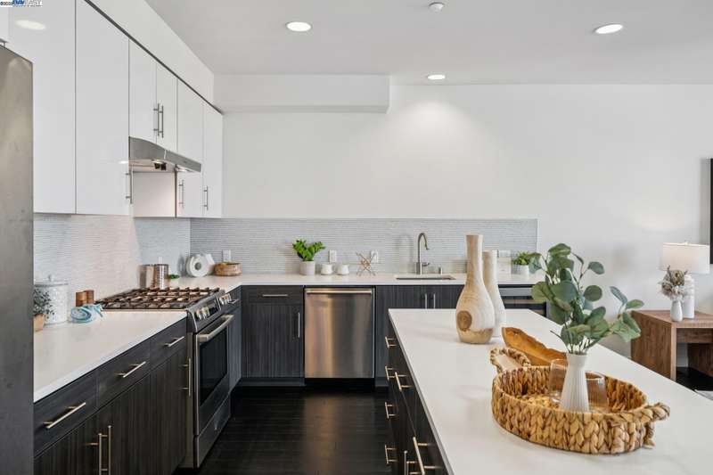 Stunning 3BR/2BA (3rd BR is currently an office). Condo with BayViews in SF Shipyard! Located in a secure, gated building with a 1 car garage, this home offers an open and light-filled living space. The chef's kitchen is an entertainer's dream, complete with an expansive island, quartz countertops, a gas range, wine fridge, and stainless steel appliances. The first-floor primary suite features a walk-in closet, walk-in shower, and serene views. A second bedroom, full bathroom, and laundry are also conveniently located on the same level. The versatile den is perfect for a home office or guest room. Enjoy the vibrant community amenities, including scenic walking paths, a playground, and BBQ areas. You're just a 10-minute drive from South Beach, the Chase Center, and Mission Bay, with easy access to freeways, SFO, and the Peninsula. Plus, exciting new developments like the 10-acre India Basin Park (2026) and the recently opened 900 Innes food court are just steps away!