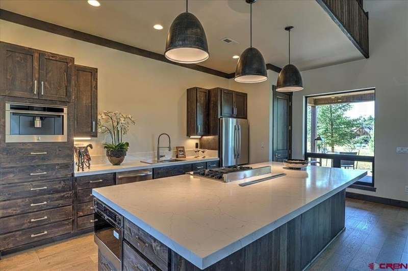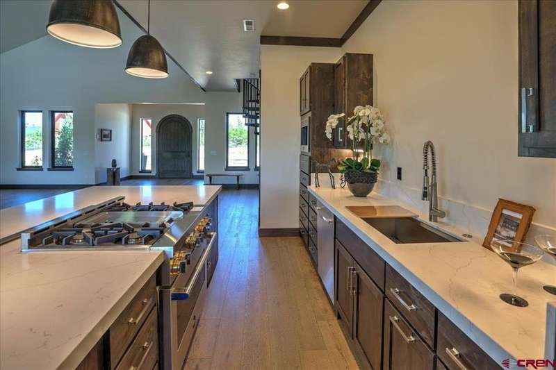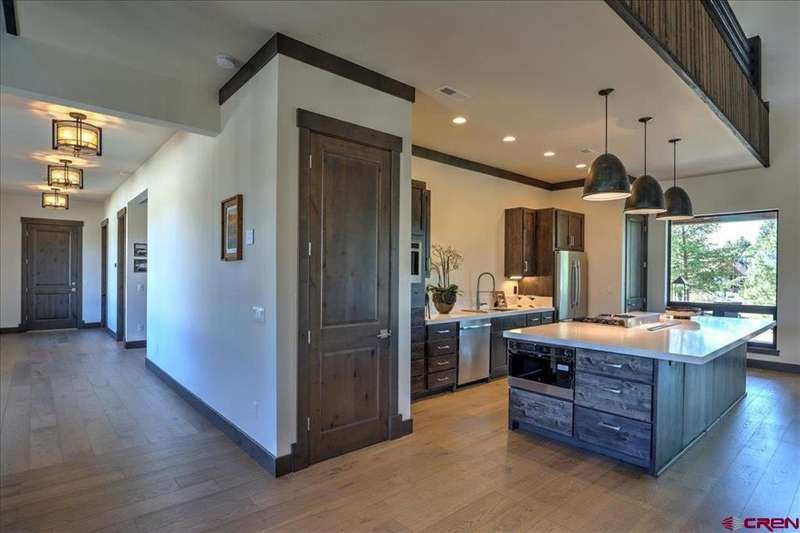 Brent Christians, Galles Properties, C: 970-759-6844, brent@gallesproperties.com, www.GallesProperties.com: RECENT PRICE REDUCTION! Presenting 120 Glen Eaton Drive....where sophistication meets comfort, and all the designer finishes have been thoughtfully crafted for modern living. This beautiful home is a balanced blend of functionality and high-end luxury, highlighted by the seamless indoor/outdoor living spaces ideal for relaxation or entertaining. Step through the over-sized, hand crafted arched front door into the foyer, illuminated by hidden ceiling lights, setting the tone for the refined interiors throughout the home. Hardwood oak floors throughout the home provides a cohesive design. The open-concept kitchen, dining, and living area is showcased by the chef's kitchen which features JennAir stainless steel appliances, a 10-foot quartz island with integrated range and downdraft ventilation, a built-in coffee bar, custom cabinetry and furniture-grade doors, casing and baseboards. The living room's highlighted feature is the stone wall with a modern built-in gas fireplace, flanked by shelving and a closet on each side of the fireplace. The split bedroom floor plan provides privacy for you and your family or guests. The primary ensuite, complete with double entry doors, a wet bar, and sliding glass doors to the outside deck highlighting indoor/outdoor living, offers a private sanctuary setting. Each guest bedroom has its own modern ensuite bathroom and sliding glass doors to the back deck, once again allowing for that indoor/outdoor feel. The home has 2 washers and dryers, conveniently located on either side of the home. The loft offers a flexible space for a home office, gym, media room or play area and has a private balcony offering mountain and lake views. A unique feature to this home is the 2 separate garages on either side of the home, offering ample parking for cars, an RV, and extra toys along with plenty of additional storage. The xeriscape landscaping ensures low outdoor maintenance, allowing you to enjoy more of the outdoors taking in the mountain and lake views. This home balances modern mountain living with elegance and luxury design. Come check it out, you won't be disappointed!