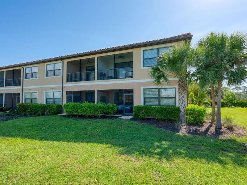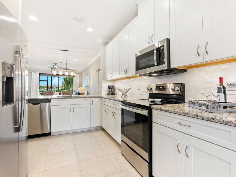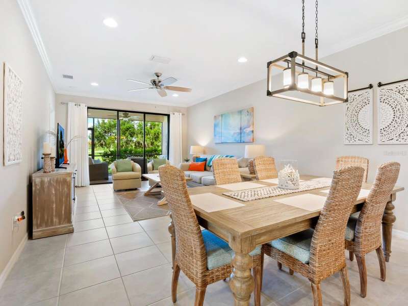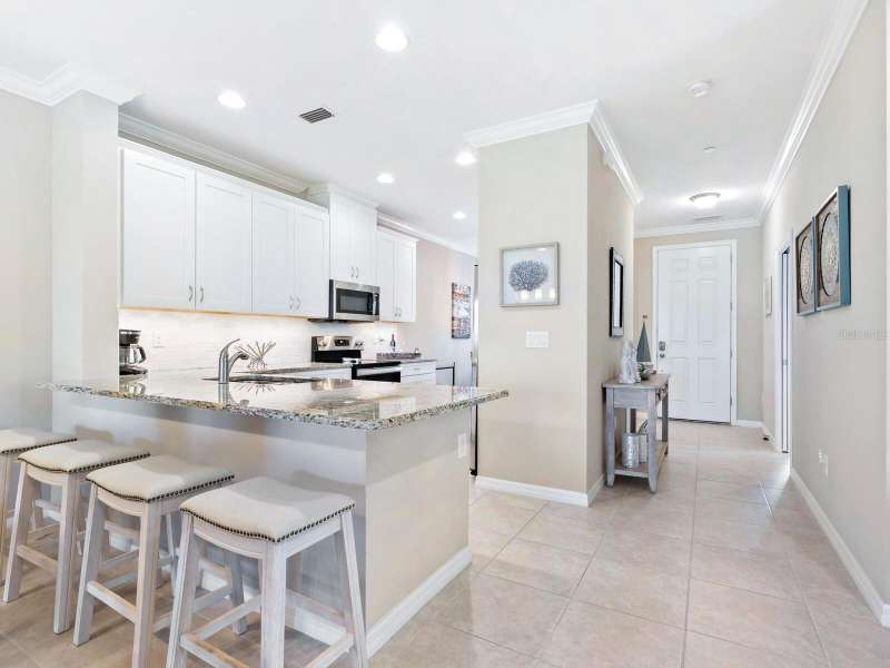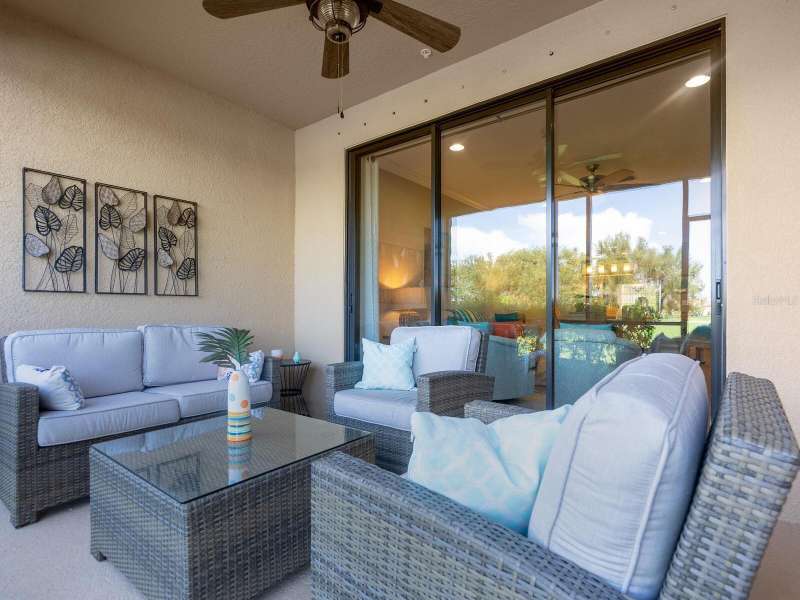 Enjoy resort-style living in your dream GROUND FLOOR END UNIT condo FURNISHED TURN KEY (everything you see is included) located in the highly sought after Esplanade Golf & Country Club at Lakewood Ranch. This “Ready to Move Right in” stunning 2-bedroom, 2-bathroom residence offers 1528 square feet of refined living space and is a testament to modern luxury and convenience. This condo includes a DEEDED GOLF MEMBERSHIP allowing you to enjoy the meticulously maintained Championship Course right from your backyard. A one-car garage provides ample storage and organizational solutions. Enjoy breathtaking golf views from living spaces including the Owner's Retreat and lanai seamlessly blending indoor and outdoor spaces. The soft, neutral color palette throughout will mesh perfectly with your own design aesthetic. At the heart of the home is the pristine kitchen with white wood cabinetry, granite countertops, under cabinet lighting, stainless steel appliances, and breakfast bar. A paved walkway from the detached 1-car garage leads to a charming garden courtyard just outside your front door, ideal for enjoying quiet time while sipping your morning coffee. This maintenance-free home offers additional upgrades including recessed lighting, built-in cabinetry in laundry room, designer window treatments, custom closets, crown molding, exquisite lights and fans and much more. The master bedroom boasts walk-in closets, an elegantly designed en suite bathroom with dual sinks, granite counters, and walk-in shower. This exceptional condo offers a blend of luxury, functionality, and a premier location with spectacular golf course views and a FULL GOLF MEMBERSHIP. Mailboxes and guest parking nearby. This amenity rich community features a private clubhouse overlooking the 18th green for dining and music, wellness center, fitness center with group classes, 2 fabulous resort-style pools with spas, lap and resistance designs, satellite pool nearby, tennis courts, pickle ball courts, Bahama Bar, Culinary Center, massage room, outdoor barbeque, bocce, firepits, as well as hiking and biking trails all while located in the center of endless shopping and dining in Lakewood Ranch. Esplanade even includes a doggy park for your furry friends to enjoy. Step into the lifestyle you deserve and arrange your private tour today!