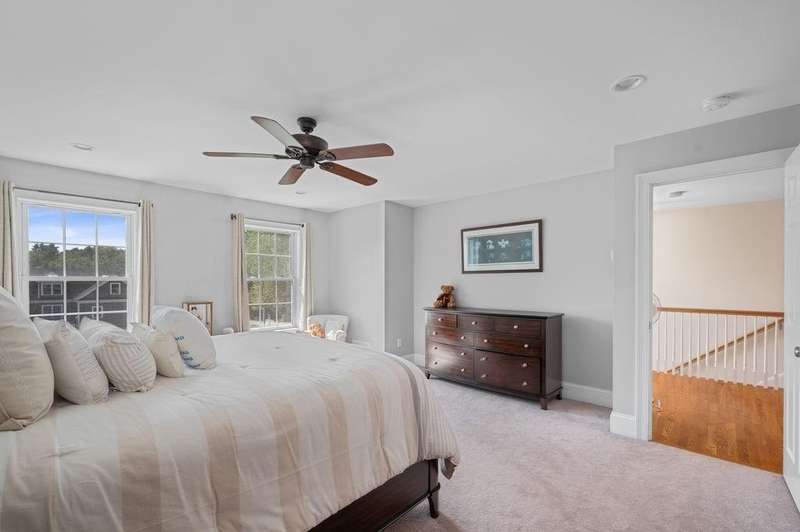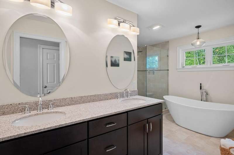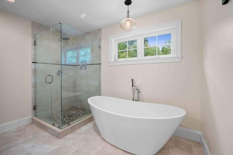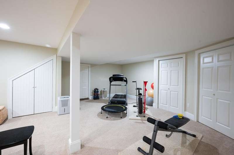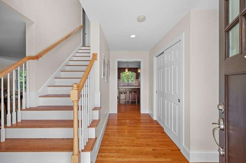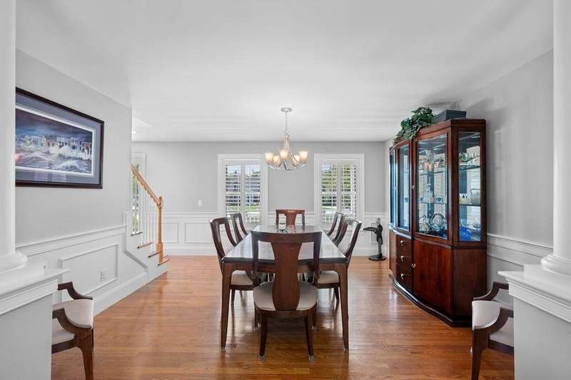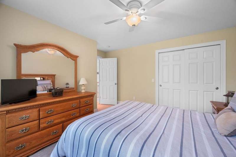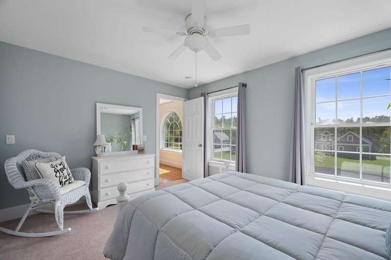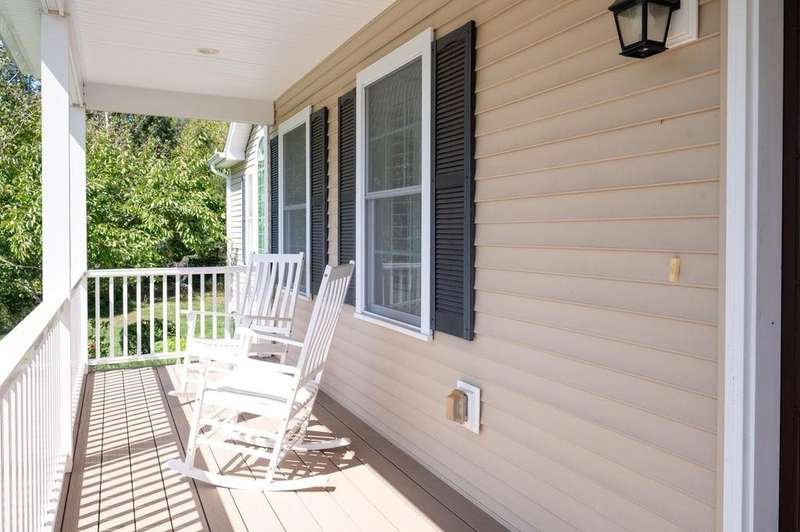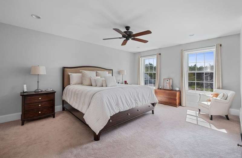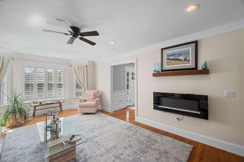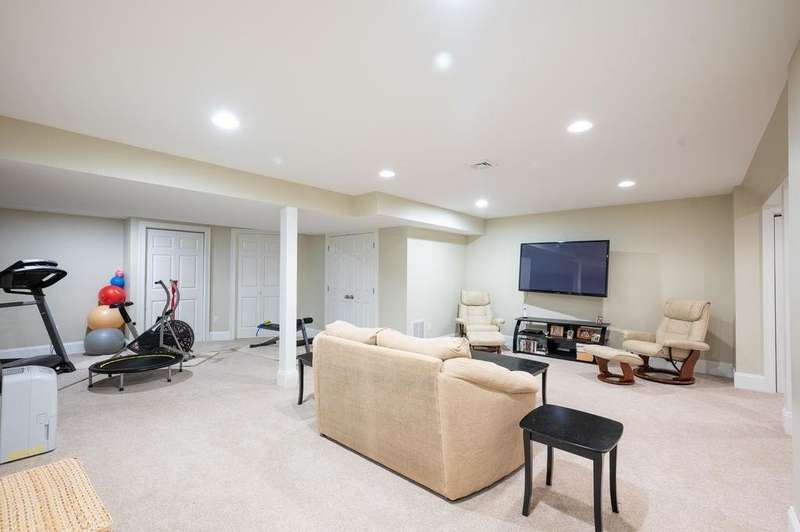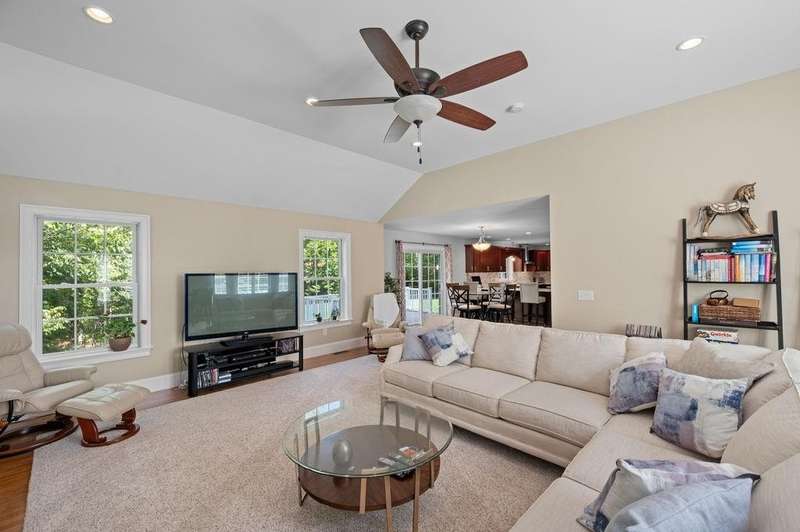 This stunning 3-bedroom, 2.5-bath Colonial offers the perfect blend of elegance, comfort, and functionality. Set on a beautifully landscaped lot surrounded by mature trees, the home provides both privacy and a welcoming curb appeal. Step inside to find a bright and spacious living room with soaring ceilings, a cozy fieldstone fireplace, and abundant natural light from oversized windows. The gourmet kitchen is a true centerpiece, complete with rich cherry cabinetry, quartz countertops, stainless steel appliances, double wall ovens, and a large island with seating—perfect for entertaining or casual meals. Upstairs, you’ll find generously sized bedrooms including a primary suite with ample closet space and a spa-like ensuite. The flexible floor plan allows for both formal and informal living, with plenty of room for work-from-home or extended guest stays. The finished basement expands your living options, offering the ideal space for a home theater, gym, playroom, or guest area—whatever fits your lifestyle best. Enjoy peaceful mornings on the farmer’s porch, afternoons in the private backyard, and evenings by the fire in your inviting living space. A two-car garage and well-maintained systems complete this move-in ready home. Located in a desirable neighborhood close to local amenities, this property combines modern updates with timeless New England charm.