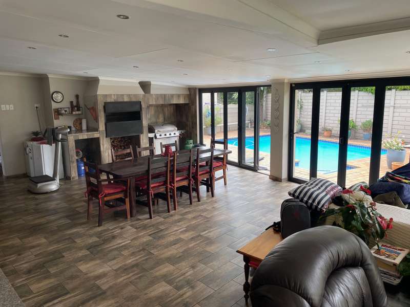 This spacious home has 3 bedrooms and two bathrooms with a one bedroom cottage This home has the most amazing outside patio with stacker doors facing the pool and garden Huge space for entertainment area. Lounge Dining room Kitchen Laundry 3 bedrooms 2 bathrooms Double garage 4 carports