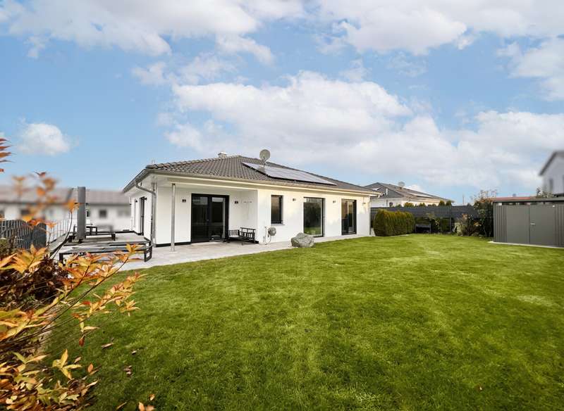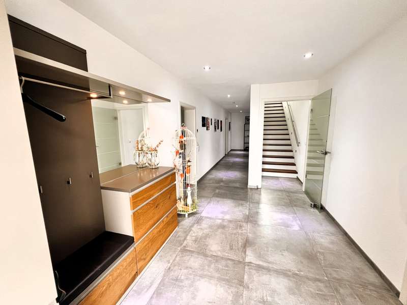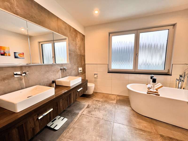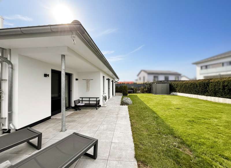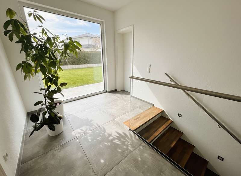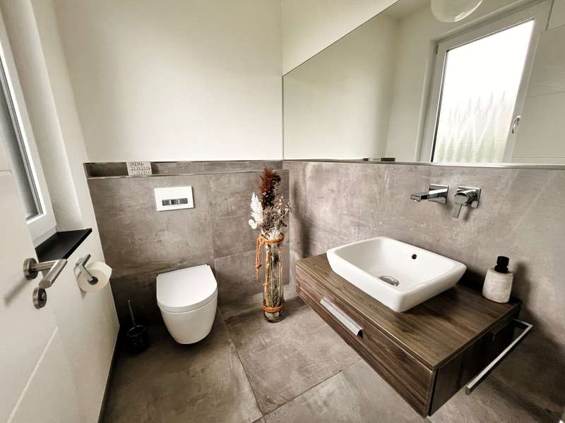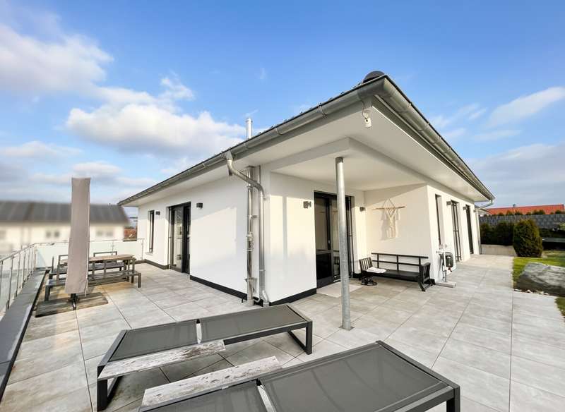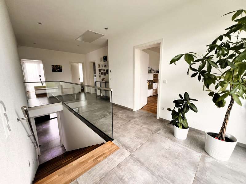 This high-quality domicile impresses with its spacious room concept and is ideal for families and discerning living requirements. With a total of five bedrooms and a living space of around 220 square meters, the property impresses with its well thought-out room layout, modern technical equipment and its extremely attractive location in Bad Waldsee. The entrance area is open and inviting. From here, you can access several spacious rooms that can be used flexibly as children's rooms, home offices or guest rooms. There is also a bathroom on this level as well as a utility room with space for a washing machine, dryer and additional storage space. The adjoining garage provides dry access directly into the house. The heart of the house is the central living area, which is accessed via a modern staircase. It opens up to the spacious, open kitchen, equipped with high-quality fixtures and fittings and modern electrical appliances. An elegant wood-burning stove lends the spacious living and dining area a cozy atmosphere. From the kitchen and living area, the path leads into the lovingly landscaped garden. Spacious terrace areas invite you to relax and socialize. Further bedrooms and a luxuriously equipped bathroom await you on the same level. The master bedroom also has an adjoining dressing room. Throughout the house, elegant floor coverings, large windows and innovative building services ensure a modern and comfortable living experience. The photovoltaic system with an output of 9.66 kWp installed in 2021 makes a significant contribution to sustainable energy supply. This not only lowers energy consumption, but also permanently reduces operating costs. A spacious double garage and several outdoor parking spaces are available for vehicles. The location of the house scores points for its proximity to shopping facilities, schools, nurseries and a wide range of leisure activities. Thanks to the good transport links, you can reach both the city center and the surrounding regions quickly and easily. This property combines contemporary living comfort with modern furnishings and a well-balanced room layout. Come and see the numerous quality features of this house for yourself during a personal viewing. If you have any questions or would like to arrange an individual appointment, please do not hesitate to contact us at any time.