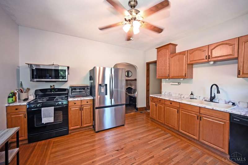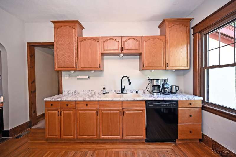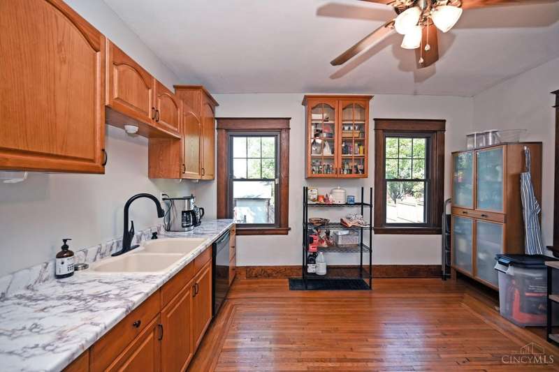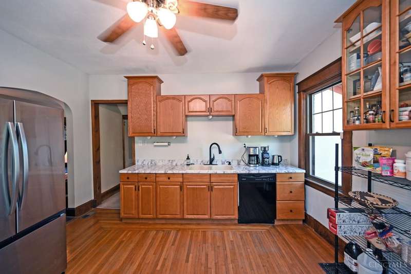 Wonderful home in walkable neighborhood! Just a short walk to restaurants, coffee shops, and entertainment, this is a great chance to own an affordable, character-filled home in a vibrant area. This charming 3-bedroom Tudor offers a great floorplan, hardwood floors, and a spacious eat-in kitchen, ideal for hosting friends or enjoying quiet nights in. Step outside to a large rear deck and fully fenced yard, perfect for pets or play. The 2-car detached garage (with openers) adds convenience and storage. Major updates already done for you: HVAC (2022), microwave & fridge (2024), tankless water heater (2011), radon mitigation system (prior to 2009), and first floor double hung windows (2010).