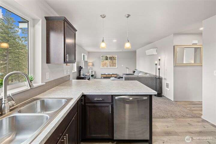 Experience breathtaking views from this nearly new home, perfectly designed for comfort and convenience. Featuring a spacious open layout, 2 bedrooms, and 1 bathroom, this home is also pre-wired for a generator—ideal for any season. The expansive 3-car garage features 9-foot doors, insulation, sheetrock, & paint. Sitting above the garage, the home provides sweeping views of the lake, canal, ridgeline, & wildlife. Ready to move in, this home is ideal for full-time living or a weekend retreat. Enjoy the amenities of Sunlight Waters, including stocked lakes for fishing & kayaking, a community pool, & a clubhouse. Conveniently located just off I-90, with easy access to Ellensburg and Cle Elum, plus HOA snow removal for year-round comfort.