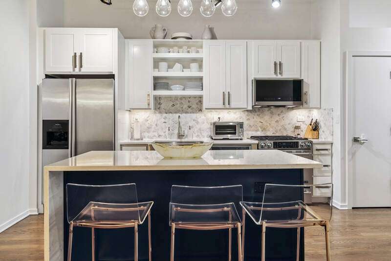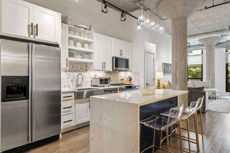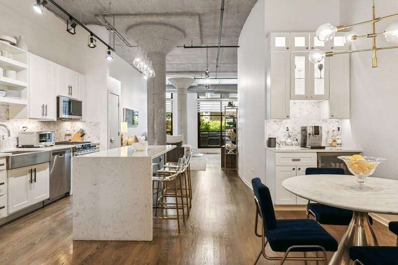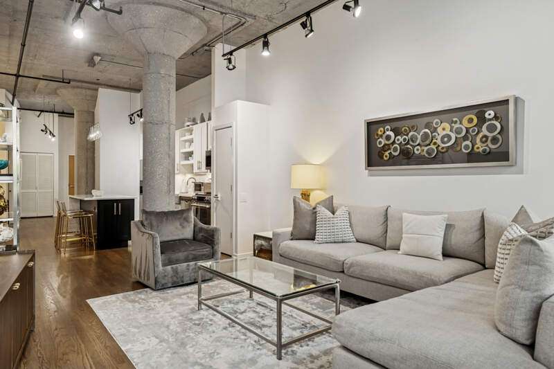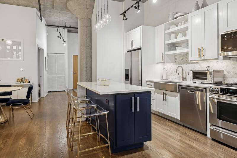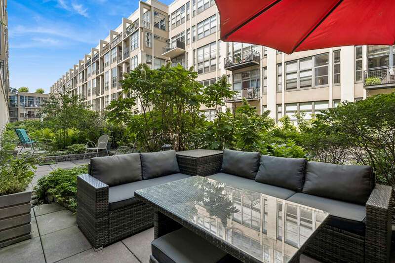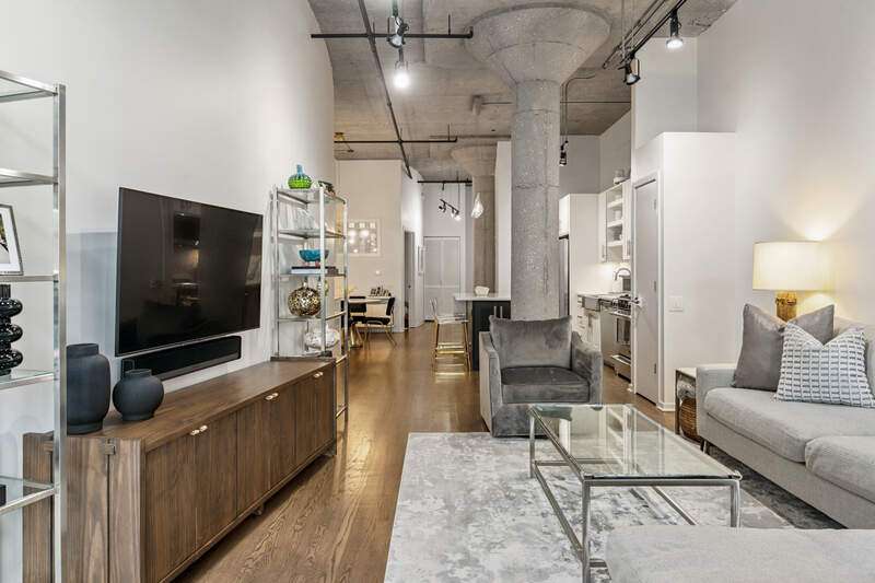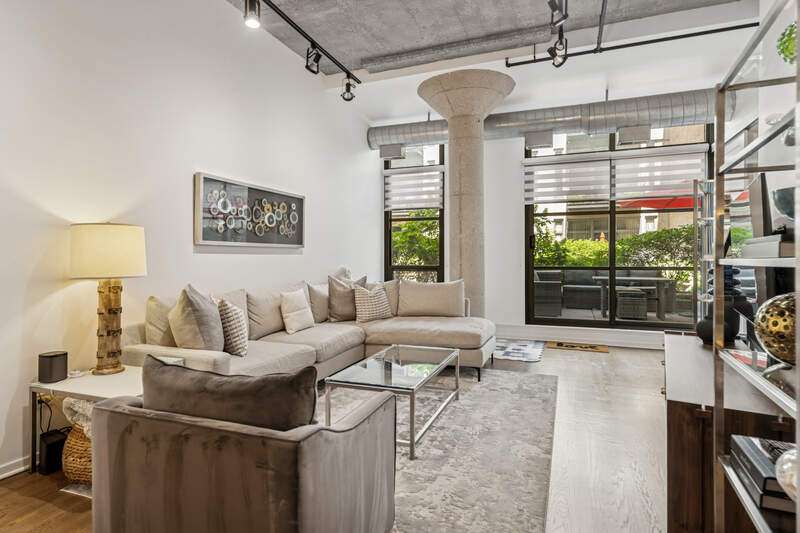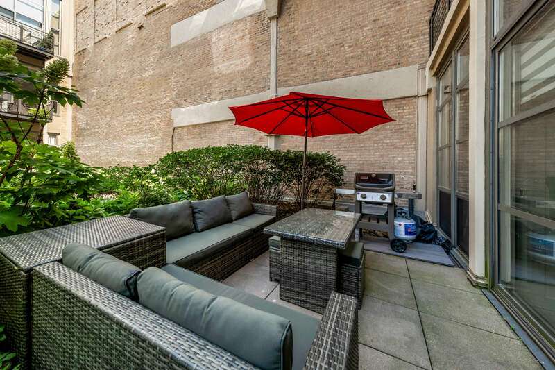 EXQUISITE RIVER NORTH LOFT COMPLETELY REMODELED FROM TOP TO BOTTOM! SOUGHT AFTER 7TH FLOOR TERRACE LEVEL END UNIT. THIS UNIT IS STUNNING! GREAT ENTERTAINING FLOORPLAN FEATURING NEW OPEN KITCHEN WITH REFINISHED DESIGNER 42" CABS, NEW HARDWARE, QUARTZ COUNTERS,NEW MICROWAVE, PANTRY & LARGE ISLAND W/STORAGE & BREAKFAST BAR, SS APPLIANCES. FULL DINING AREA WITH STUNNING COFFEE/BAR WITH WINE FRIDGE AND LOWER AND UPPER LIGHTED CABINETS, QUARTZ COUNTERTOPS. COMPLETELY REFINISHED MODERN HARDWOOD FLOORS AND EXPOSED BRICK. FLOOR TO CEILING WINDOWS WITH CUSTOM COVERINGS, 2ND BEDROOM IS ENCLOSED WITH A GREAT LIGHT ALLOWING WINDOW AND EXTRA STORAGE BUILT ABOVE CLOSET. ALL CLOSETS HAVE CUSTOM BUILT IN ORGANIZERS. GORGEOUS FLOOR TO CEILING WINDOWS LEAD OUT TO A LUSH COURTYARD WITH YOUR OWN LARGE PATIO! WONDERFUL TO HAVE SUCH BEAUTIFUL OUTDOOR SPACE! BOTH BATHS COMPLETELY REDONE BEAUTIFULLY WITH HIGH-END CABINETRY & TILE THROUGHOUT! ENORMOUS PRIMARY BEDROOM & CUSTOM PRIMARY CLOSET THAT HAS BEEN ENCLOSED ON TOP FOR EXTRA STORAGE. BLDG AMENITIES: 24 HR DOORMAN, FITNESS CENTER, DRY CLEANER, ROOFTOP DECK, & PARTY ROOM, PET FRIENDLY BUILDING. FANTASTIC LOCATION IN RIVER NORTH STEPS TO RIVER WALK, EATERIES AND NIGHTLIFE, WALKING DISTANCE TO PARKS. ASMT INCL: STORAGE UNIT, GAS, PREMIUM CABLE, INTERNET, HEAT AND AIR, TEMPERATURE CONTROLLED BY OWNER! SEE ADDITIONAL INFO FOR COMPLETE LIST OF IMPROVEMENTS. PARKING IS ADDITIONAL $25K. NOTHING TO DO BUT MOVE IN AND ENJOY!!! *NO HOMEOWNERS EXEMPTION* *CLICK ON VIRTUAL TOUR AND 3D TOUR*