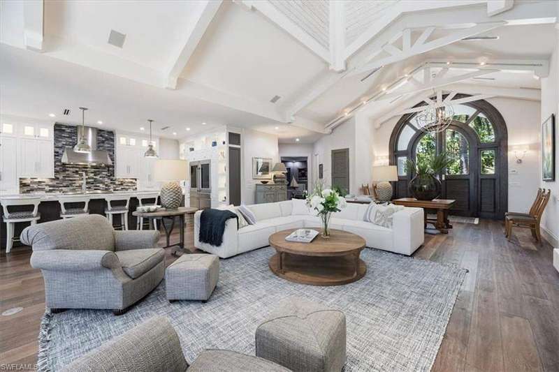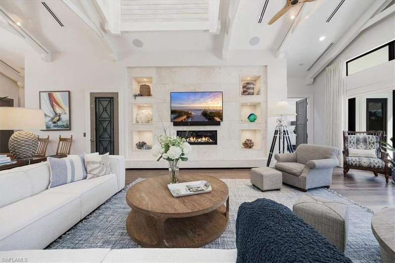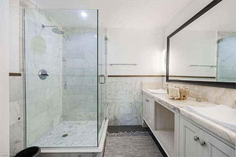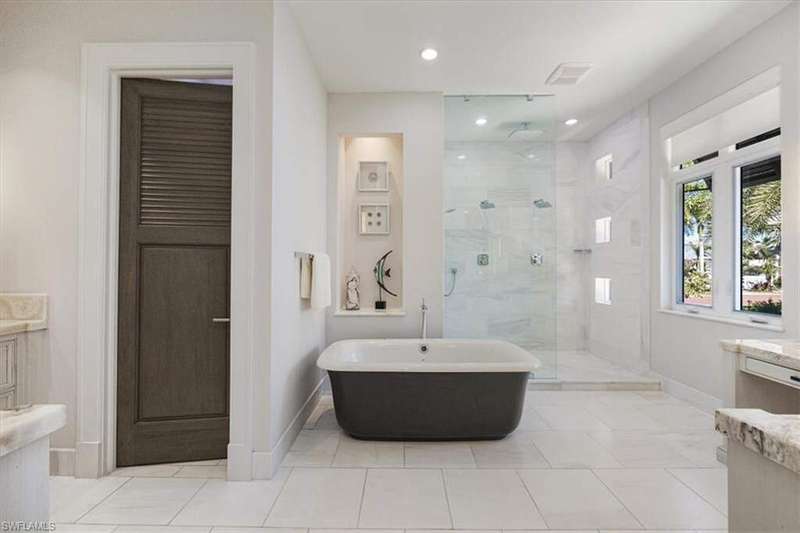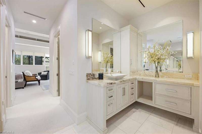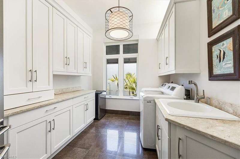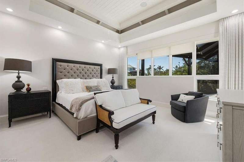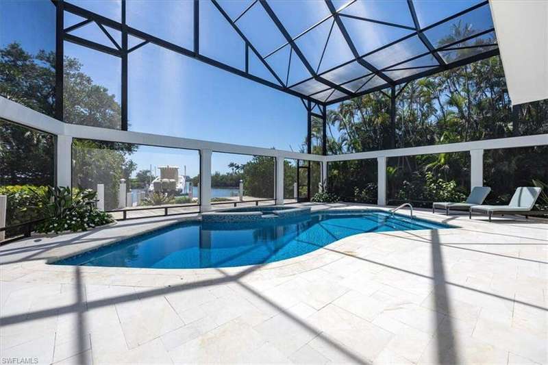 Boaters & Beach Lovers! Architecturally Stunning Home & Meticulously maintained! Breathtaking.... This is an exquisite and rare opportunity to own one of Barefoot Beaches limited waterfront properties with total privacy. This reimagined Florida Cupola-style home has been architecturally outfitted to stun. Located in the exclusive beachfront community of Southport @ Barefoot Beach and tucked away on a small cove this double gated, 24-hour secured property offers the epitome of luxury waterfront living. Its superb southeastern exposure and view across Little Hickory Bay provides an abundance of natural light during the day and is the perfect backdrop to this immaculately maintained property with the upmost high-end finishes throughout. This boater's paradise has access to the Gulf of America through Wiggins Pass Marina and Gas dock where convenience is bliss before a day out cruising or fishing. The main living space features a great room with detailed craftsmanship and is incorporated into its 25-foot-high interior cupola. The main level has 3 bedrooms with two master suits, powder bath, dining room and laundry. The kitchen boasts GE Monogram appliances, including a 4-burner stove, griddle, grill, double oven, side-by-side refrigerator, and wine fridge. The lower level has 2 rooms with ample closets and 2 full bathrooms. They could easily be used as a home office, guest accommodations or gym and is easily accessible using an elevator or stairs. The expansive outdoor patio with 2 levels has a poolside dining area and outdoor bar that includes an integrated grill, oven warmer, dishwasher, refrigerator, and ice maker making it perfect for outdoor entertaining. This home also features a new dock and lift, oversized 3 car garage and deeded beach access walking distance to Barefoot Beach located at the north end of Collier County in Naples. Your quiet escape where Barefoot Beach meets Bonita Beach and is in the middle of the action from Naples to Ft. Myers with easy Airport access via I-75. The dock has a 40,000lb lift & room to expand!