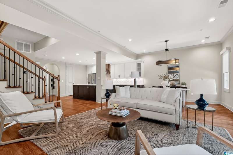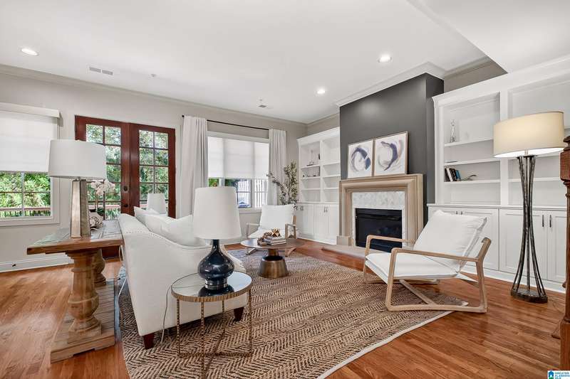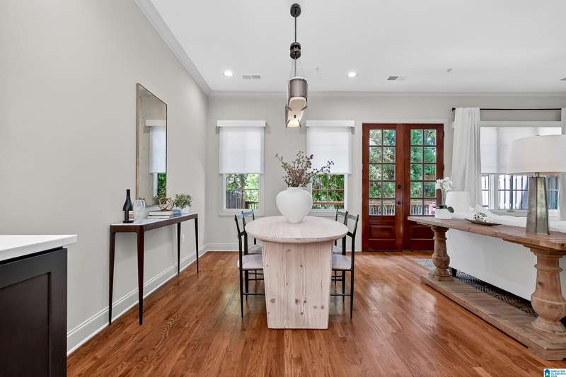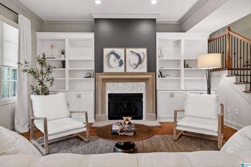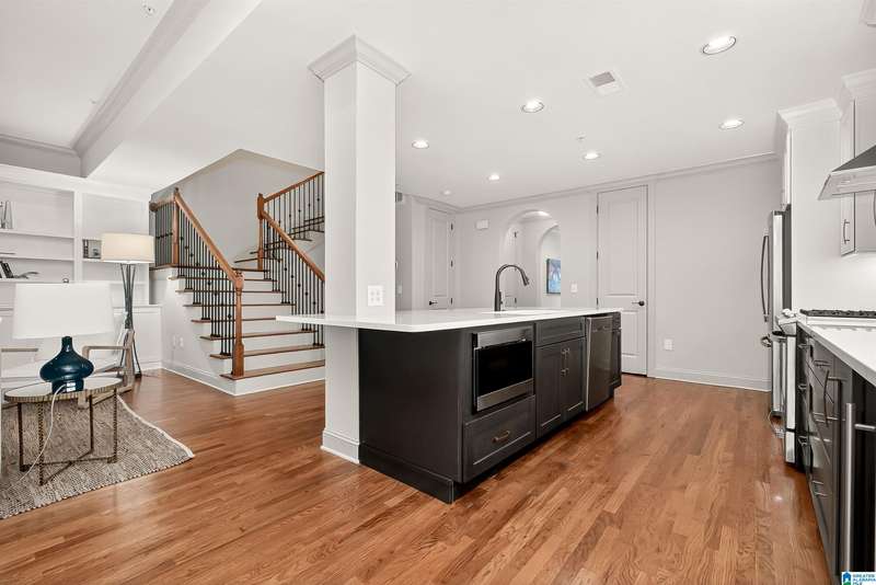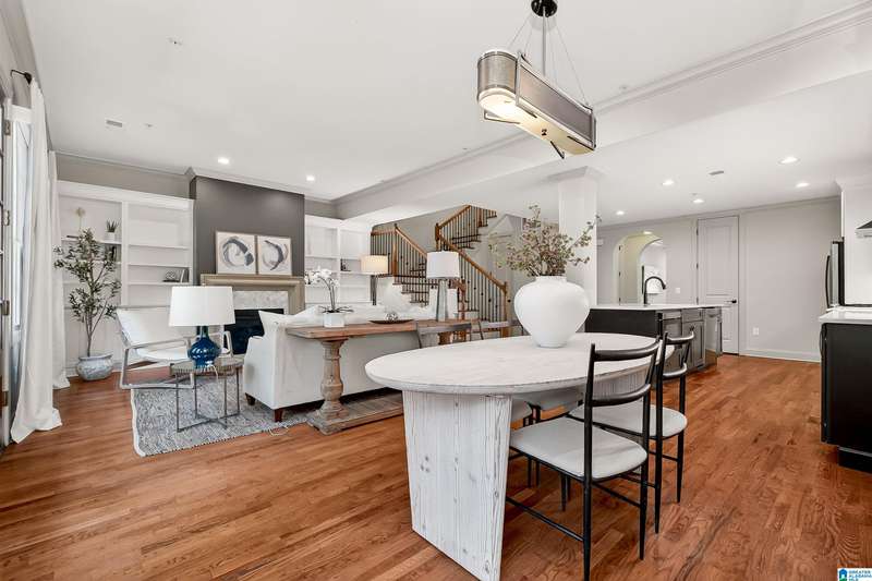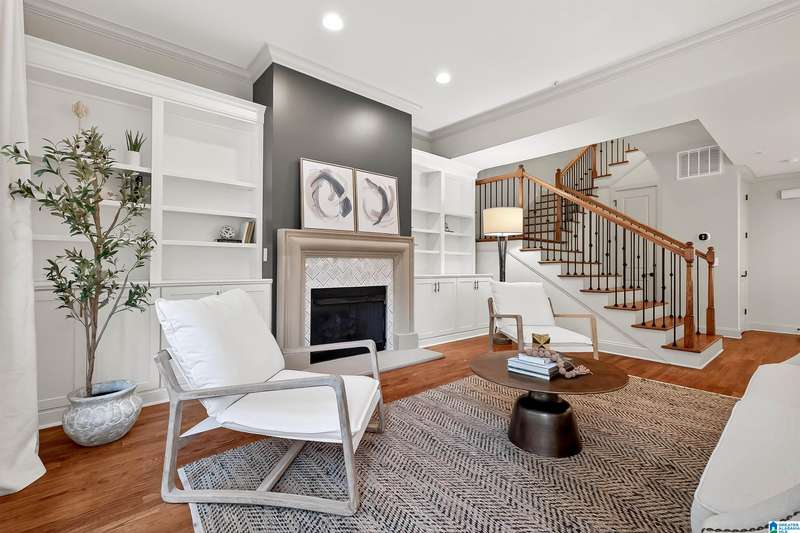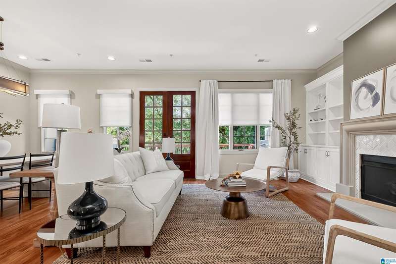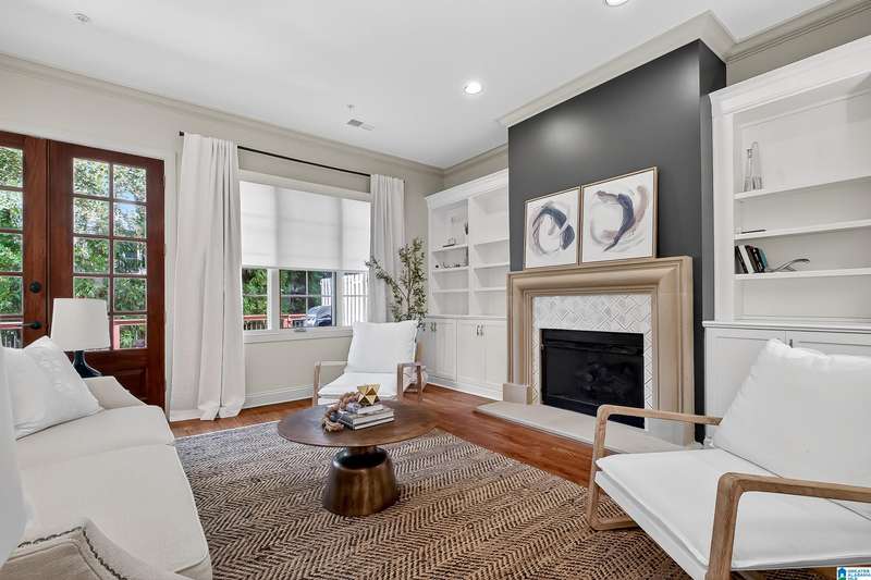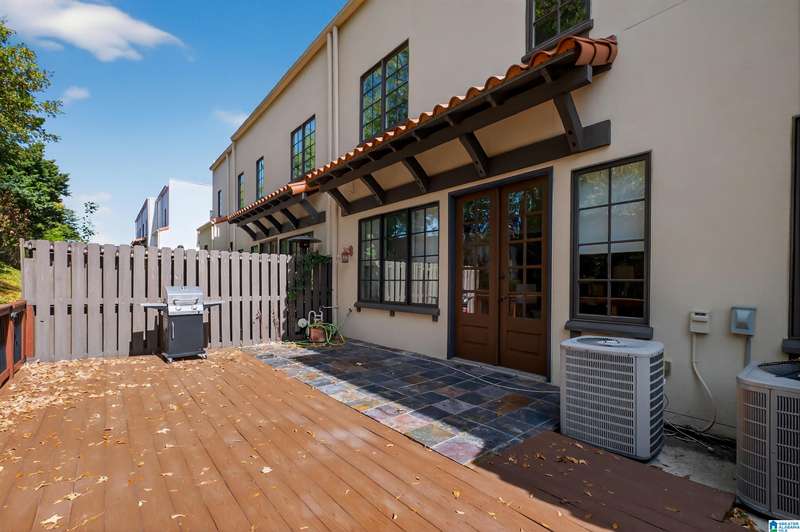 This stunning Spanish-style Hollywood Villa townhome blends timeless charm with modern comfort. Featuring 3 bedrooms, 2.5 baths, and a versatile flex space off the foyer ideal for a home office, it offers a functional and inviting layout. The open-concept great room and dining area showcase a wall of windows and French doors that fill the space with natural light and open to a private deck—perfect for relaxing or entertaining. A cast limestone fireplace with gas logs anchors the living space in warmth and style. The thoughtfully updated kitchen features sleek quartz countertops, a breakfast bar, stainless steel appliances, deep sinks, a gas cooktop, electric oven, and built-in microwave. Upstairs, the spacious primary suite includes a walk-in closet and a beautifully refreshed en-suite bath with double vanities and a separate shower. Two additional bedrooms share a well-appointed hall bath, and the laundry is conveniently located on the upper level.