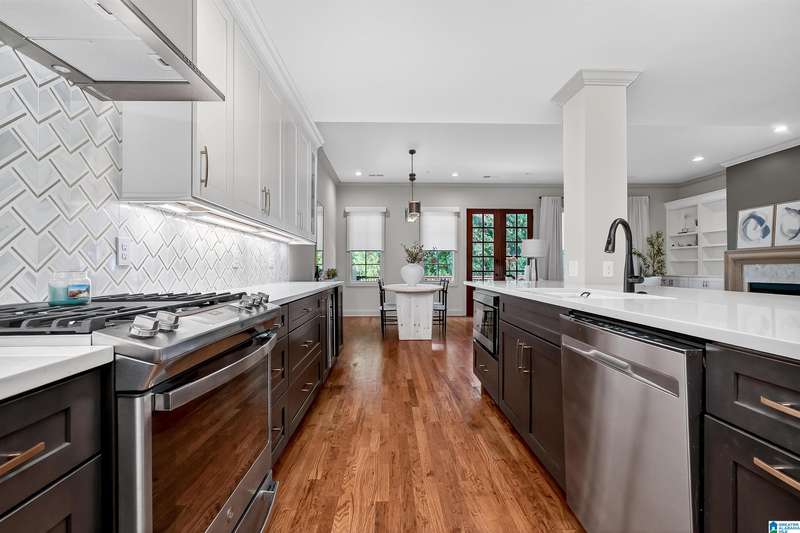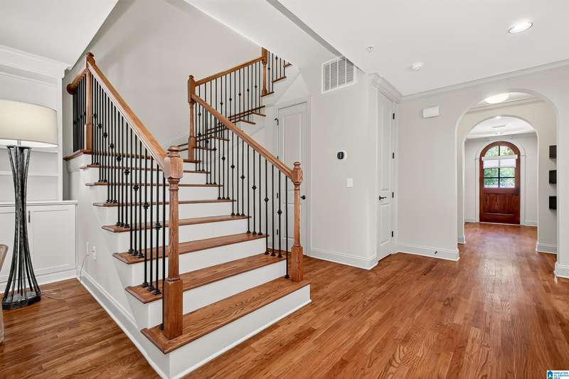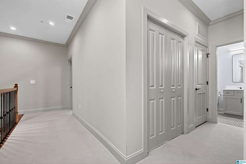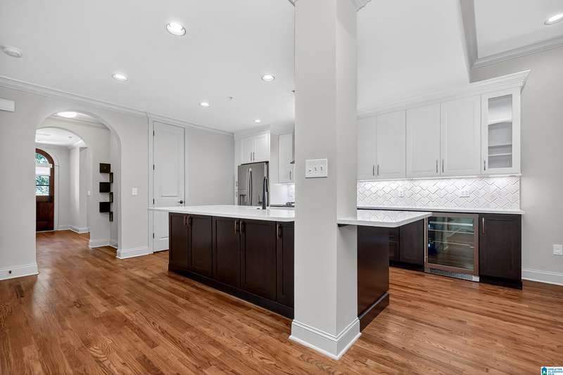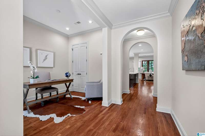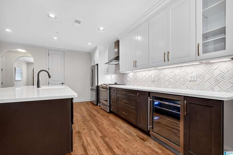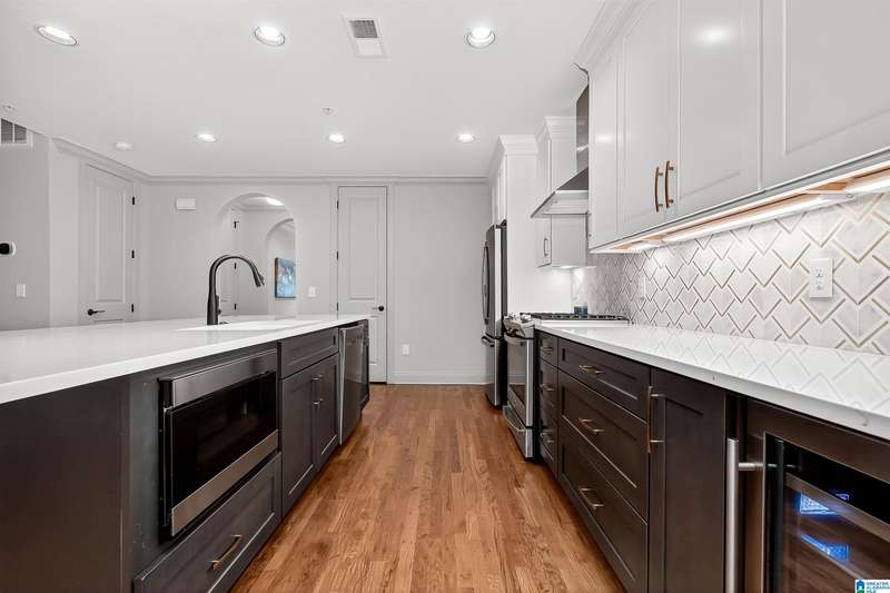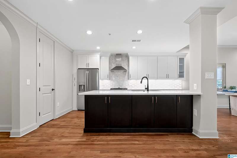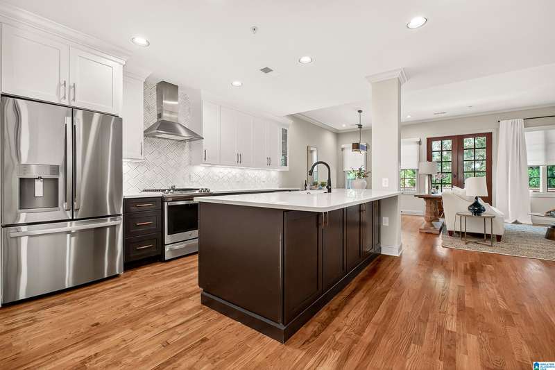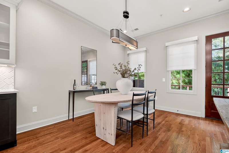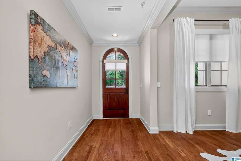 This stunning Spanish-style Hollywood Villa townhome blends timeless charm with modern comfort. Featuring 3 bedrooms, 2.5 baths, and a versatile flex space off the foyer ideal for a home office, it offers a functional and inviting layout. The open-concept great room and dining area showcase a wall of windows and French doors that fill the space with natural light and open to a private deck—perfect for relaxing or entertaining. A cast limestone fireplace with gas logs anchors the living space in warmth and style. The thoughtfully updated kitchen features sleek quartz countertops, a breakfast bar, stainless steel appliances, deep sinks, a gas cooktop, electric oven, and built-in microwave. Upstairs, the spacious primary suite includes a walk-in closet and a beautifully refreshed en-suite bath with double vanities and a separate shower. Two additional bedrooms share a well-appointed hall bath, and the laundry is conveniently located on the upper level.