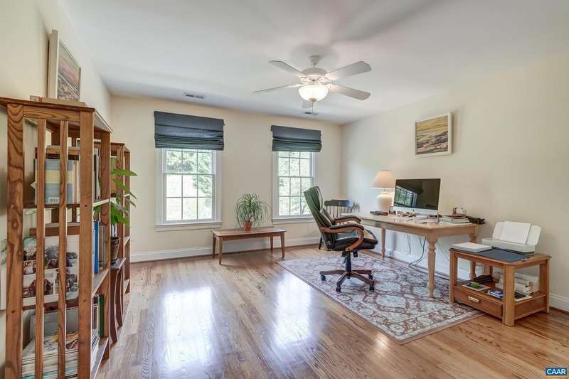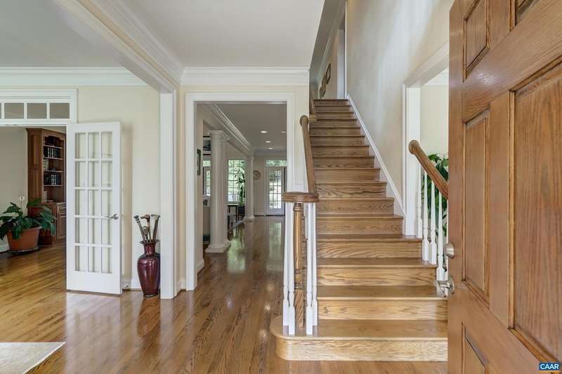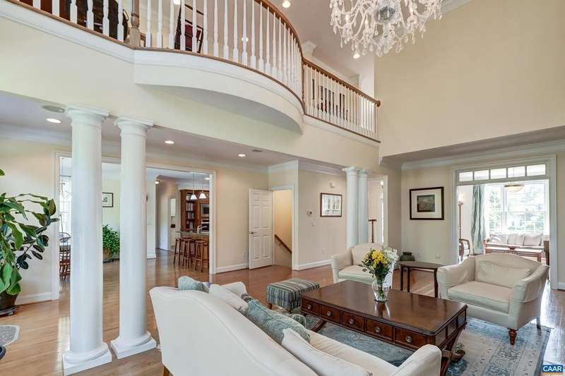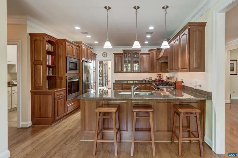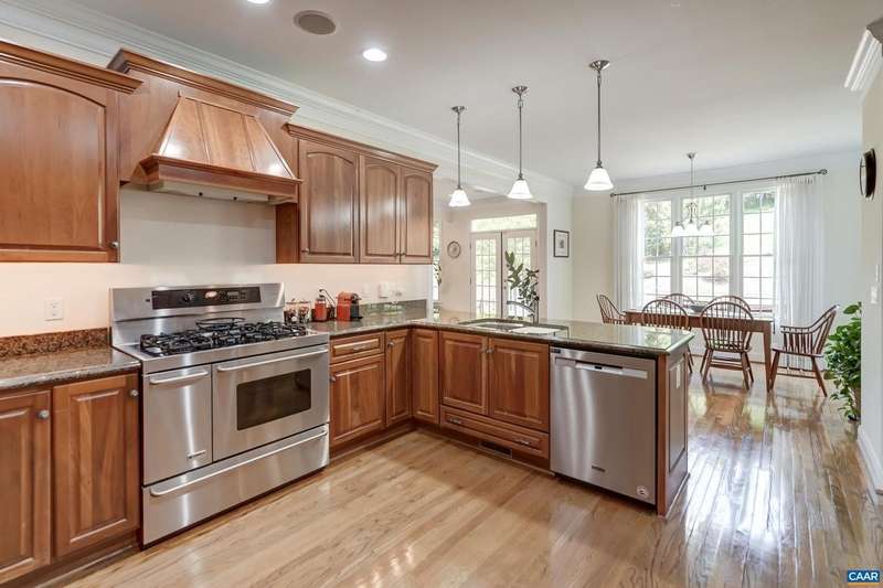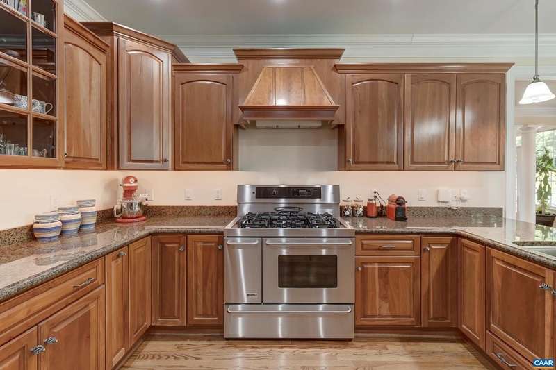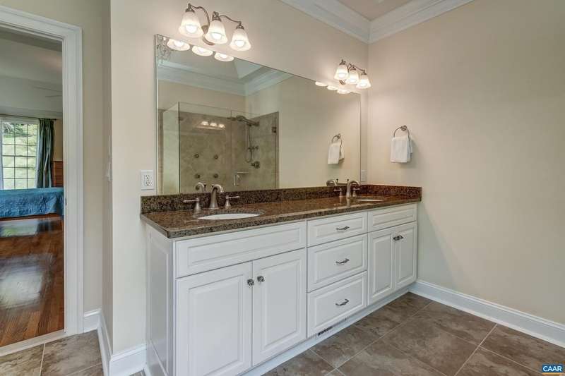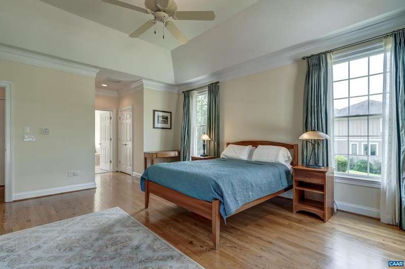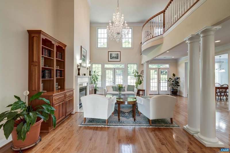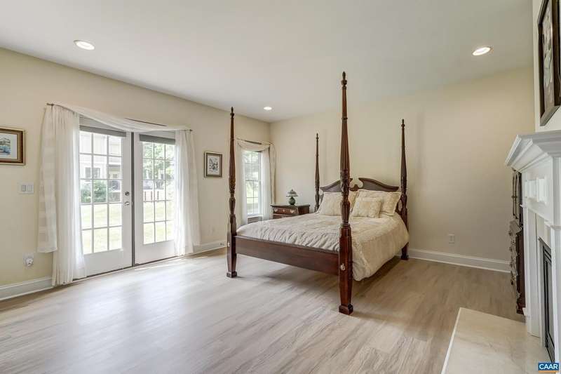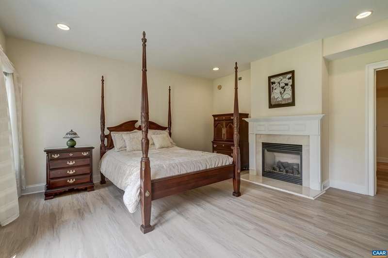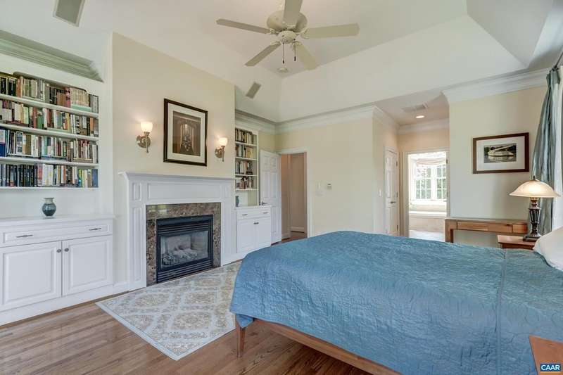 Beautiful estate home in Foxchase is a must-see! Great location just 10 minutes from UVA and Hospitals, with easy access to I 64, wineries, and breweries. This custom home features main and second level primary suites, hardwood floors throughout the upper levels, and a fully finished walk-out basement with LVP flooring! The open main level is an entertainer's dream with a two story great room featuring a gas fireplace with built-ins , a gourmet kitchen with all new stainless steel appliances, cherry cabinets and granite, large formal living and dining rooms and a cozy breakfast nook. For flexible living this home boasts a primary bedroom suite on all three levels! The main level primary suite includes a gas fireplace flanked by built in book shelves. If you'd prefer your owner's suite upstairs, there is a cozy suite with a light filled bathroom with jetted tub and shower. Three additional bedrooms on the upper level share two full bathrooms. The finished walk out terrace level includes a large rec room, a bedroom with ensuite and gas fireplace and extra bedroom/home office - great for guests. 3 car garage, & new landscaped yard.,Cherry Cabinets,Glass Front Cabinets,Granite Counter,Fireplace in Bedroom,Fireplace in Great Room,Fireplace in Master Bedroom