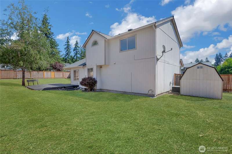 Move-in ready & full of updates! This spacious home features vaulted ceilings, new carpet, doors, trim, & fresh interior touch-up paint. Formal living room & a large family room that opens to the kitchen with updated appliances, including a gas stove. Upstairs you'll find 3 comfortable bedrooms. Oversized garage includes a workshop area. Major systems updated: newer furnace, heat pump, roof (2 yrs), & hot water tank. The fully fenced corner lot includes a large deck, sprinkler system, & generous backyard. Prime location with easy access to JBLM, Mountain Highway, shopping & commuting. Septic system serviced, exterior trim & paint touch-up, crawlspace & attic work completed. Back on market-no fault of seller.