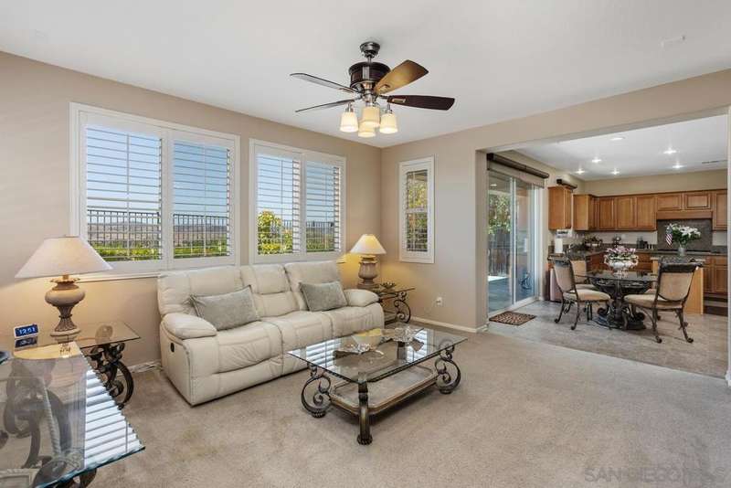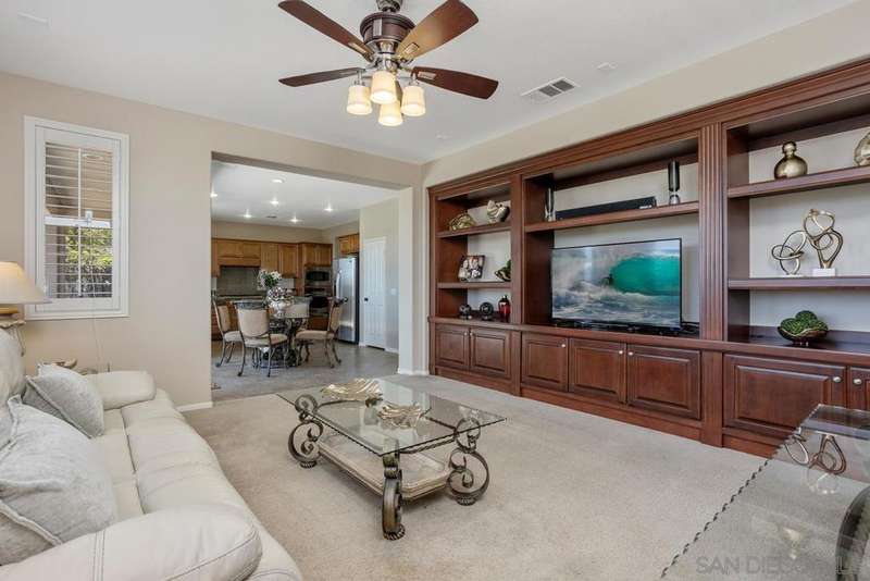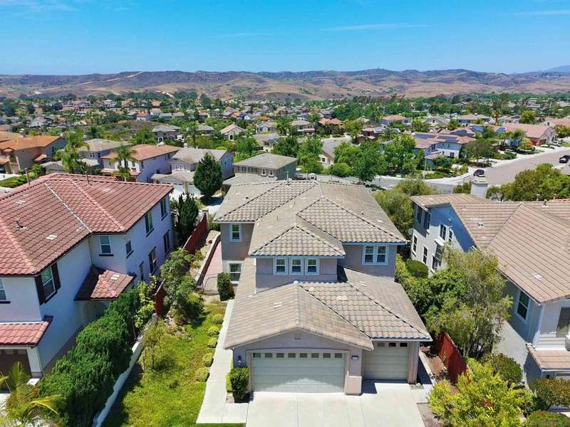 Panoramic Views | No Mello Roos | Arrowood Living: This beautifully maintained 4bd/3ba home with 2,887 sqft of living space is located in the sought-after master-planned community of Arrowood, and offers 180-degree mountain and hillside views. It's an ideal blend of comfort and function. The bright, open floor plan features a spacious kitchen with granite countertops, stainless steel appliances, a large center island, and an extended butler's pantry with ample storage. Plantation shutters, recessed lighting, ceiling fans, and custom built-ins add both style and practicality throughout. Upstairs, the generous bonus room can easily serve as a fourth bedroom, media room, or office. The oversized primary suite offers sweeping views and a large bathroom with dual vanities, a soaking tub, walk-in shower, and separate walk-in closets. Additional features include a tankless water heater, water softener, and central AC. Outside, the professionally designed backyard includes stamped concrete and mature landscaping--perfect for relaxing or entertaining against the scenic backdrop. Enjoy access to the Jr. Olympic swimming pool, Arrowood Golf Course, walking trails, and more. Located in the Bonsall School District and close to parks and shopping. No Mello Roos and low HOA!