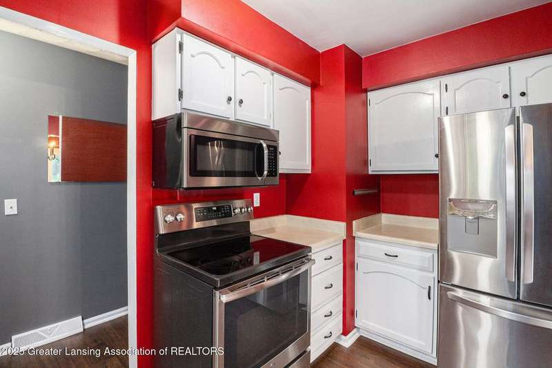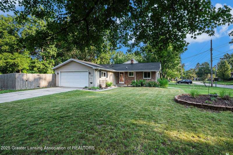 Welcome to 404 Gainsborough Drive in the heart of East Lansing! This charming ranch home sits on a spacious corner lot and offers a perfect blend of comfort, character, and convenience. Inside, you'll find stainless updated steel appliances and new modern flooring?ideal for entertaining. The bright, open living spaces flow effortlessly throughout the home, while the large fenced backyard and patio provide the perfect setting for outdoor gatherings, pets, or relaxing evenings under the trees.The home also features a partially finished basement with egress windows, offering additional living space and flexibility. Key updates include a basement waterproofing system, radon mitigation system, newer water heater and furnace. Enjoy the energy efficiency and quiet comfort of Hanson triple-pane windows, along with a new roof with a transferable warranty. The beautifully maintained landscaping enhances the curb appeal including a privacy fence. The location just minutes from MSU, parks, and shopping makes this home a fantastic opportunity for first-time buyers or investors alike.