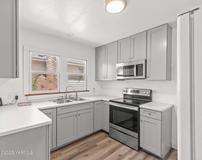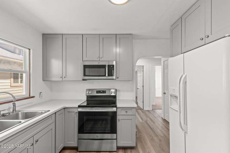 Welcome to 108 S Fir St. Step into this meticulously updated and charming residence, where classic elegance meets modern convenience. This home has been thoughtfully renovated from top to bottom, offering a truly move-in-ready experience. The heart of this home, the kitchen, is a chef's dream! Boasting gleaming quartz countertops and custom cabinets featuring a dedicated pantry, soft-close doors, dual lazy Susans, and a convenient pull-out spice rack, every detail has been considered. Equipped with a stainless steel oven and built-in microwave, and durable water-resistant laminate floors, this space is as beautiful as it is practical. Throughout the main floor, you'll discover a fresh and inviting atmosphere. Enjoy the seamless flow of new interior doors, and sink your toes into the plush comfort of new Stainmaster carpet gracing the main floor bedrooms and the entire upstairs. The entire home benefits from new interior paint and trim, creating a cohesive and contemporary feel. Thoughtful updates continue with updated interior LED lighting, ensuring a bright and energy-efficient living space. Entertain with ease in the spacious living room and dining area, where the refinished hardwood floors gleam, adding a touch of timeless sophistication. The bathroom offers a serene retreat with a reglazed bathtub and a new shower insert, complemented by updated accessories and trim. Upstairs, comfort and peace of mind continue with new windows. Climate control is a breeze with the efficient Trane heat pump and cooling system installed in 2018, providing year-round comfort. Outside, the fully fenced backyard offers privacy and security. The expansive large parking area in the rear with a carport easily accommodating 3-4 cars is a true bonus. The unfinished basement houses convenient laundry facilities and an additional bedroom, offering potential for further customization.