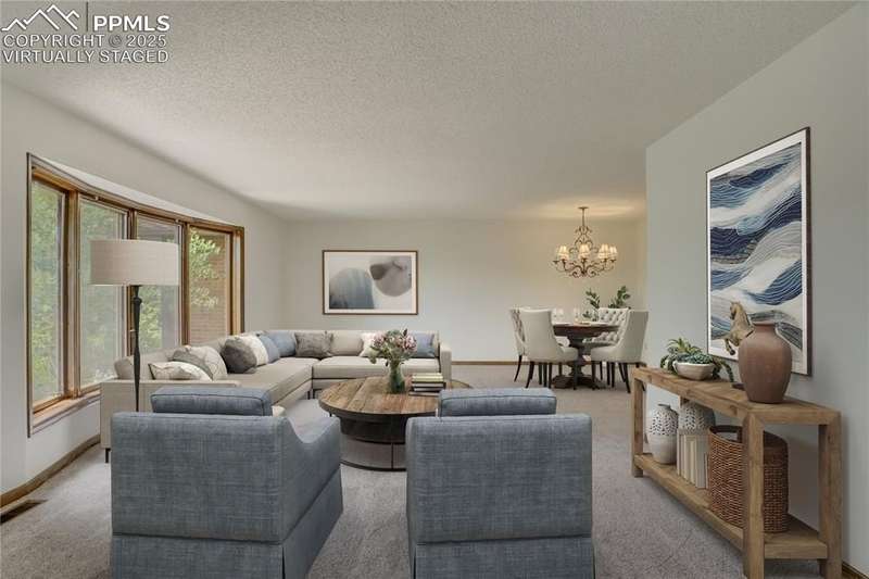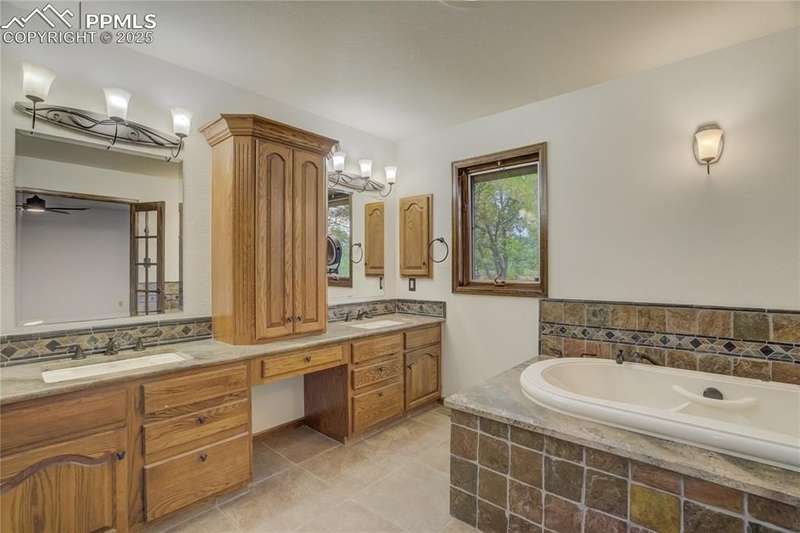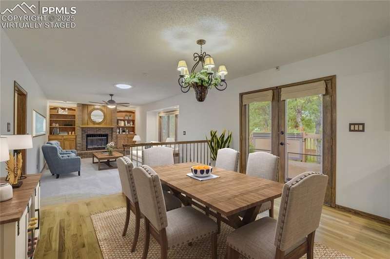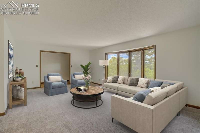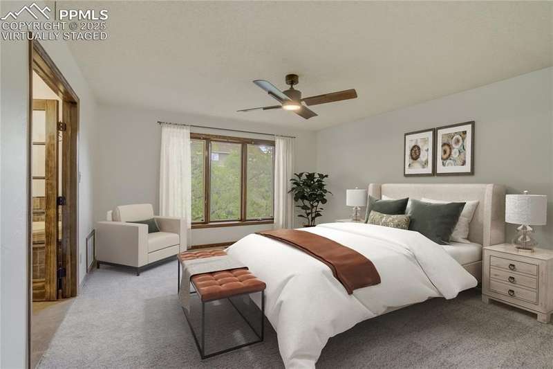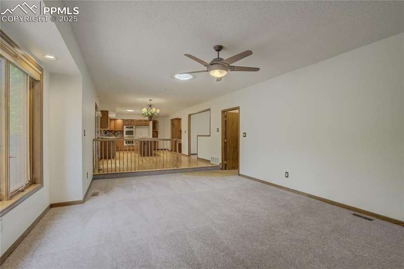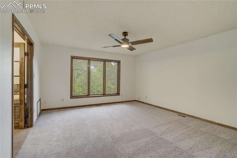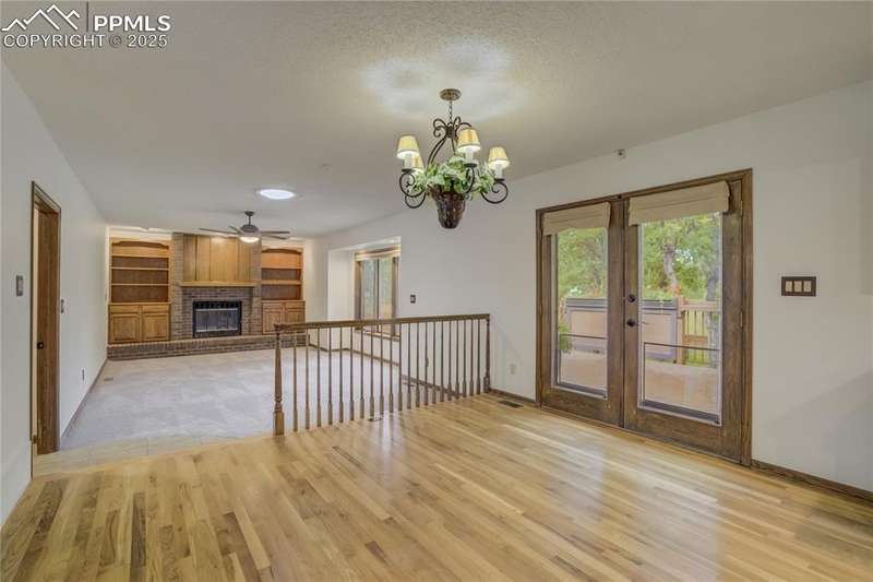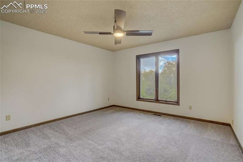 Set at the end of a quiet cul-de-sac in Gleneagle, this 1/2 acre property offers a rare balance of privacy, mtn views, & convenience—minutes to D-20 schools, parks, trails, shopping, & I-25. Extensive upgrades incl a new roof, gutters, exterior paint, interior paint, new carpet throughout & detached 2+car garage/workshop. Inside, hardwood floors guide you from the entry into the heart of the home. The formal living rm features a bay window framing the landscape, adj a flexible dining area that flows into the gourmet kitchen. Thoughtfully designed for both everyday function & entertaining, the kitchen boasts an island w/ breakfast bar, granite tile countertops, SS appliances including a double wall mounted ovens & gas range, pantry, built-in workstation, & a dining nook that walks out to the trex deck & backyard retreat. The backyard oasis features waterfall, mature trees, & new paver steps leading to the lower walk-out patio. The main-lvl great rm centers around a FP flanked by built-in bookshelves, new carpet, modern ceiling fan, & bump-out window enhancing the spacious feel. A nearby half bath features tile counters & a custom sink/vanity. Down the hall, the primary suite offers space to unwind w/ a large bedrm, walk-in closet, & luxury 5-piece bath complete w/ tile floors, standalone spa shower, soaking tub, granite counters, upgraded lighting, & ample storage. 2additional main-level bedrooms—one w/ hardwd flrs, one w/ a custom closet system, both share a full hallway bath w/ granite-topped vanity & tiled shower surround. The fully finished walk-out basement expands the possibilities, feat new paint & carpet, a wide-open rec rm w/ wet bar, multiple zones for media, gaming, or gym, & 2 spacious lower-lvl bedrms. One doubles as an office w/ a wall of built-ins & walk-in cedar-lined closet. The other is large enough to have a sitting area & easy access to a remodeled ¾ bath w/ tile shower. 4-car garage setup attached & detached spaces for workshop, toys, or storage.