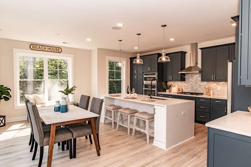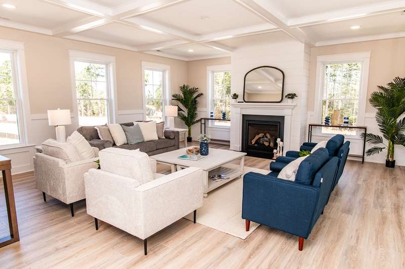 The Sandpiper floor plan is designed to elevate your outdoor living experience like no other. Featuring the largest outdoor space available, this home is perfect for hosting gatherings or enjoying peaceful relaxation. With stunning views of your expansive rear deck from both the living area and kitchen, you can truly embrace the best of indoor/outdoor living. Plus, customize your experience with the option for a spacious deck right outside your primary suite! Imagine waking up and stepping onto your private deck to savor your morning coffee in tranquility. Discover the Sandpiper and make outdoor living your everyday reality! If you appreciate open-concept living with functional spaces, the Sandpiper is the perfect fit for you. This thoughtfully designed floor plan seamlessly blends the kitchen and dining room, inviting you to step into a spacious dining area that’s perfect for gatherings. Prepare delicious meals and snacks just a small hallway away while your guests enjoy their time in the inviting living space. The elegant entryway beautifully connects these luxurious areas, creating a warm and welcoming atmosphere for all. Experience the perfect balance of style and functionality in the Sandpiper! This versatile home offers abundant options for building and styling to suit your family's needs. Perfect for larger families, you can easily add a 5th bedroom, creating a spacious retreat where everyone can find their own sanctuary. If four bedrooms are all you need, you’ll love the award-winning primary suite, designed with generous space that caters to your comfort and relaxation. Plus, the expansive garage area provides ample room for hosting, unwinding, or storage, filling half of the home with endless potential. Discover the perfect blend of functionality and style in your new dream home! The community offers a range of amenities for residents to enjoy, including a pool, dog park, playground, open green spaces, and walking trails. Surrounding a serene pond and fountain, these features provide a tranquil and picturesque setting for leisure and recreation. Whether taking a dip in the pool, playing with your furry friend at the dog park, or strolling along the walking trails, residents can immerse themselves in the beauty of the outdoors within the community’s peaceful and inviting environment.
