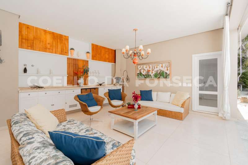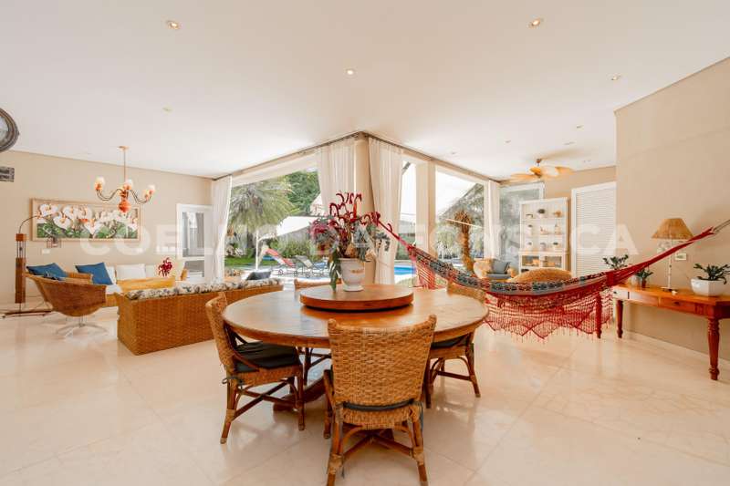 Casa semi térrea em rua tranquila, com muito jardim e emoldurada por amplas varandas, proporcionando um ar de casa de campo. São 4 amplas suites com closet, no terreo, e as 2 demais são localizadas no primeiro andar, o que torna a casa muito funcional. àrea soccial com amplo home theater, living com pé direito duplo e teto abobodal, com muita liz natural. Cozinha e copa ao lado da varanda gourmet equipada com forno de pizza e brinquedoteca. Piscina co muita ensolação e com jardim tropical. Garagem subterranea para 4 carros. Localização previlegiada no condominio, próximo quadras de tenis e beach tennis. Condominio completo com academia moderna, quadras e muitas praças para caminhada ao ar livre. O Tambore III é um dos melhores e mais valorizados condomínios de Alphaville, proportionando segurança e qualidade de vida para a sua familia.