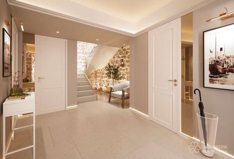 During construction, the highest quality standards are respected with great attention to detail. The facade will be made of 10 cm stirpor, while the floors of all rooms will be covered with high-quality ceramic tiles. PVC carpentry, aluminum shutters, three-layer glass with low energy coating. The outdoor common areas will be appropriately horticulturally arranged with low and tall plants.