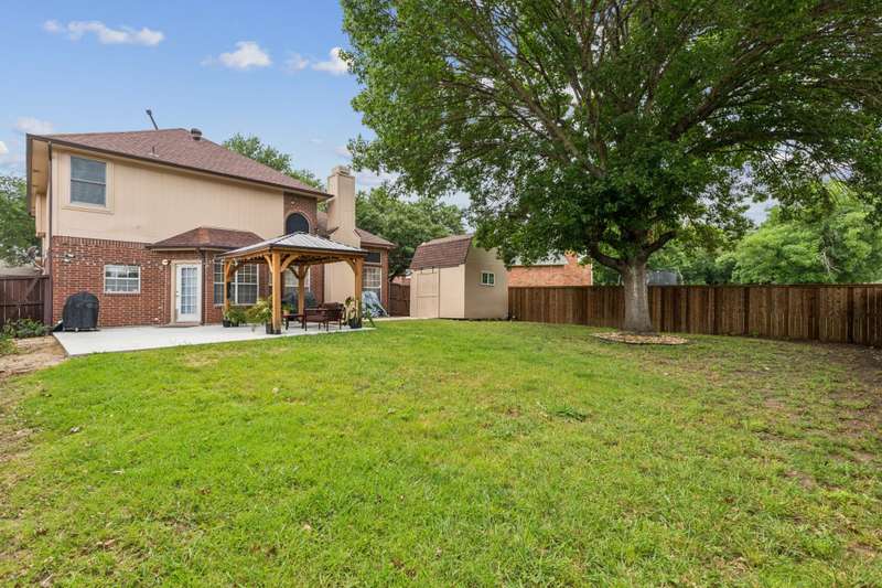 Charming, Move-In Ready Home in Desirable Hunters Landing. Welcome to this beautifully updated 2-story home nestled in the heart of Plano. Located within the award-winning Plano ISD, this home offers unbeatable convenience with close proximity to shopping, dining, and major highways.Step inside to discover a thoughtfully designed layout that perfectly balances style, comfort, and warmth. The spacious living room is the centerpiece of the home, showcasing a stunning floor-to-ceiling stone fireplace with gas logs ideal for cozy gatherings or quiet nights in.Freshly painted in neutral tones, the interior features elegant ceramic tile flooring and updated upstairs windows. Major items have been recently replaced, including the roof and water heater in 2024, along with partial fence replacement and maintenance ensuring true peace of mind and a move-in ready experience.The bright and modern kitchen is a chefs dream, complete with granite countertops, stainless steel appliances, a 5-burner gas range with air fryer and dehydrator, and a large central island. The open layout flows effortlessly into the dining and living areas, making entertaining a breeze.Retreat to the primary suite with a renovated, spa-inspired bath featuring dual vanities, granite counters, a soaking tub, and an oversized walk-in shower. Two additional bedrooms share an updated bathroom, perfect for guests or a home office setup.A spacious utility room accommodates full-size washer and dryer units. Step outside to your private backyard oasis enjoy year-round outdoor living under the classic gazebo with ceiling fan, surrounded by lush yard space. The 12x10 barn-style shed, complete with shelves and a workbench, provides the perfect solution for hobbies or extra storage.Dont miss this rare opportunity to own a stylish, updated home in one of Planos most sought-after neighborhoods!