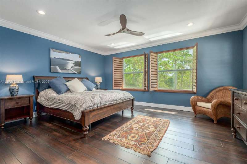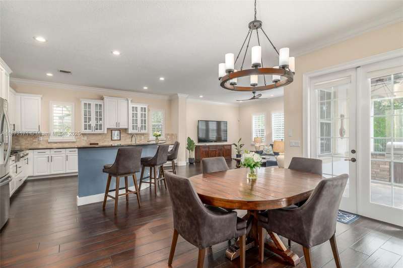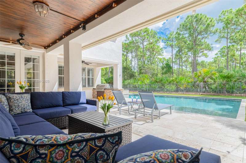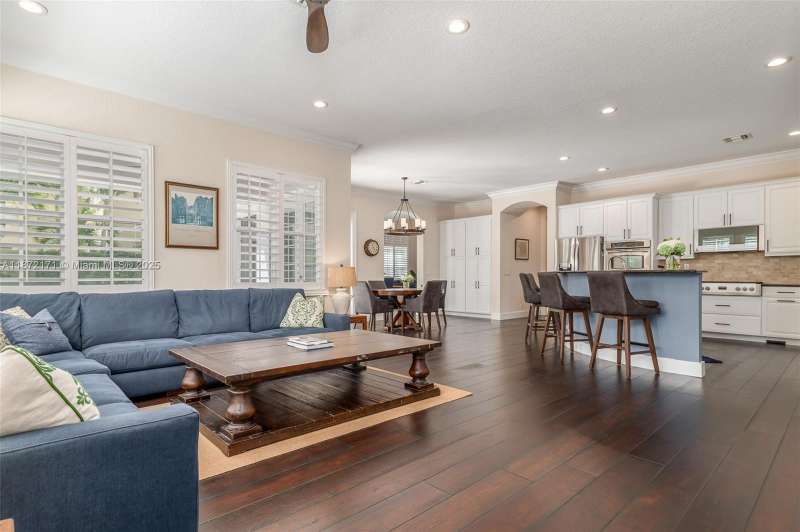Exceptional and rare, this Elliston model offers 5 BD and 4.5 BT overlooking the preserve. Inside, soaring ceilings, abundant natural light, and an expansive loft create a bright, open layout. A sweeping curved staircase makes a striking architectural statement. The chef s kitchen is appointed with granite counters, a brand-new Fulgor Milano gas range, double ovens, stainless steel appliances, and a custom pantry. Wood flooring flows throughout the main living areas and bedrooms, while the primary suite features marble floors, granite counters, and a spacious walk-in closet. Outdoors, the private preserve setting creates a serene retreat with a resort-style pool and spa, extended brick patio, and a built-in gas grill for effortless entertaining.
