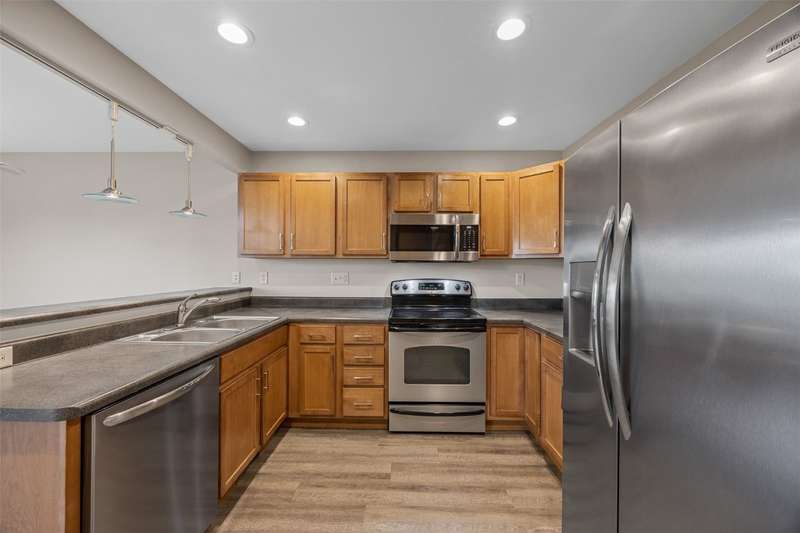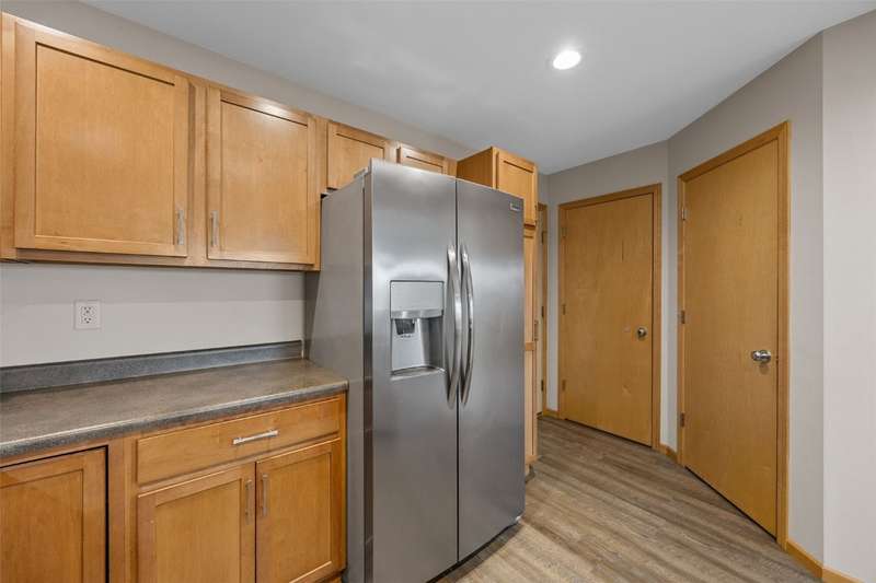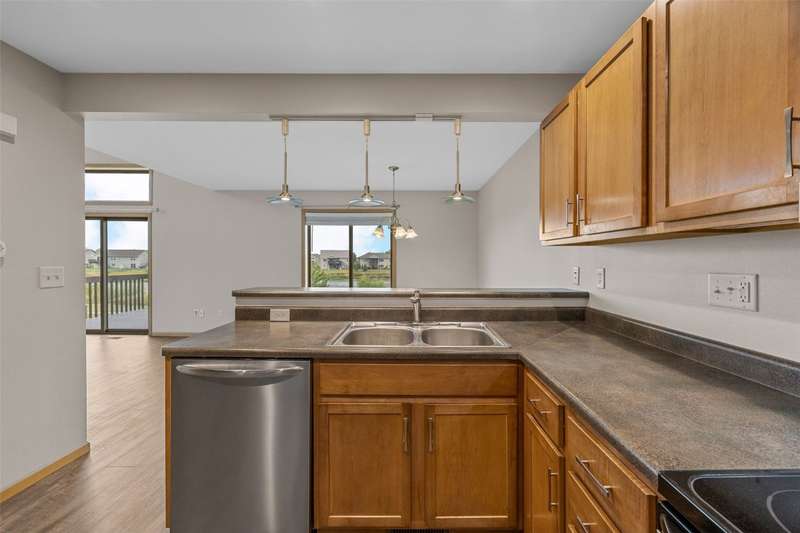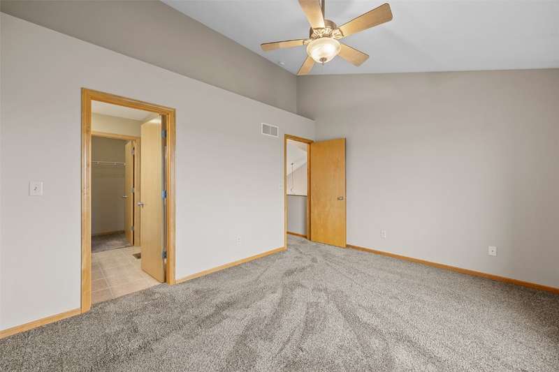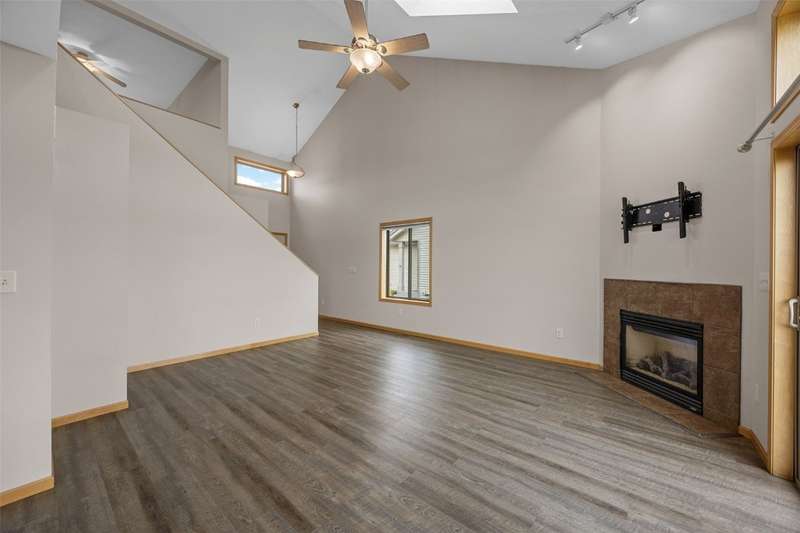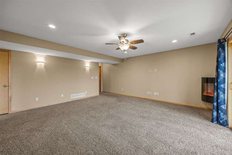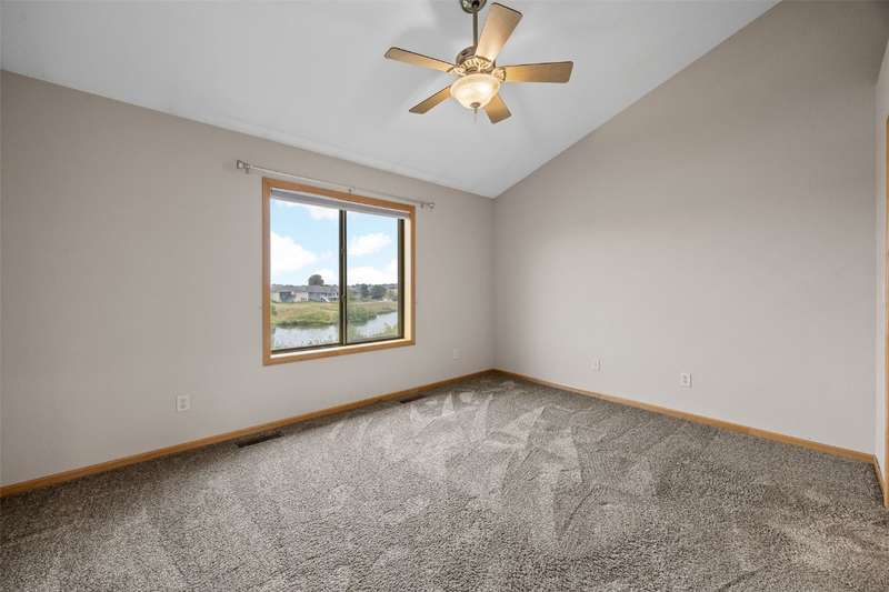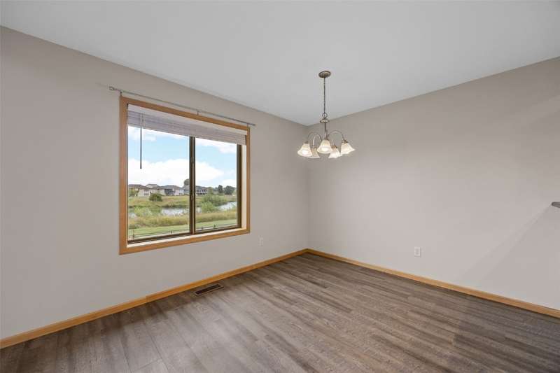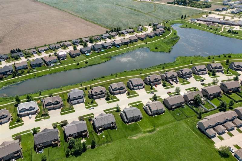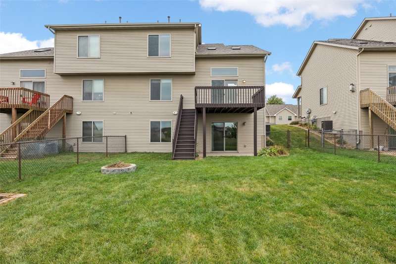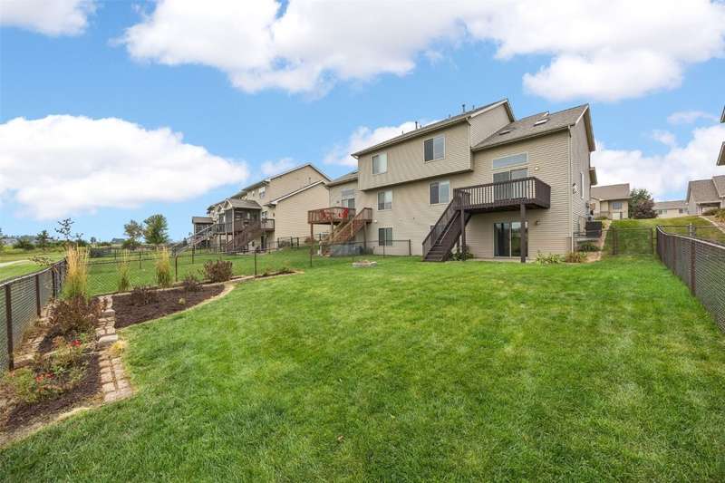 Zero-lot home with over 2,000 sq ft in a desirable neighborhood overlooking West Lake in North Liberty. Main level features vaulted ceilings, abundant natural light, LVP flooring, gas fireplace, and access to a composite deck with stairs to the yard. Upstairs offers 2 bedrooms plus an office/nook area, with new carpet on the stairs, hallway, and nook. Home includes 3.5 bathrooms and blinds throughout.The walkout lower level provides an electric fireplace, freshly professionally cleaned carpet, and access to the fenced yard. Outdoor highlights include raised garden beds, firepit, and composite decking. Additional features: 2-car garage, water softener, and a roof approximately 4 years old.