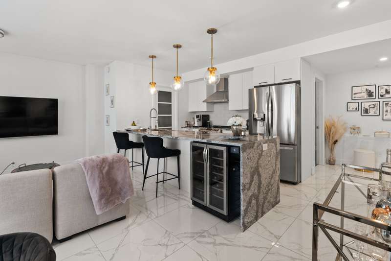 Ventura Condos PHASE 3! Very sunny and spacious corner unit condo with many upgrades when bought! Facing the Fairview Center, this project offers quick access to Highway 40, walking distance to shopping mall Fairview, bus terminus and the future REM light rail transit system. Top quality solid concrete construction with vast windows, open concept living areas and comfortable sized two bedrooms with walk-in closets, 2 full modern bathrooms, quartz countertops and a large pantry in the kitchen, large balcony with BBQ with unobstructed views over quiet residential housing area behind the building. A prime location!