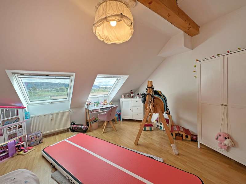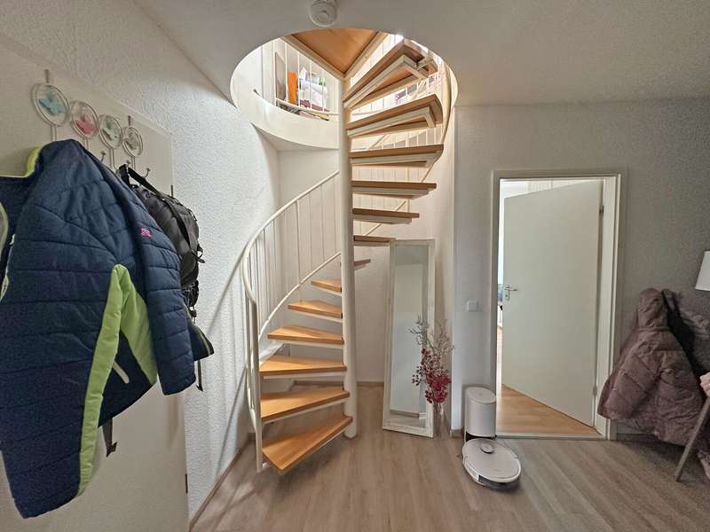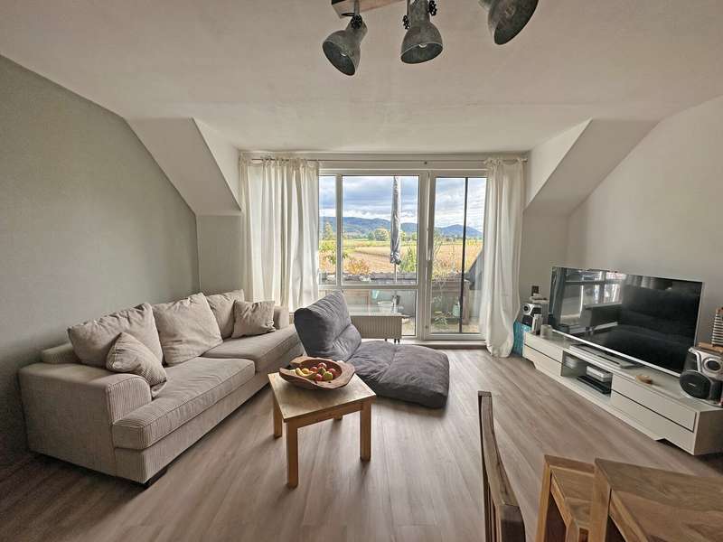 This charming maisonette apartment from 1998 has a living space of approx. 80 m². The special layout over two levels gives the apartment an open and at the same time well-structured living feeling. On the upper floor, you are greeted by an inviting hallway from which you enter the bright living and dining area. From here you can access the balcony, which offers a pleasant outdoor area for relaxing. There is also a good-sized bedroom, a separate kitchen and a bathroom on this level, which together form a clear and functional room structure. A staircase leads to the top floor, which forms the private retreat area of the apartment. An anteroom with flexible usage potential and a further children's room are available here, making the most of the maisonette concept. The apartment also boasts modern features such as triple glazing and solar shutters, which ensure a pleasant indoor climate and additional comfort. Tiled and laminate flooring create an easy-care yet homely atmosphere. A parking space ideally rounds off the offer. Hirschberg an der Bergstraße is one of the most sought-after residential areas in the region. The municipality offers a good infrastructure, short distances to all important facilities and a natural environment, which is characterized by vineyards and the Odenwald and offers a wide range of leisure activities. This maisonette apartment combines an attractive residential location with a well thought-out interior design and modern fixtures and fittings - a solid and future-proof investment opportunity. Please contact us for a viewing.