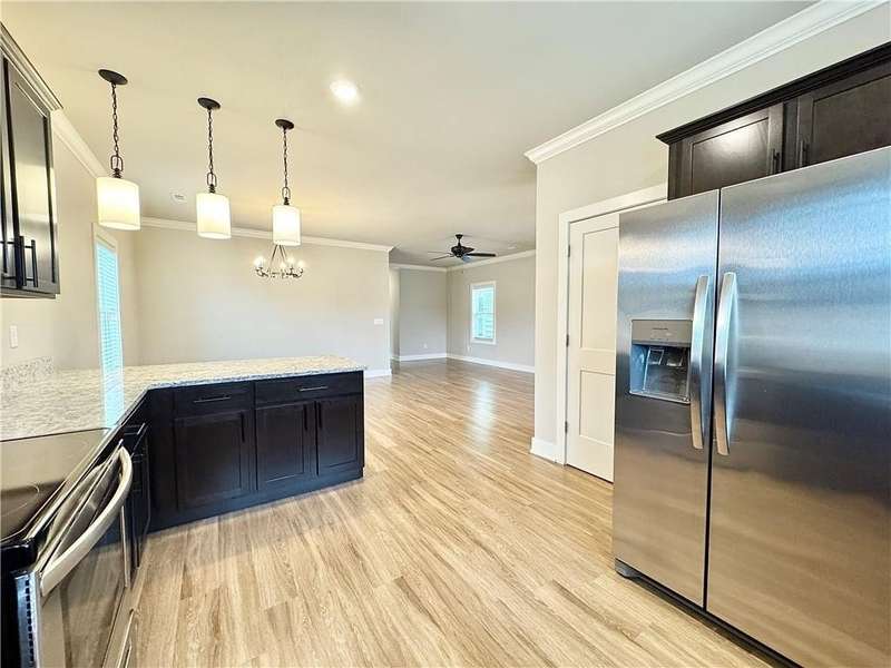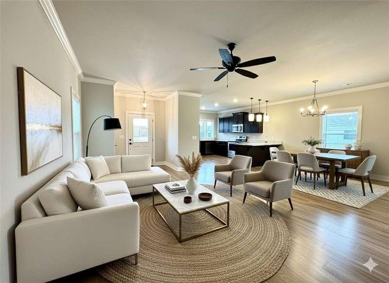 5.49% INTEREST RATE/BUY DOWN! Unbeatable location near Crystal Bridges Museum, the Alice Walton School of Medicine, Downtown Bentonville & Walmart’s new campus. Enjoy a vibrant community with top-tier amenities, including a clubhouse, pool, pickleball court, dog park, yard maintenance & access to the countries top premier mountain biking trails. Fitzgerald floor plan boasts LVP flooring, crown molding, blinds, ample storage & quality throughout. The living room & dining area offer a seamless open floor plan, perfect for entertaining, with abundant natural light & smooth flow into the chef’s kitchen. Chef’s kitchen features 3cm granite countertops, Frigidaire stainless steel appliances, refrigerator, a pantry, tons of storage & abundant natural light. Spacious primary suite includes a perfect ensuite bathroom with walk-in tile shower, double sinks, & large walk-in closet. Patio perfect for entertaining! Oversized garage with ample storage. Staged home at 915 Heights.