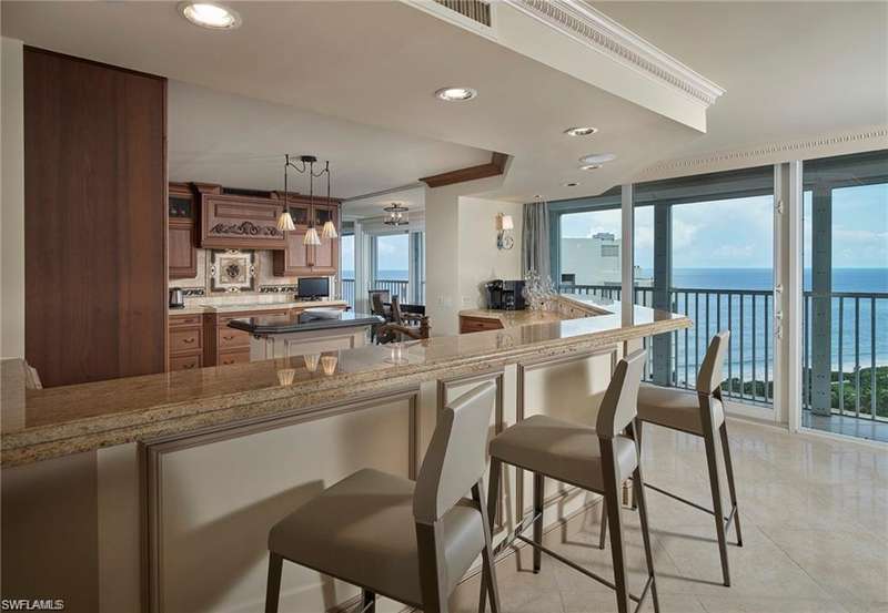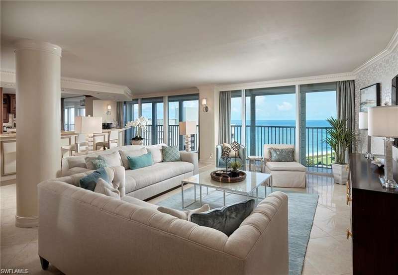 Rented from November 1, 2025 to Aril 15, 2026. Stunning views from this 3 BR, 3 Baths Park Shore PH unit, from every room. Light, bright and open with marble flooring throughout, crown molding, custom cabinetry, granite counters, and tile backsplash. Beautiful master bath with jacuzzi tub and large walk in closet. Popular split bedroom plan offering balconies off each bedroom and impact glass with storm shutters. The Savoy offers a large pool, fitness, tennis, pickle ball & bocci ball. The guard gate, 24 hr lobby attendant and sunset decks complete the luxury amenities. Popular locations on Gulf Shore Blvd, across the street from dining and shopping, at Venetian Village and Park Shore marina. Only a few minutes to the Philharmonic Arts Center and Waterside Shops.