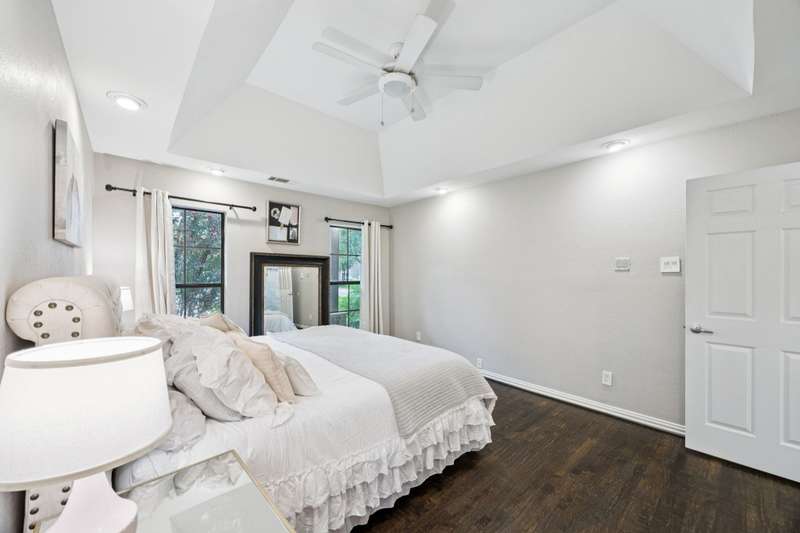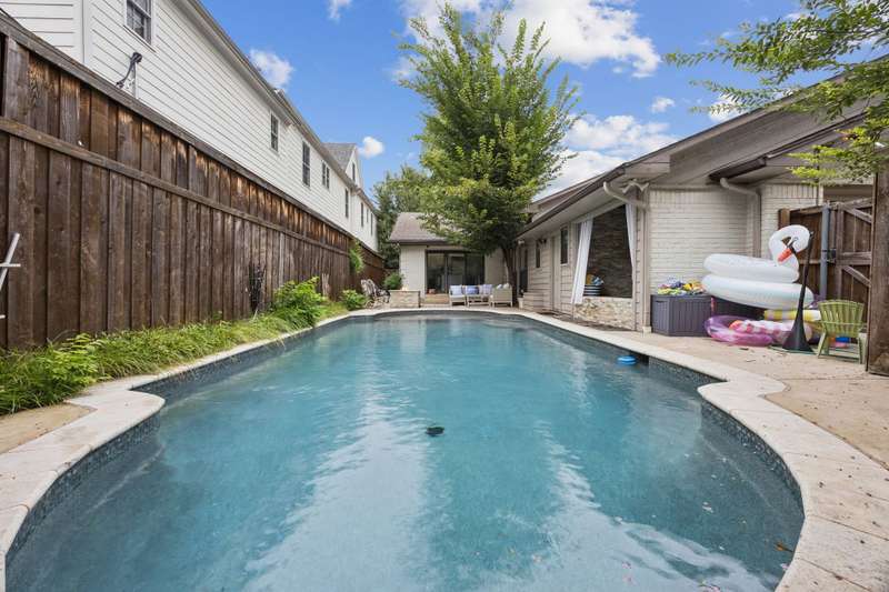 Introducing a stunning, move-in-ready home in the highly sought-after Highland Park ISD. Nestled on a serene cul-de-sac with minimal traffic and wonderful neighbors, this exquisite 4-bedroom, 4.5-bathroom single-family residence, zoned for Boone Elementary, boasts an outstanding blend of modern updates & timeless charm. The welcoming front porch showcases exposed wood beams & stone accents making it the perfect spot to enjoy watching children play or a quite spot to read a book.This is a fitting introduction to the thoughtfully designed layout catering perfectly to contemporary family living, featuring soaring ceilings and elegant wood floors in the main entertaining spaces. The first-floor primary suite is a tranquil retreat with lofty ceilings, wood floors, & a luxurious spa-like bath equipped with jetted tub,separate shower, & expansive walk-in closet. A second suite down adds versatility,perfect for guests,young children,or home office. A sleek chefs kitchen dazzles with marble counters, a spacious island,built in wine fridge, a SubZero refrigerator, gas cooktop, and abundant cabinetry. The kitchen seamlessly flows into the family room,with a cathedral ceiling & stone fireplace, creating a warm & inviting space to gather. Formal living and dining areas,feature a second fireplace & floor-length windows providing loads of natural light. Upstairs, youll find 2 additional bedrooms & a full bathroom, providing comfort & privacy for children and guests. The backyard is a private retreat, offering a sparkling pool (removable safety fencing), a sep. spa, & the potential for multiple seating areas around a built-in firepit.Practical features include attached 2-car garage, additional guest parking, a full pool bath, & separate utility room. With new windows, carpet, & paint, this home is sure to impress. Dont miss out on the chance to proudly call this updated gem, on a quiet cul-de-sac your home.