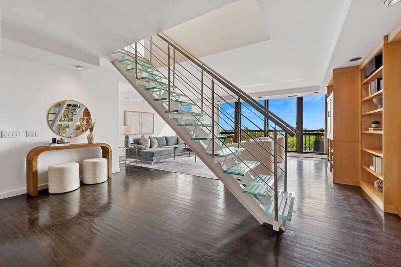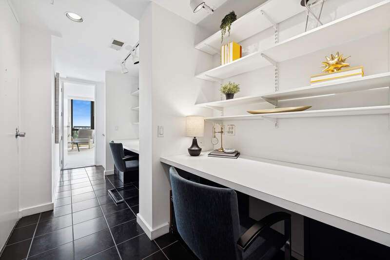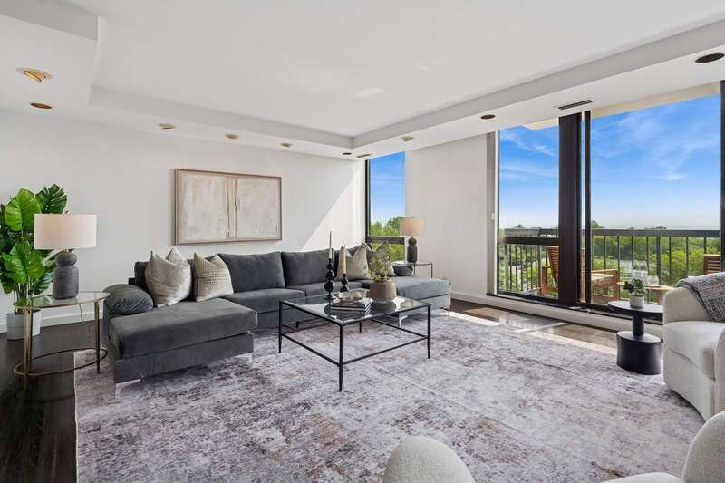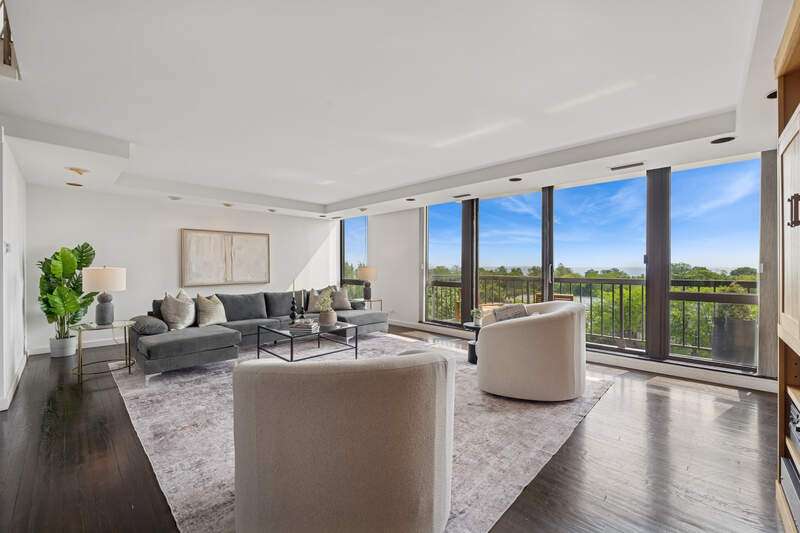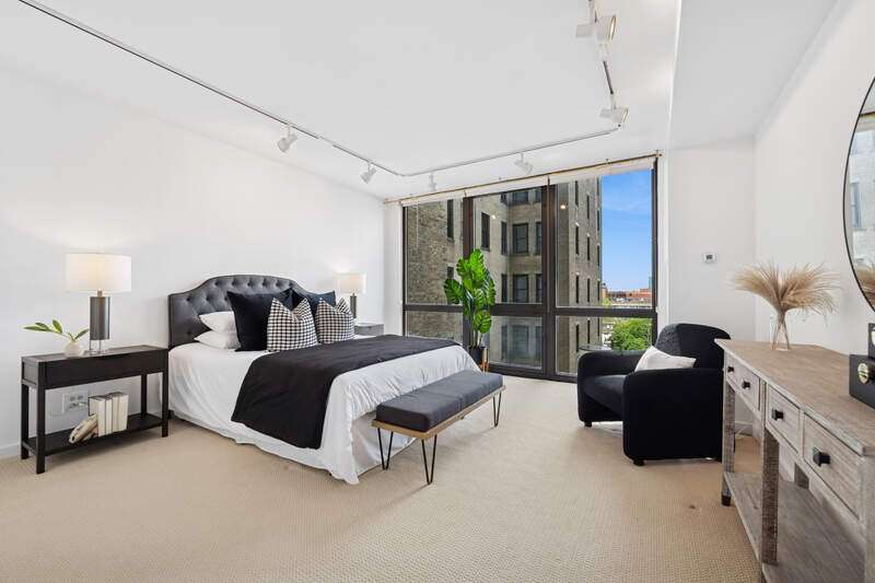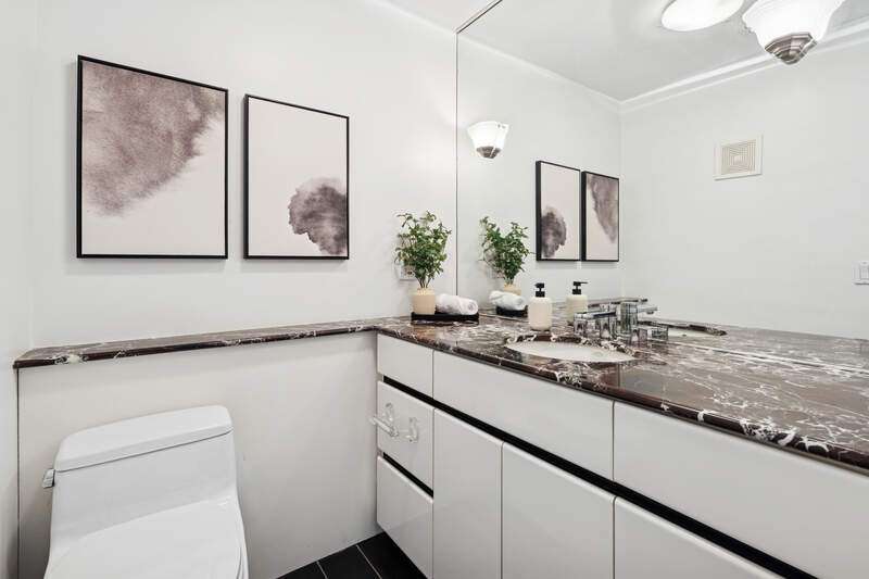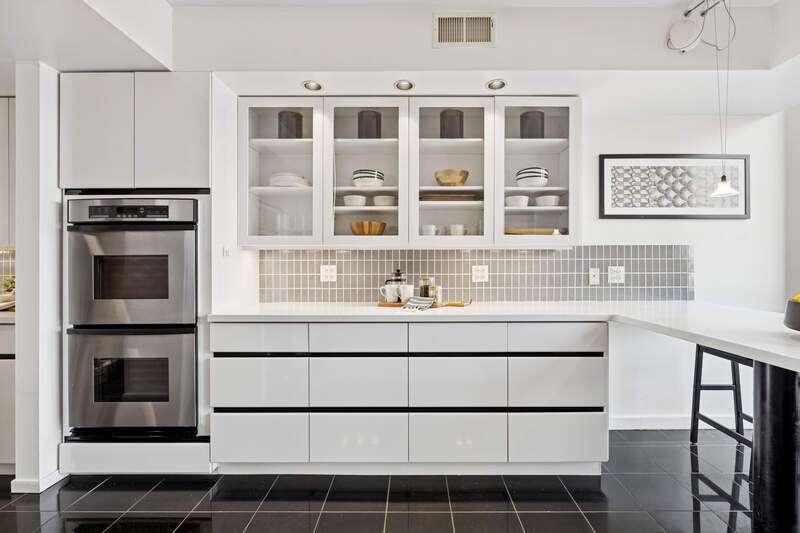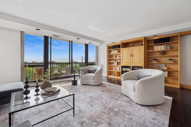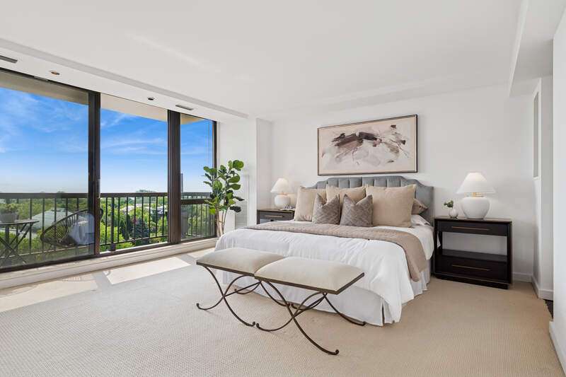 Enjoy breathtaking, southeast-facing views of the city, park, and lake from this pristine and modern two-story residence at The Conservatory. The expertly designed floor plan keeps the public rooms on the main level and the bedrooms upstairs so that this 2273 SQFT condo lives more like a single-family home. Floor-to-ceiling windows welcome abundant natural light while sliding doors open to a 14 ft long terrace overlooking the Lincoln Park Conservatory with a skyline view to the south. The first-floor features hardwood flooring in the living and dining rooms along with elegant custom built-in bookshelves. Wired for surround sound, this home is the perfect place to entertain. A separate eat-in kitchen offers high end appliances, granite tile flooring, a pantry, and copious counter and cabinet space. A powder room and ample closet and storage space complete this level nicely. The floating glass staircase separates the living and dining rooms and leads upstairs to the private quarters. Comfortable and serene, the primary suite is bathed in natural light and enjoys its own private 14 ft long terrace, two walk-in closets, and an ensuite bath with Whirlpool tub, separate shower, and double sinks. Across the hall, a graciously sized guest suite offers west-facing views, a walk-in closet, and an ensuite bath. Two parking spaces (one garage and one exterior) are included in the price. Side-by-side W/D on each floor, shared with same-floor neighbor only. Ideally located in East Lincoln Park alongside parks, playgrounds, Lincoln Park Zoo, near the lake front, 5-star dining, shopping, and public transportation - this home has it all. Welcome home!
