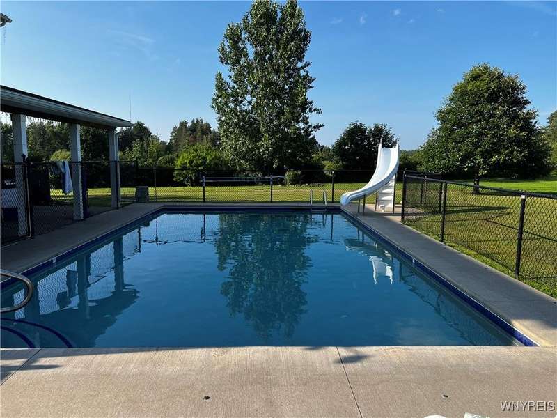 Beautiful 4BR/2.5BA Colonial style home nestled on 32 acres with attached 2-car garage and a detached pole barn (20'x30'). Home features a spacious, eat-in kitchen with walk-in pantry, first floor laundry room, and a large den which could be used as a home office. Main bedroom has an en suite bathroom. Spend summer days enjoying the gunite pool w/ slide in the back yard. The property also features 2 weather protected deer hunting stands for outdoor recreation.
