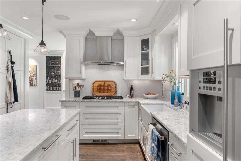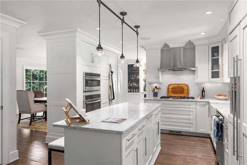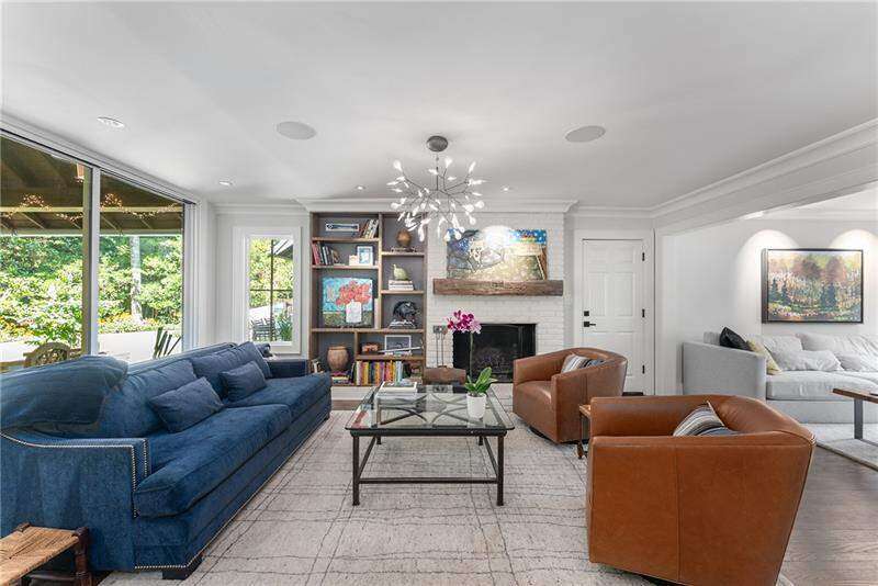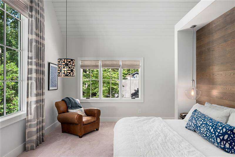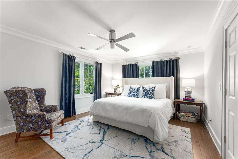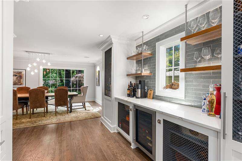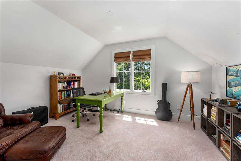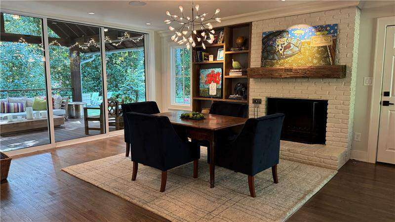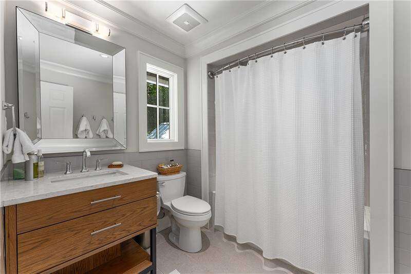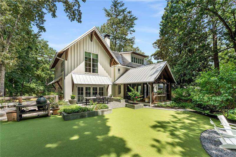 Atlanta Home Magazine's 2024 Gold Medal Award Winner, this exceptional Napa-inspired modern farmhouse in Sandy Springs offers a rare blend of architectural sophistication, high-performance living, and timeless craftsmanship. A stunning Jones Pierce design/build masterpiece set on a private, maturely landscaped half-acre lot, the fully remodeled residence spans 4,445 square feet with 5 bedrooms and 4.5 bathrooms-expertly curated for both luxury and comfort. At the heart of the home is a chef's kitchen featuring Carrera marble countertops, a farmhouse sink, new Wolf gas range cooktop, paneled refrigerator, and dual convection ovens. Just beyond, a custom butler's pantry includes built-in bar, custom cabinetry, shelving, and a wine fridge-perfect for entertaining. The adjacent formal dining room, with its generous bay window overlooking the lush front yard, sets the stage for memorable gatherings. Additionally on the main level, the bright and airy den features a reclaimed barn wood accent wall and large flat-screen TV, flooded with natural light from an oversized panoramic picture window. The living room impresses with designer lighting, a custom bookshelf, and an inviting wood-burning fireplace. Sliding three-panel glass doors open seamlessly to a resort-style outdoor patio, ideal for al fresco dining and relaxing. Upstairs, the luxurious primary suite boasts vaulted ceilings, a custom oak accent wall, gas fireplace, electric blinds, and two fully built-out walk-in closets with designer lighting. The spa-like primary bath offers dual vanities, an oversized glass shower with multiple showerheads including a rain feature, and a private water closet. Two additional bedrooms are connected by a stunning bathroom with floating mirror, dual showerheads, river stone flooring, built-in bench, and a private water closet. A beautiful fourth ensuite bedroom completes the second floor. Tucked away on the top floor, this bright and airy flex space functions beautifully as a media room, home office, or gym, featuring custom built-ins, hardwood floors, and ample natural light for a relaxed yet refined ambiance. This level also includes a full bedroom and bathroom, offering a private suite ideal for guests or extended family. The basement level includes two climate-controlled rooms currently set up with a pool table with bar, media space and play room, ideal for casual gatherings or future customization. Step outside to the 250+ square foot covered patio overlooking an Italian-inspired outdoor dining area with bluestone planters and full audio-easily controlled from your phone. The PGA Tour-grade putting green, flanked by a gas fire pit and seating area, provides a unique and immersive experience. The fully fenced backyard is enhanced by professionally landscaped walkways, stairs, and planting areas. The front of the home sits gracefully above street level with sloping Zoysia grass and native trees and shrubs, all supported by an automatic irrigation and mosquito repellent system for year-round enjoyment. Every detail of this home has been thoughtfully elevated-from solid oak and metal stairwells to custom cabinetry, crown moldings, and hardwood flooring. Smart home features include Clare full-home automation, five exterior cameras, integrated AV systems, whole-home audio, and tri-zone Trane HVAC. Environmentally conscious features include a 16kW, 38-panel solar array and numerous energy-efficient upgrades throughout. This one-of-a-kind home is an extraordinary opportunity. Schedule your private showing-homes of this caliber are rare, and this one won't last!