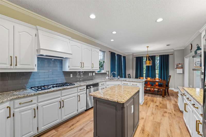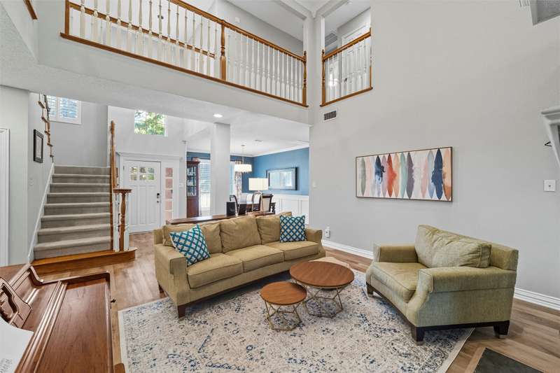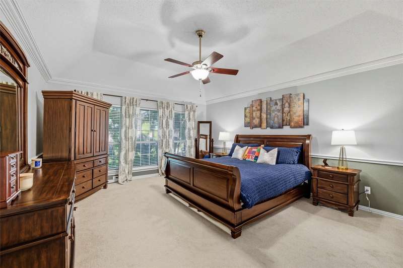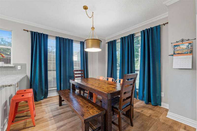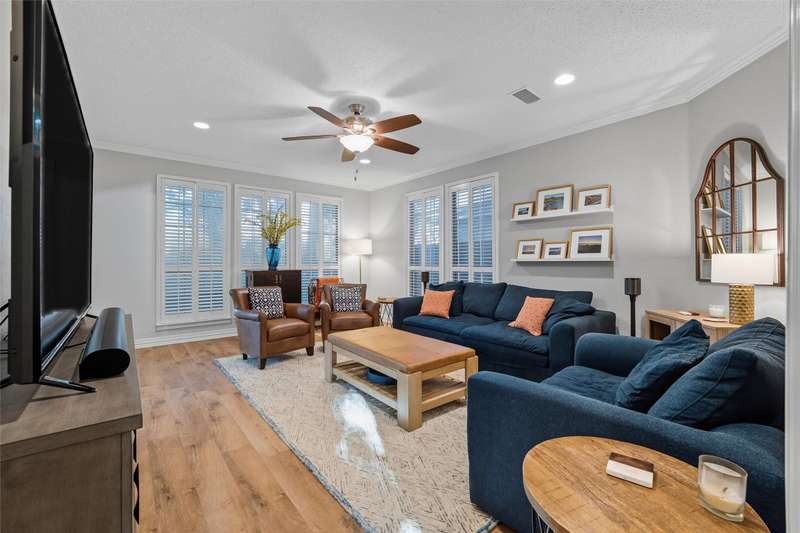 Stunning home located in the coveted neighborhood of Martha's Vineyard is family's dream! Entering this impressive home, you are welcomed with vaulted ceilings and a stunning double-sided fireplace that adds warmth and charm to the main spacious living spaces. This home offers a large dining room and office with built-in cabinets that is the perfect work from home space. Each room is furnished with elegant plantation shutters. A beautiful updated kitchen with granite countertops and stainless steel appliances, gas cooktop, double ovens and generous cabinetry make this a chef's dream. A breakfast area with views of the backyard is perfect for entertaining next to the large flex room that is a perfect media room, game room for a second living area. First floor also offers two half baths and a large utility room. Upstairs the primary suite offers a jetted garden tub, walk-in shower, dual sinks and large walk-in closet. Upstairs has three additional bedrooms each having large closets and a large updated bathroom. Metal roof, electric gate and a rear entry garage with a walk-in attic & great storage throughout are additional features for the future homeowners to enjoy. Step outside to your private, shaded backyard retreat complete with a wrought iron fence that is perfect for relaxing or entertaining. This home was designed with function and comfort in mind and is conveniently located in desirable South Arlington near top schools, parks and shopping. Don't miss this beautiful home and all it has to offer!