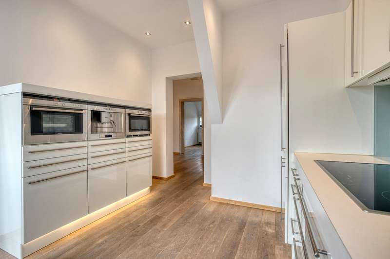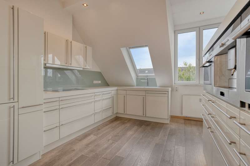 Directly opposite the state parliament with a view of the Rhine and television tower, you will find this individual and light-flooded maisonette apartment with approx. 133 m² of living space and a fantastic roof terrace, which offers you a fantastic view over the rooftops of Unterbilk. You can easily reach the apartment on the 4th floor of a well-kept old building from 1913 by elevator and are greeted by a spacious entrance hall, from which you reach the living/dining area, which consists of two connected rooms, a children's room or study, the kitchen and the shower room. The successful style of the apartment is already evident here: lots of light, high ceilings, a beautiful wooden floor and old, refurbished wooden frames and doors are just a few examples. A Bose sound system provides excellent acoustics in all rooms if required. A modern and timeless fitted kitchen awaits you in the kitchen, which is also rented out. Adjacent to this, an open wooden staircase leads to the top floor, where the spacious sleeping area with en suite bathroom and access to the roof terrace at the rear is located. Custom-made built-in units provide plenty of storage space and a large skylight offers a view of the state parliament, the Rhine and the Rhine embankment promenade. The room height up to the gable and the open beams of the roof truss give this area a very special touch. The daylight bathroom on this floor also has a small, separate area with a washing machine connection. The apartment was extensively modernized a few years ago and is now in a very well-kept condition. Come and view this fantastic property in a prime Düsseldorf location for yourself!