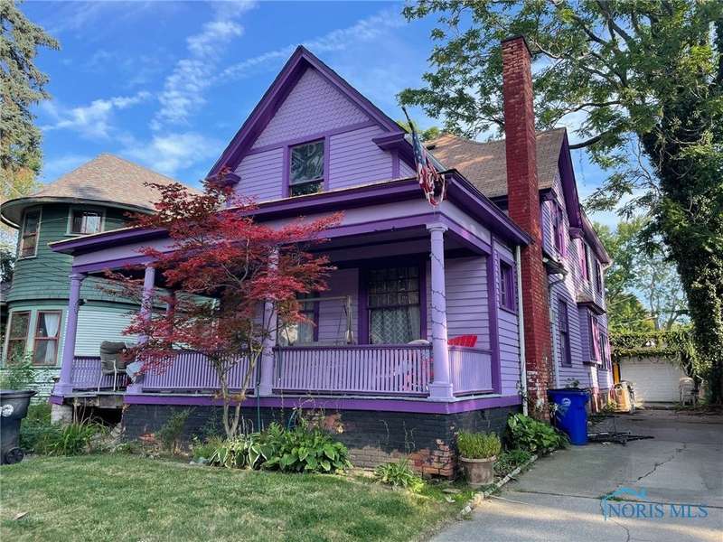 Beautiful Victorian style home! Located in the heart of the Old West End, this 5-bed, 2.5-bath, property has a massive front porch, large foyer with French doors, and a spacious living room, that includes a fireplace. Formal dining room, butler pantry, sprawling kitchen with ceramic tile backsplash, newer light fixtures, a half bathroom, and an enclosed back porch. Upstairs features an open landing with 4 beds. The primary bedroom has a fireplace. Secondary bedroom has an en-suite bathroom. Primary restroom has original tile. Full basement, detached garage, and long driveway.