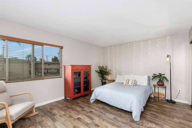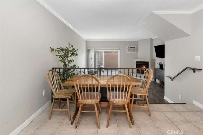 Excellent Opportunity, to get into this beautifully updated Villa Toscano townhome featuring stylish wood plank laminate flooring through most of the property, tile in the kitchen and bathrooms, upgraded kitchen offers crisp white cabinetry, sleek granite countertops, modern stainless-steel appliances, and a spacious dining area -- perfect for everyday living or entertaining guests. A convenient half bath is located on the main level. Step down into the open living room, complete with a cozy fireplace and direct access to a large private patio -- ideal for outdoor entertaining. The patio includes space for a raised garden or outdoor gym and is adjacent to a generous storage area that could easily serve as a workshop or art studio. Upstairs, you'll find a spacious primary bedroom with mirrored wardrobe doors and views of the sparkling pool and BBQ area and a secondary bedroom with wall to wall closet with mirrored wardrobe doors and a large window to let in plenty of natural light. The shared ensuite bathroom has been elegantly renovated with a modern tiled shower/tub combo, a contemporary dual-sink vanity, and ample counter space.