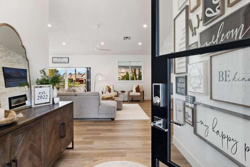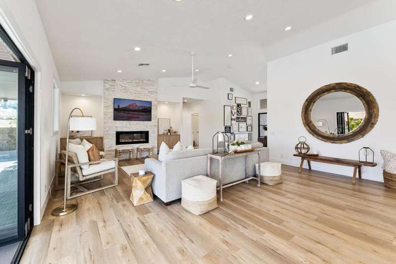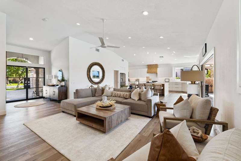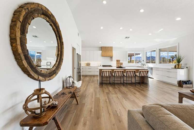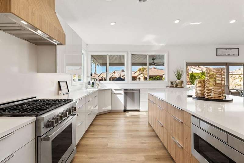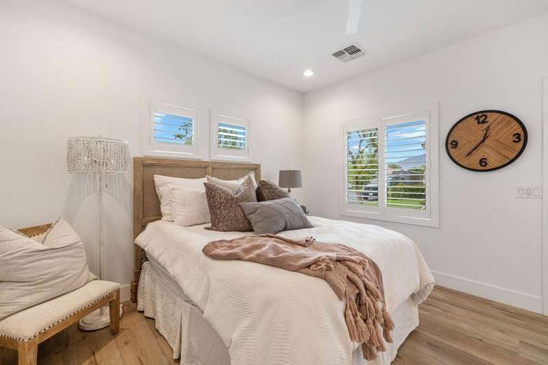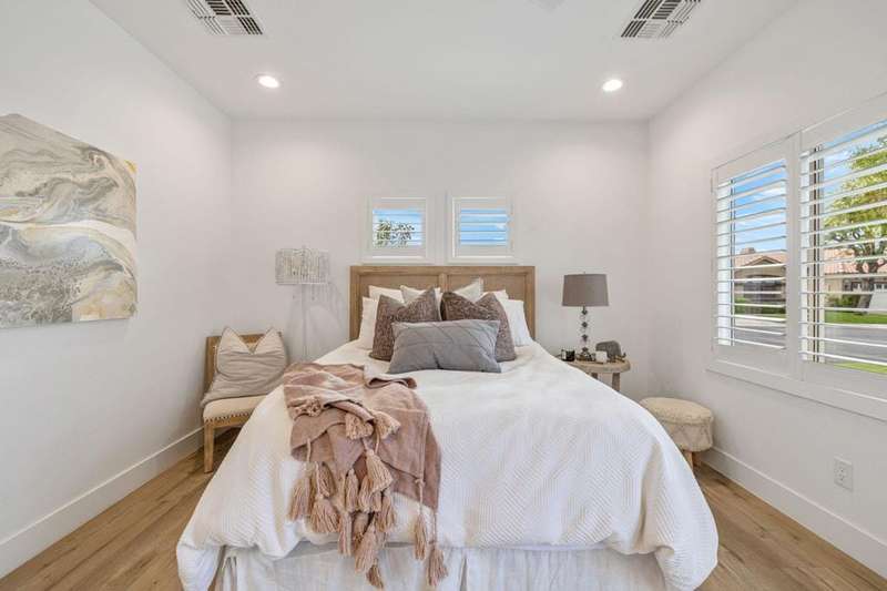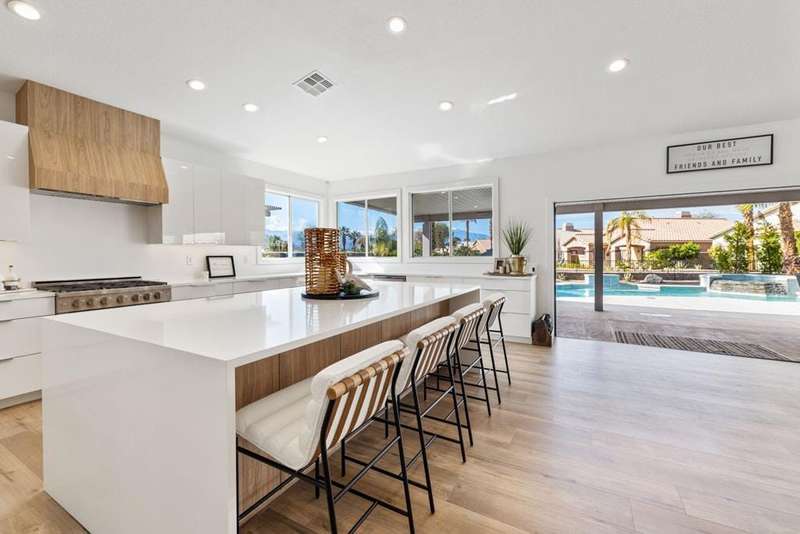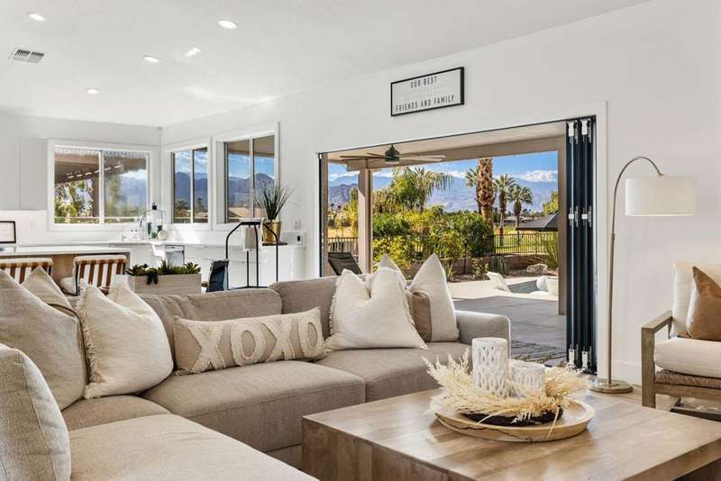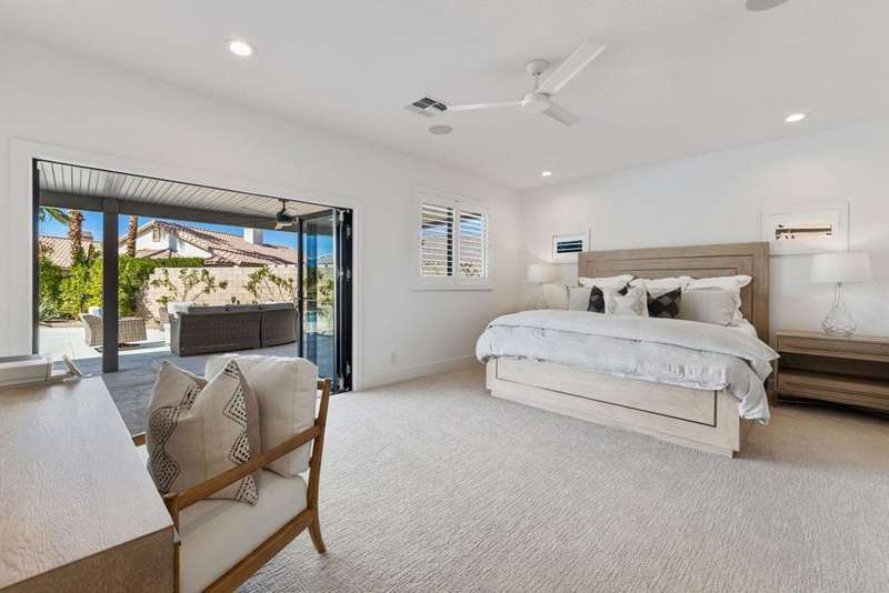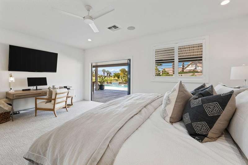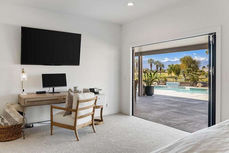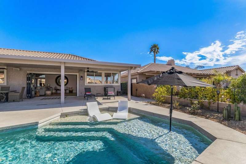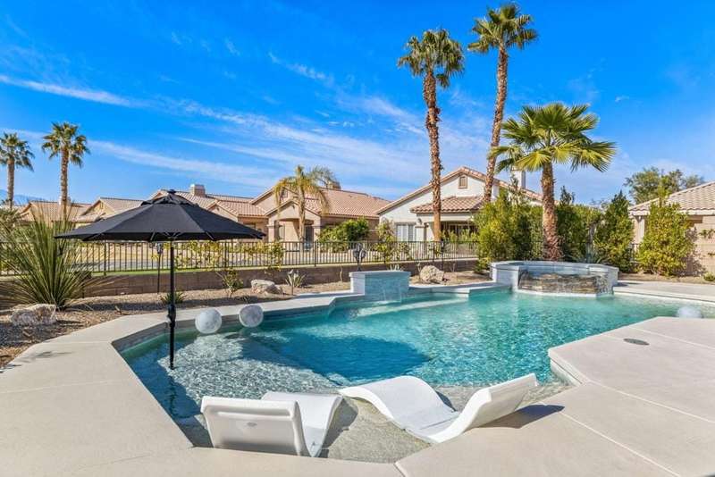 AVAILABLE: Jan Feb March 2026Welcome to paradise! Enjoy this 4 bed/4 bath 2402 sq ft oasis in the heart of Coachella Valley. Fully remodeled open concept home is perfect for vacationing with friends and family. Located on the 5th Tee Of Big Rock Golf Course in the Indian Springs Country Club, this home is surrounded by beautiful mountains and magical sunsets. Newly resurfaced oversized pool and jacuzzi along with outdoor seating area around a new fire pit as well as an extensive covered area make the outdoor living space perfect for gatherings. The heart of the home is the gourmet kitchen which offers a 10 foot quartz island with waterfall edges. High end Stainless Steel appliances and wine fridge complete this space. The gathering space has a coastal feel with soaring ceilings and a wall of Nana Doors that lead you outside. The master retreat has a oversized two person shower and large walk-in closet with another set of Nana doors to enjoy the beautiful views. Each guest room has their own fully remodeled bathroom in the main house. (if needed there is a detached Casita with bed and bath as well.) Large driveway for parking as well as three parking spaces in the garage.JAN-MAR $15,000APRIL $18,000MAY-OCT $6,000NOV-DEC $10,000$5,000 security deposit$350 cleaning fee$500/mo cap on gas & electric combined