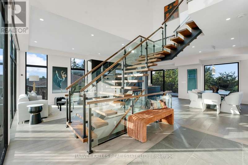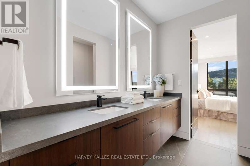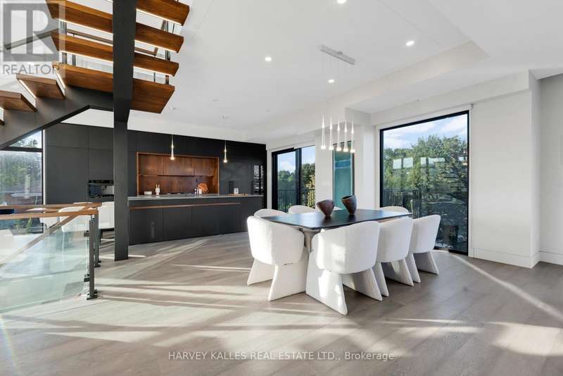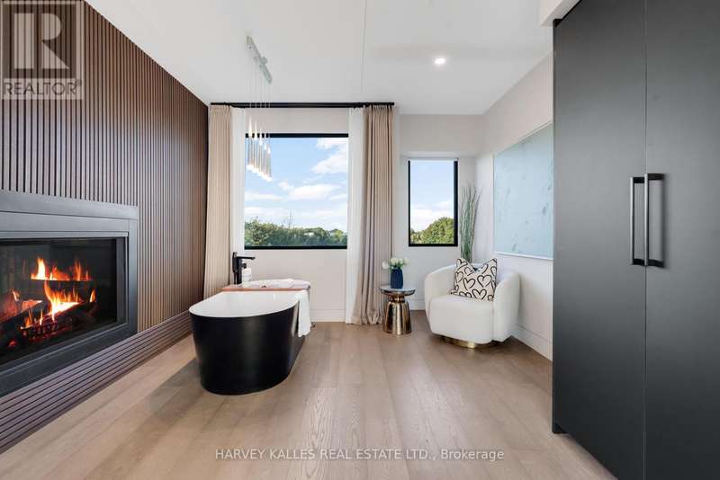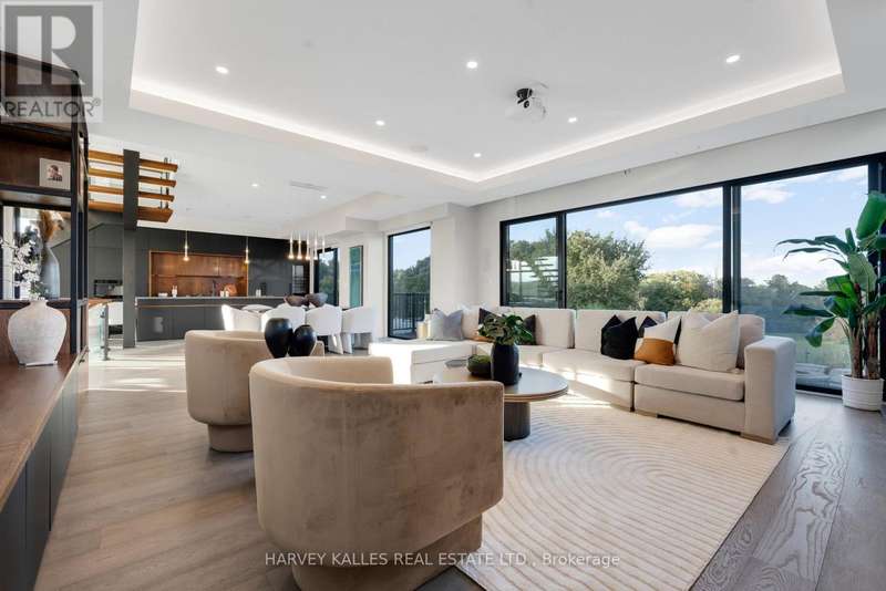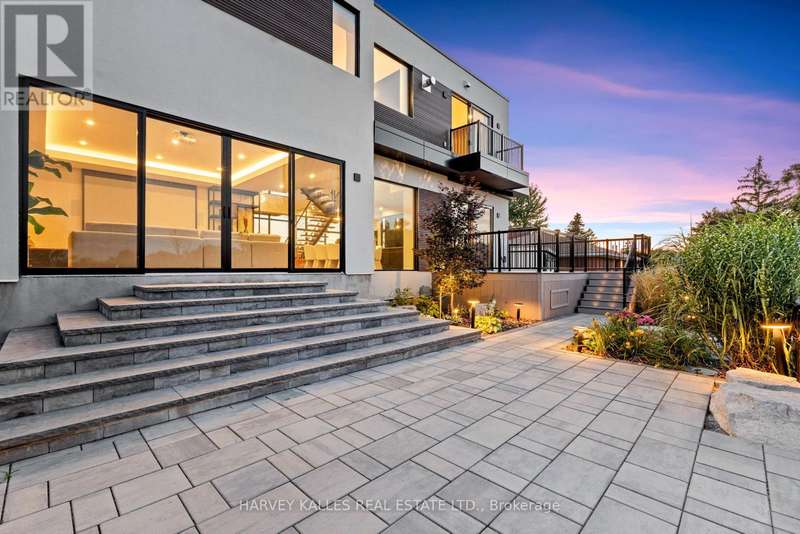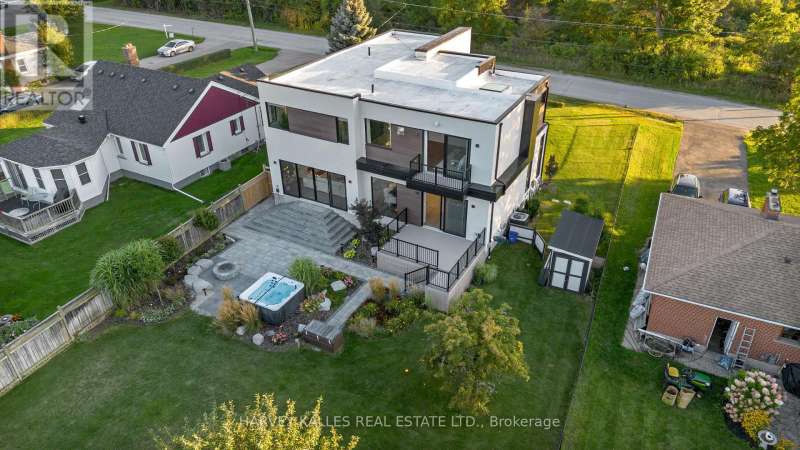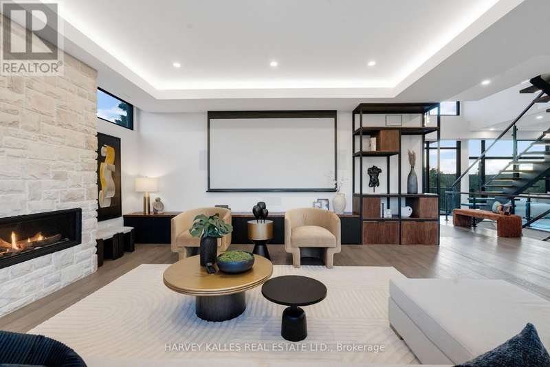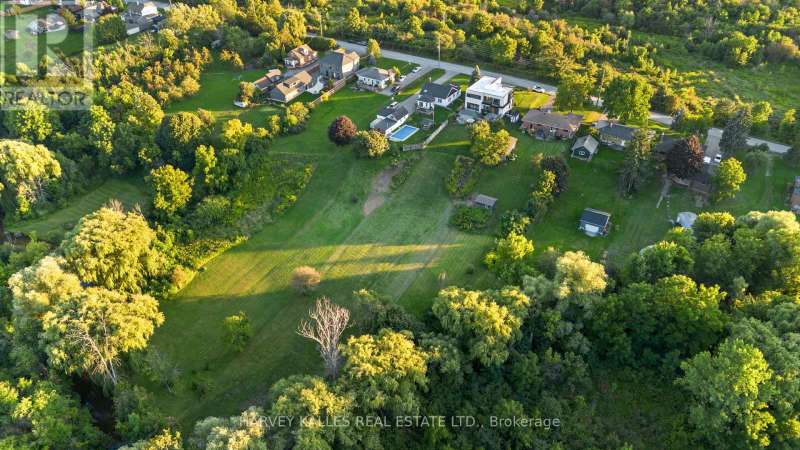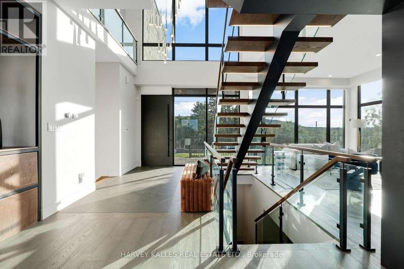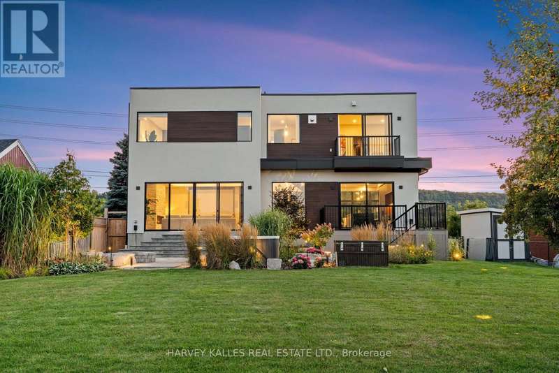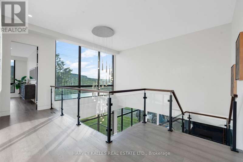 Directly across from the cliff-face of the Niagara Escarpment, in one of Milton's most serene and private settings, sits a newly built contemporary masterpiece designed by award-winning Sensus Design Studio. Resting on a remarkable 60 x 520+ lot backing onto 16 Mile Creek, this home offers a rare blend of modern architecture and countryside tranquility. With no neighbours in front or behind, walls of windows immerse you in nature, while the expansive backyard invites year-round enjoyment whether relaxing in the hot tub, recovering in the cold plunge, gathering around the fire pit, fishing, tobogganing, or even practicing your short game of golf! Inside, 21 ceilings and a floating staircase set a dramatic tone. A formal living room frames escarpment sunsets, while the sleek custom kitchen features high-end Fisher & Paykel appliances. The family room, anchored by a soaring stone fireplace, doubles as a home theatre with built-in projector and surround sound. The primary suite rivals a five-star retreat: a lounge with soaker tub overlooking the backyard, a double-sided fireplace, king-size sleeping area with custom headboard, walk-through closet, and spa-like ensuite. Two additional king-sized bedrooms each feature walk-in closets and lavish ensuites with wet rooms. Smart home features include lighting automation, landscape and irrigation systems, EV charger, and more. A perfect fusion of luxury design and natural beauty, this home is truly one-of-a-kind and must be experienced in person. (id:6370)