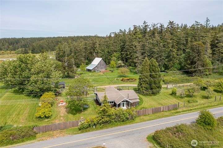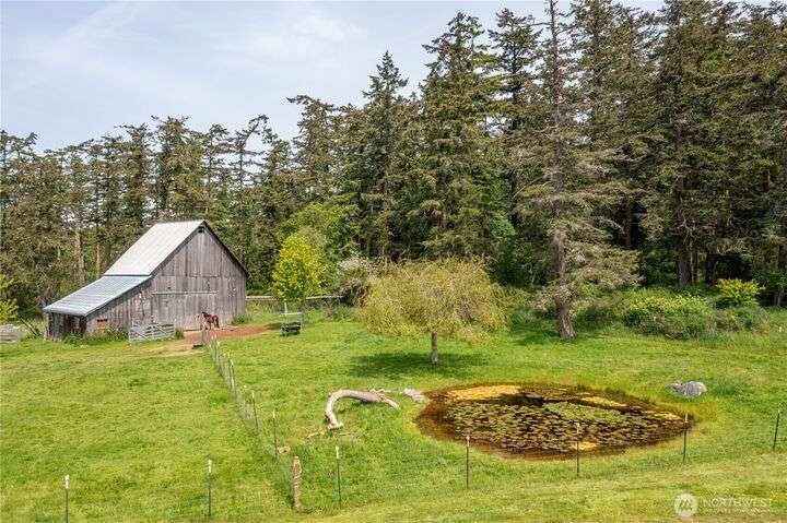 Nestled in the heart of the Salish Sea, this rustic homestead on “The Friendly Isle” harmonizes with nature and offers cozy comfort. Perfect for digital nomads, this property is surprisingly modern, despite its homey charm. Relax inside the snug main house or expand your side hustle in the fully renovated studio ideal for crafting, recording, or working from home. Outside, explore the historic barn, lily pond, and a fully fenced field which doubles as a dog run, all while bald eagles and ravens watch from the nearby forest. Zoned for residential or business use, this idyllic property blends character with opportunity. Heirloom orchard, new Anderson windows, high speed fiber optic, rare commercial opportunity.