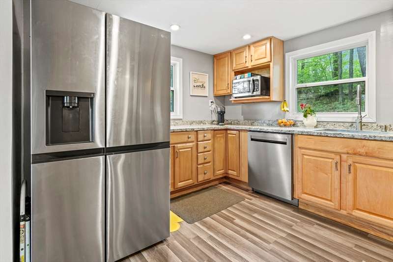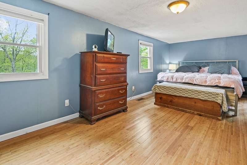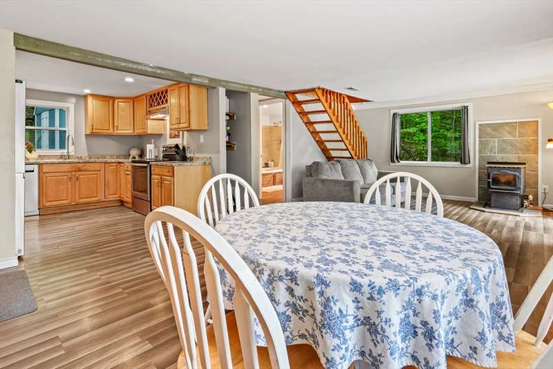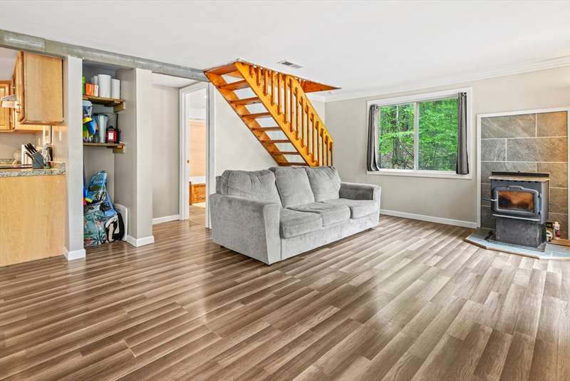 Welcome to this stylishly updated home on a full acre across from the Ashby Reservoir. Inside, enjoy modern touches like vinyl plank flooring, beamed ceiling and an open layout perfect for everyday living. The dining area is highlighted by a large bay window, the living room features a cozy pellet stove & opens to an expansive new deck. The kitchen boasts SS appliances and recessed lighting. A full bath with barn door accents and jacuzzi tub completes the main level. Upstairs offers a spacious main suite with walk-in closet, spa-like tiled bath, and a private balcony, plus a second bedroom and versatile bonus room. Outside features oversized decks, a storage shed, ample parking, and a brand new septic system. Newer metal roof too! A separate shared and deeded parcel of waterfront land allows for enjoying a lifestyle of fishing, hiking, and kayaking yet be just minutes from shopping and major commuter routes. NO SHOWINGS UNTIL 11/25