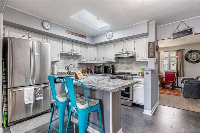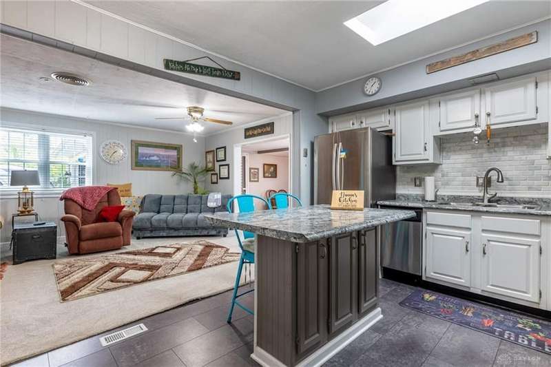 Welcome home to this lovely 4 bedroom, 1.5 bath ranch home with oversized attached 2 car garage. Get ready to enjoy your time at home in the family room or oversized living room with fireplace. Or spend your time outdoors on the side patio or the covered front porch. Be ready to dish up some delicious meals in the recently remodeled kitchen with beautiful tile backsplash, ample counter space, and eat at island. This place is a 10 with new paint and flooring throughout the front portion of the house, light and bright color scheme throughout, and all the potential to make it your new home!