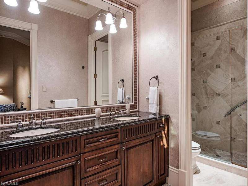 The Estates at Bay Colony, a community definable by no other statement than "Naples' most luxurious estate homes," now offers a residence so special that by comparison on any level, there is no equal. Secluded on a double lakefront estate site, this palatial estate incorporates only the finest materials and artisanship across the 15,247 sq. ft. of living area and exudes a rich European aesthetic. The residence is distinguished by a total of eight-bedroom suites, His and Her studies, a gourmet kitchen, a handsome hidden pub / billiards room, home theatre, and endless views of the lake and golf course from nearly every room. Ideally located on the ground-level, the master suite is nothing short of lavish with His and Her Dressing rooms, a sprawling bathroom befitting of royalty, as well as an adjacent sitting room that could serve a multitude of functions. Offering an impressive landscape for entertaining and relaxing, the exterior living environs host a sprawling logia with motorized screens, a fully-equipped outdoor kitchen, a magnificent pergola, as well as a 50' lap pool with water-lounge and spa - all of which is surrounded by Ritz Carlton styled cabanas. Additionally encompassed on site is a two-bedroom guest house complete with a full kitchen and living room, as well as a six-car capacity four-bay garage plus golf cart bay. It is without a doubt that this home exceeds all expectations and is a "must see" for the most discerning prospects.