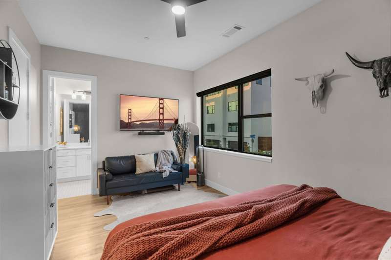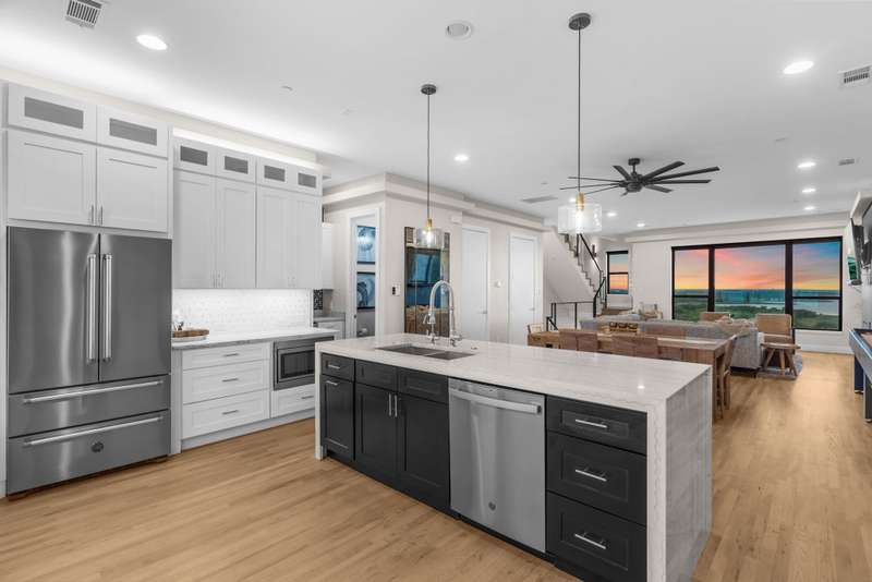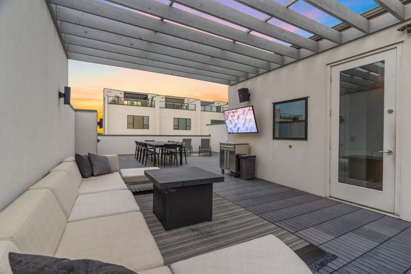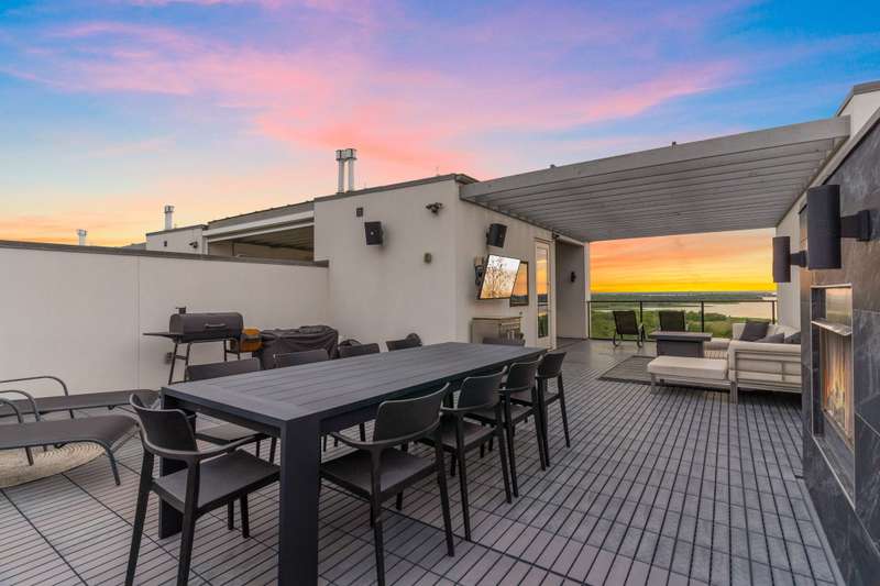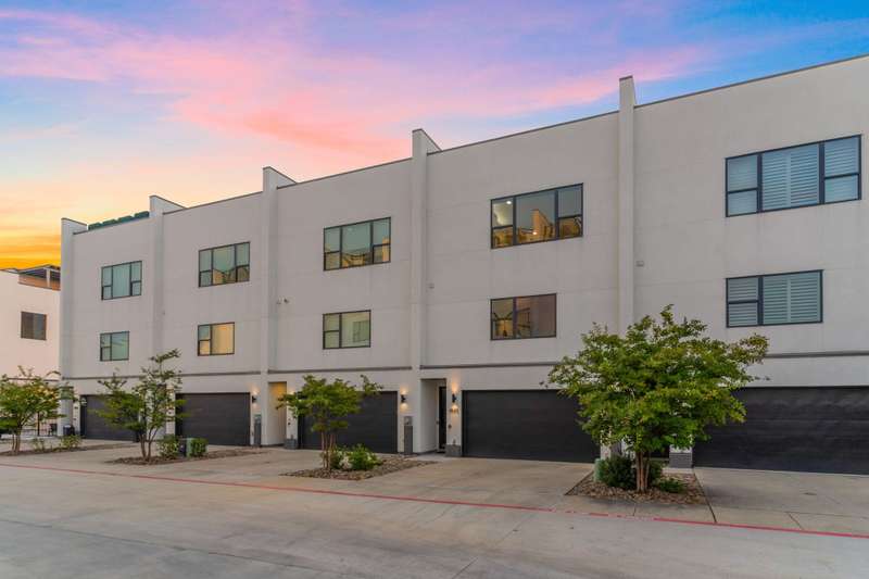 UNOBSTRUCTED BREATHTAKING VIEWS OF LAKE LEWISVILLE from all levels! STUNNING SUNSETS atop this low maintenance, lock & go lifestyle with your own ROOFTOP PATIO! This modern, 3 story townhome is designed for those who love clean lines, natural light, & effortless indoor-outdoor flow. Every level of this home has purpose. The ground floor greets you with sleek concrete flooring, tall ceilings, & leads to a flexible space that can serve as a guest suite, office, or studiocomplete with its own full bath & direct access to the private garage. The 2nd floor is for rest & retreat. The primary suite offers lake views & a spa-inspired ensuite bathroom, featuring a walk-in shower, free standing tub, double sinks, lots of storage & a custom closet. A 2nd bedroom with an ensuite bath & walk in closet complete the level, along with a laundry space tucked neatly away. Upstairs, opens up to a spacious kitchen that anchors the heart of the home with custom cabinetry, quartz countertops, & high-end appliancesall within easy reach of the open dining & living areas. Natural light floods in through large picture windows, framing glimpses of the lake and beyond. But the crown jewel is above. Up one more flight, the rooftop patio is your own private escape. Outfitted for lounging, dining, or simply watching the world turn golden, this space offers panoramic lake views and sunsets that are truly magical. Glass railing keeps the view clear, & there's a tastefully designed outdoor kitchen complete with a grill, fridge & sink along with a fireplace, lounging area with a TV & room for a spa, prewired. Whether you're entertaining or unwinding, this townhome delivers modern living with nature & picturesque views from every window. Nothing between you & the lake but COE land with meandering trails & beautiful foliage. SMART HOME features & an ELEVATOR provide added convenience. 2 miles to 121, 17 miles to DFW Airport, 5.5 miles to The Star, 3 miles to Grandscape, 9 miles to PGA.