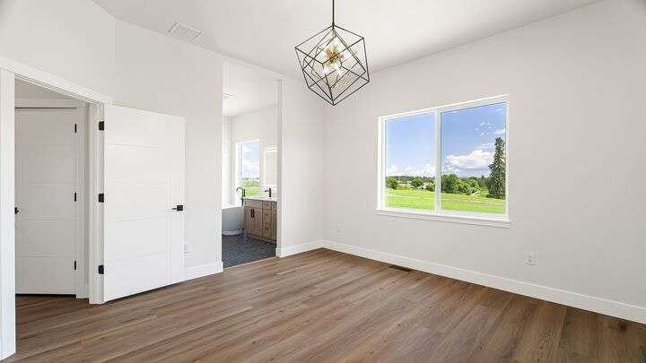Your Dream Country Escape—New Home with Scenic Mt. Spokane Views! Experience refined country living in this stunning new-construction home, scheduled for completion in 6 to 8 weeks. This 4-bed, 3-bath home features an open layout, 10-ft ceilings, and elegant quartz surfaces throughout, blending luxury with lasting quality. The chef's kitchen boasts premium Cosmo stainless steel appliances, perfect for entertaining or everyday living. Oversized windows frame breathtaking views of Mt. Spokane. Enjoy both privacy and convenience just 2.5 miles from shopping and 25 minutes to Spokane. Outdoor recreation is close by, including ski resorts, lakes, and hiking. Additional highlights include a 400-amp electrical panel, high-efficiency heat pump, central air, and an oversized 3-car garage. Located in the desirable Deer Park School District. Some photos are from a recently completed home to showcase finishes and design quality. Photos taken by Ahh Snap! Media.