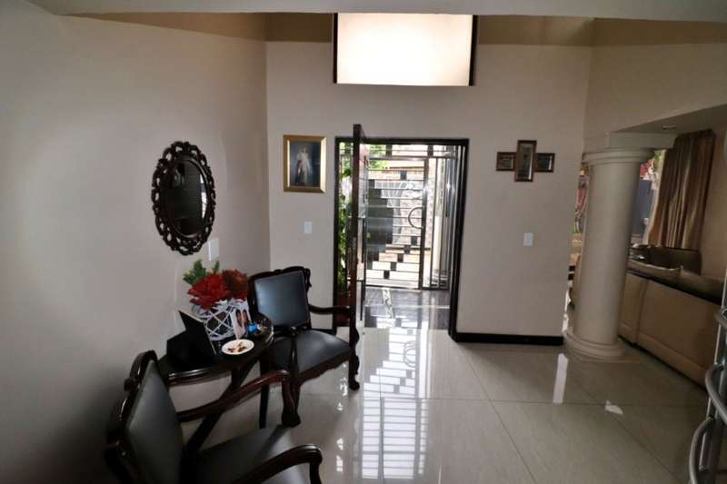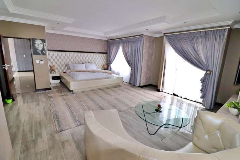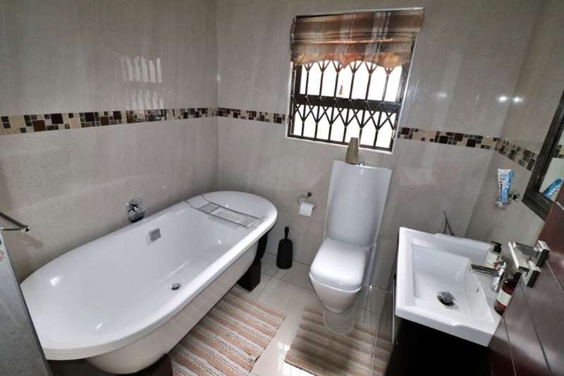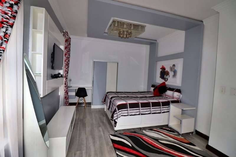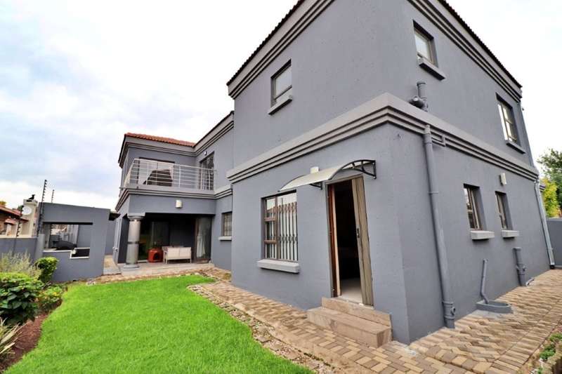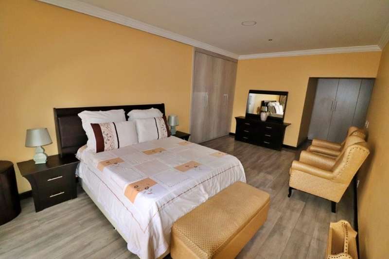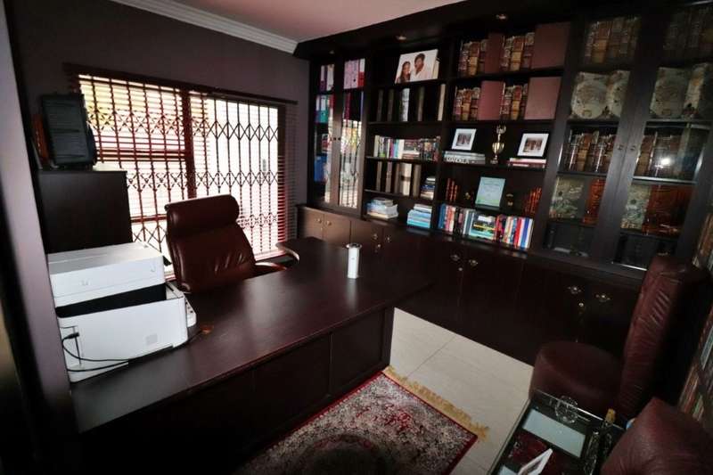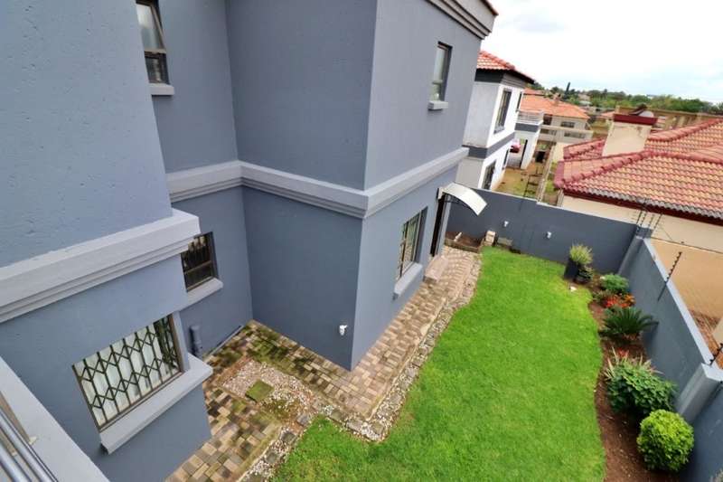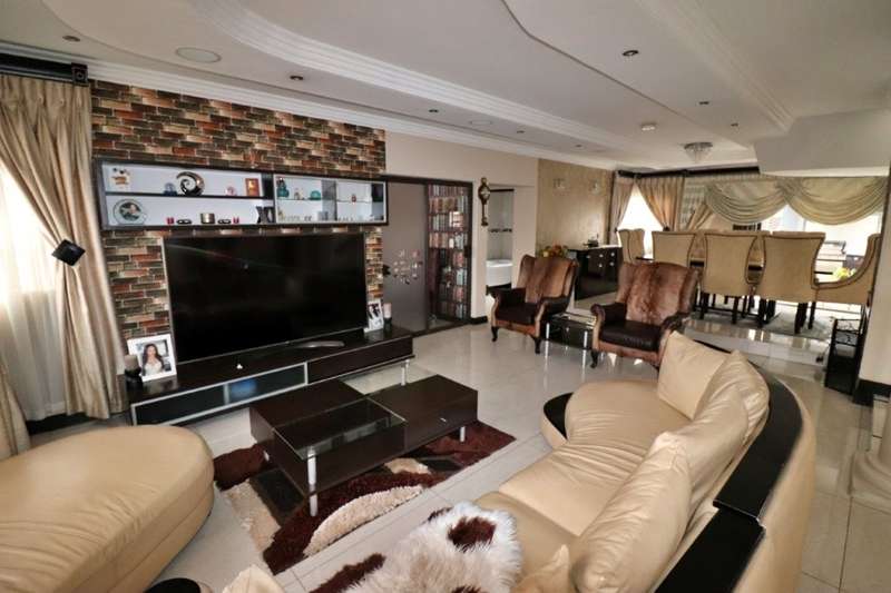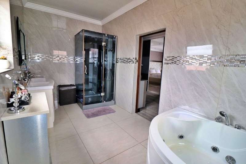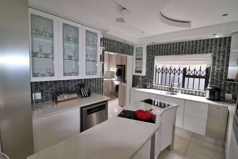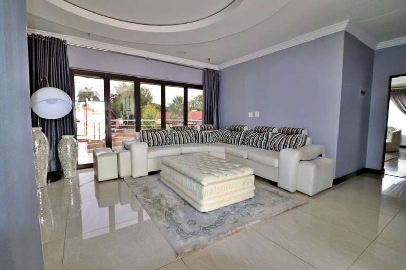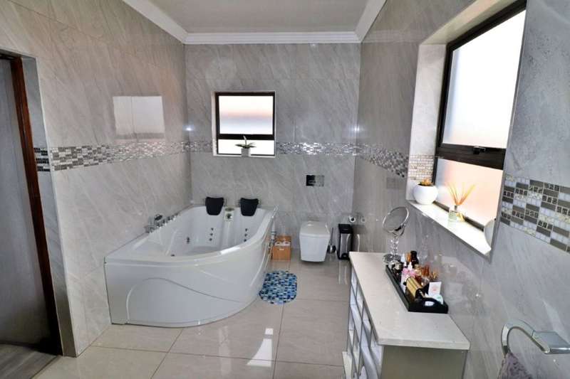 This exquisite 4-bedroom, 3-bathroom residence is the epitome of modern elegance, featuring high-end finishes and a seamless blend of style, comfort, and functionality. Property Highlights: • Elegant open-plan living and dining spaces flow effortlessly from a grand entrance hall, perfect for both entertaining and everyday family living • Three spacious upstairs bedrooms, all with built-in cupboards • Luxurious master suite with its own private lounge and walk-in wardrobe • A generously sized fourth guest bedroom is located on the ground floor, complete with built-in cupboards • Two sleek, modern bathrooms upstairs (including a main en-suite) • Full guest bathroom on the lower level Gourmet Kitchen & Utility Features: • Fully equipped contemporary kitchen with built-in oven, microwave, coffee machine, and a stylish breakfast nook • Premium stone countertops, designated space for a dishwasher • Separate scullery with space for a washing machine and tumble dryer Upstairs Retreat: • Leisure lounge and dedicated media room with stacking doors opening to a spacious balcony • Personal gym or fitness area • Private office space or business hub Outdoor & Additional Amenities: • Entertainer’s terrace featuring a built-in braai area – your very own outdoor haven • Separate staff accommodation with bedroom, full bathroom, and kitchenette • Solar geyser for energy efficiency • Automated double garage • Advanced security including alarm system, electric fencing, CCTV surveillance, and automated gates This ultra-modern home offers everything a discerning buyer could want – space, elegance, and security – all set in the sought-after neighborhood of Mimosa Park.