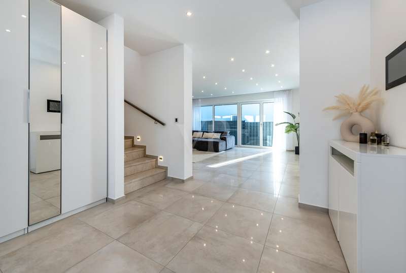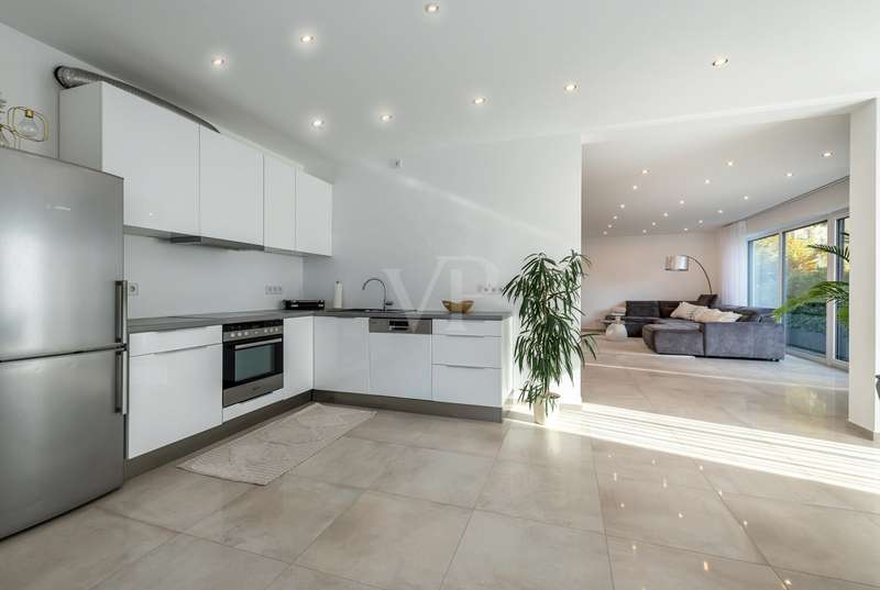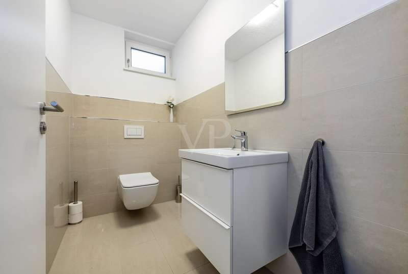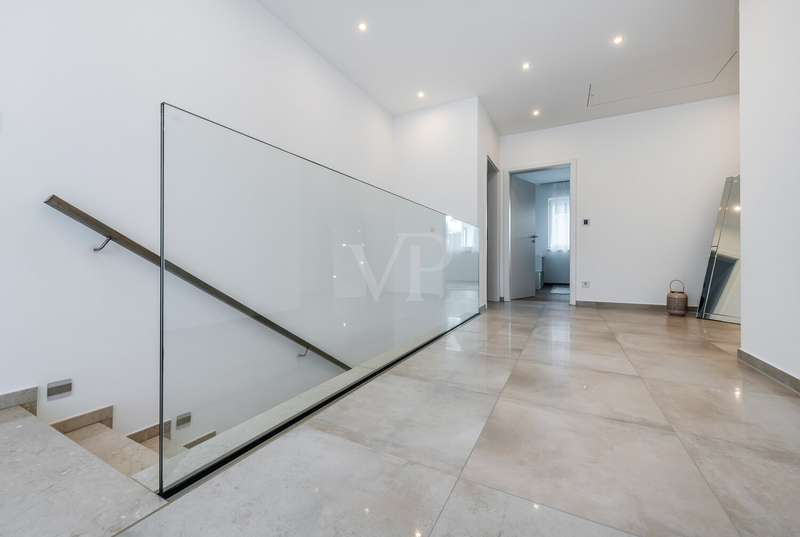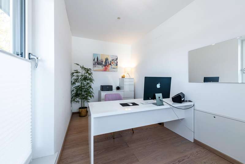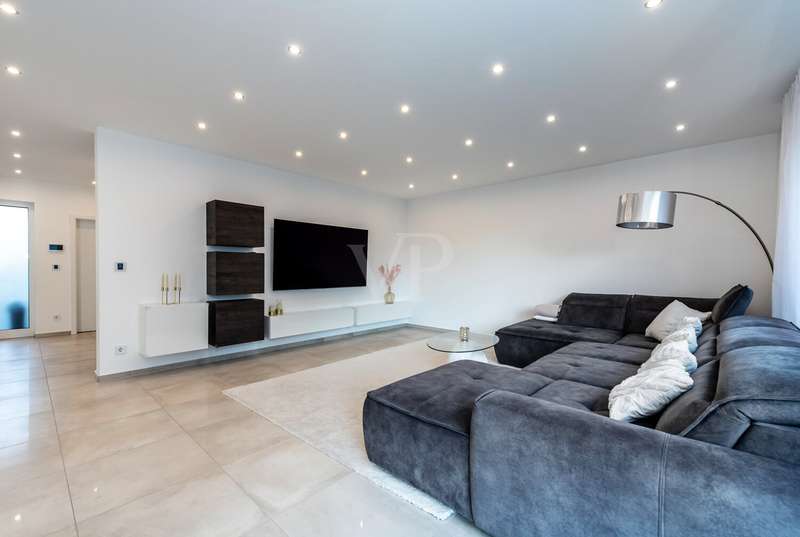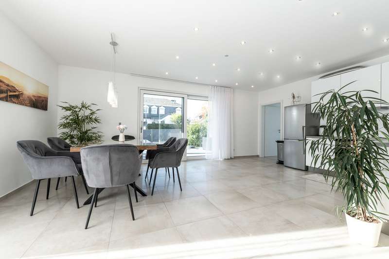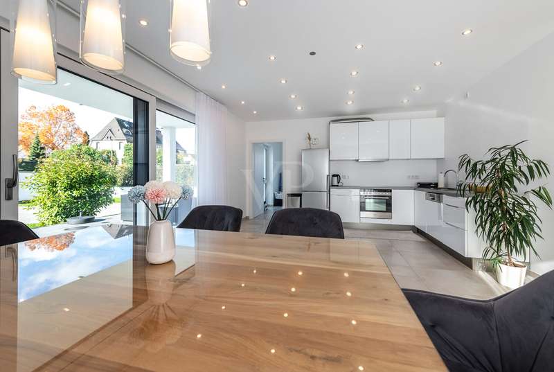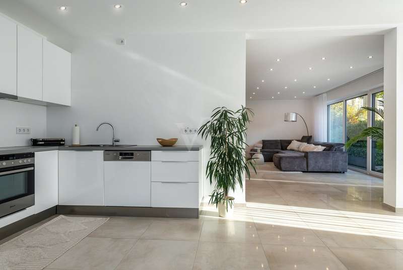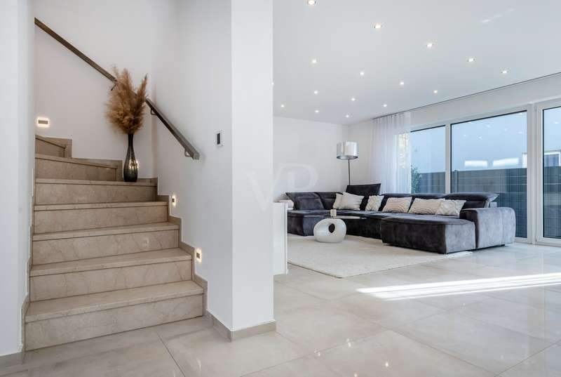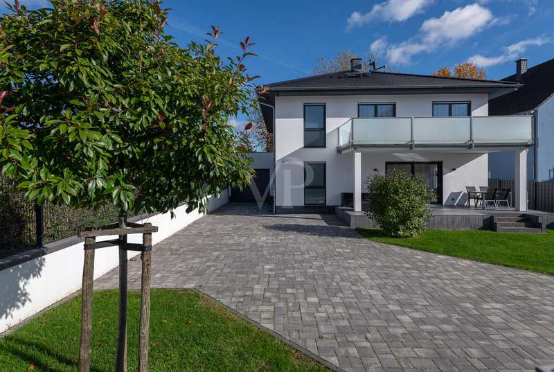 Built in 2016 in a central yet quiet location in Oestrich-Winkel on a plot of approx. 567 m², this modern detached house impresses with its clear architecture and spaciousness. The house is characterized by high-quality, upscale furnishings and a modern design. The living space of approx. 212 m² is spread over two floors and offers enough space for the family in light-flooded rooms with floor-to-ceiling windows. The generously designed living area on the ground floor with adjoining open-plan dining area and integrated kitchen conveys a bright, modern feeling of living. Technical refinements and first-class fittings characterize the entire house: triple glazing, underfloor heating, an efficient heat pump, network connections in all rooms and a smart home system set the highest living standards. A spacious sun terrace extends the living space in summer and creates room for relaxation and recreation in a natural environment. The floor plan on the first floor is rounded off with a practical utility/storage room, a guest WC and direct access to the spacious garage. (3 CARS) On the upper floor, the available space is complemented by a dressing room/guest room or study and two bright, large children's rooms with a shared daylight bathroom. The spacious parents' wing with en-suite bathroom and access to the south-facing balcony impresses with its spaciousness and elegant lightness. A garage with 3 parking spaces and two outdoor parking spaces (carport permit available) offer space for several vehicles. This modern detached house combines living close to nature with very good infrastructure. Quick connections to Eltville, Wiesbaden and the Rhine-Main region as well as a variety of shopping facilities, schools, sports and leisure facilities round off this attractive real estate offer. Have we piqued your interest? We look forward to your call!