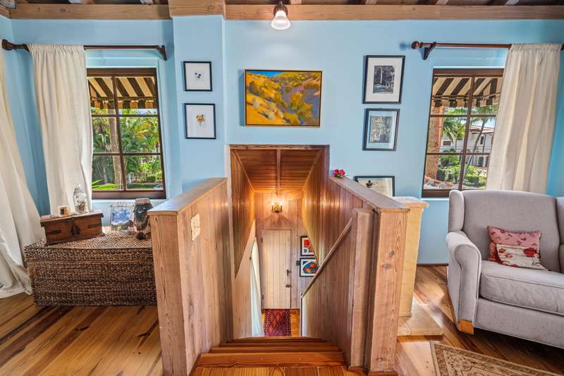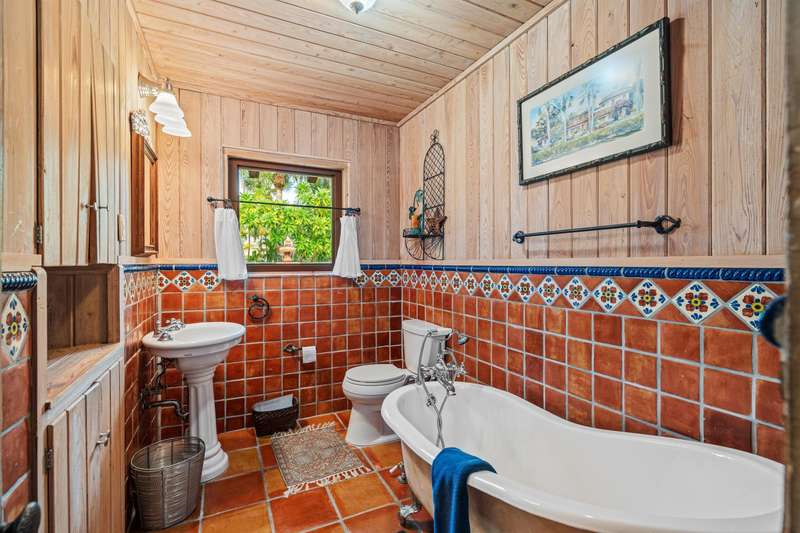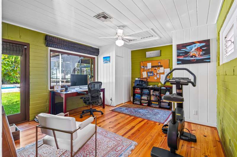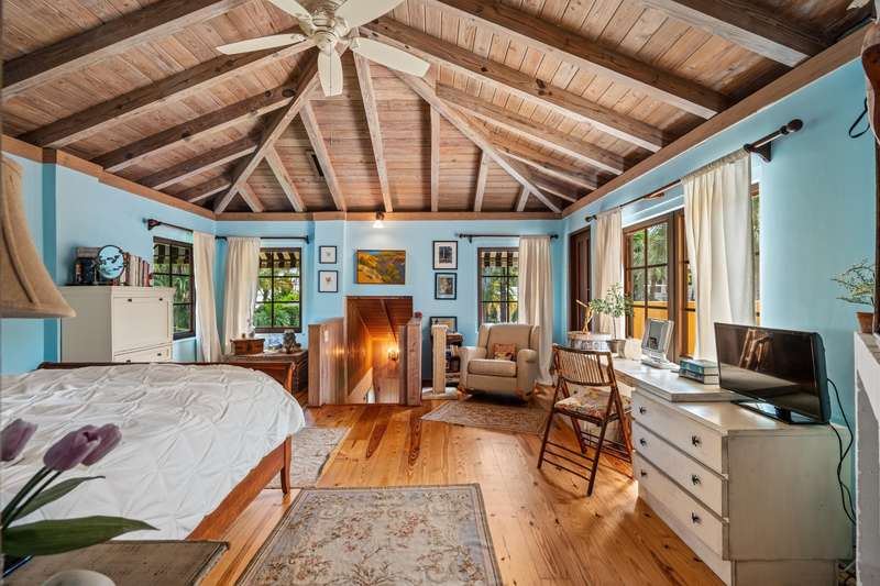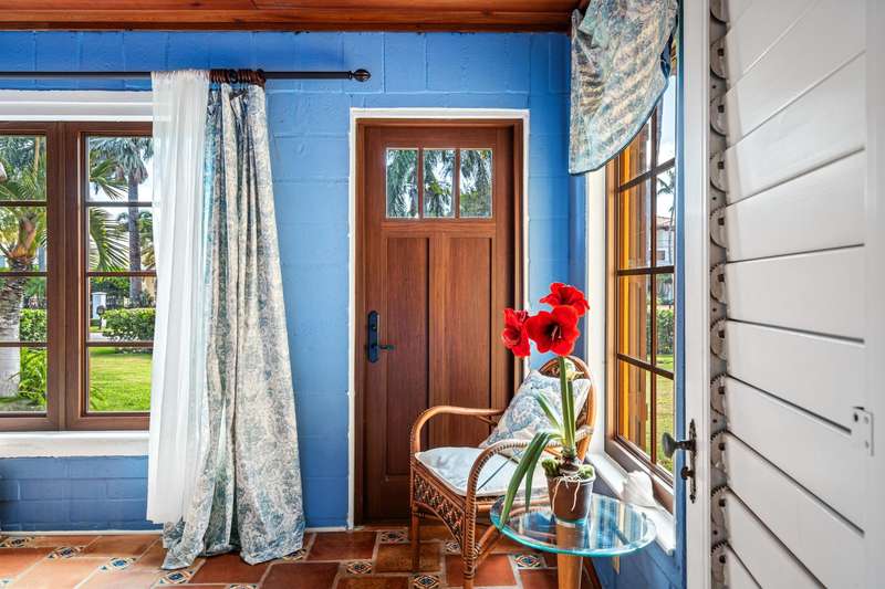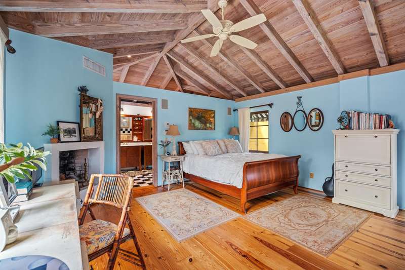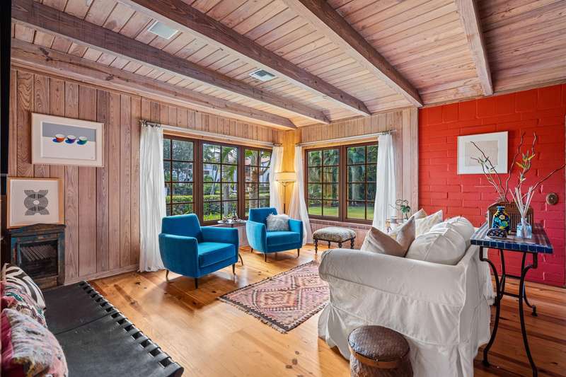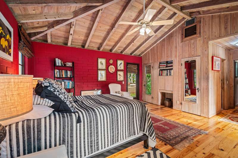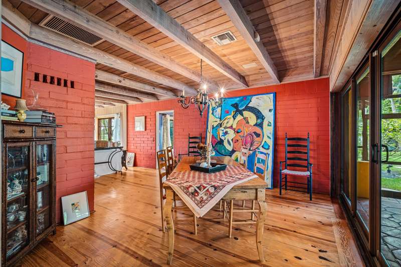 Beautifully maintained and thoughtfully updated 1950s residence, steeped in historical significance, was designed by renowned architect Beford Shoumate. This exquisite three-bedroom residence features an array of striking characteristics maintaining the charm of its era that include wood-beamed ceilings and rich cypress paneling complemented by Dade County pine and Mexican-tile flooring