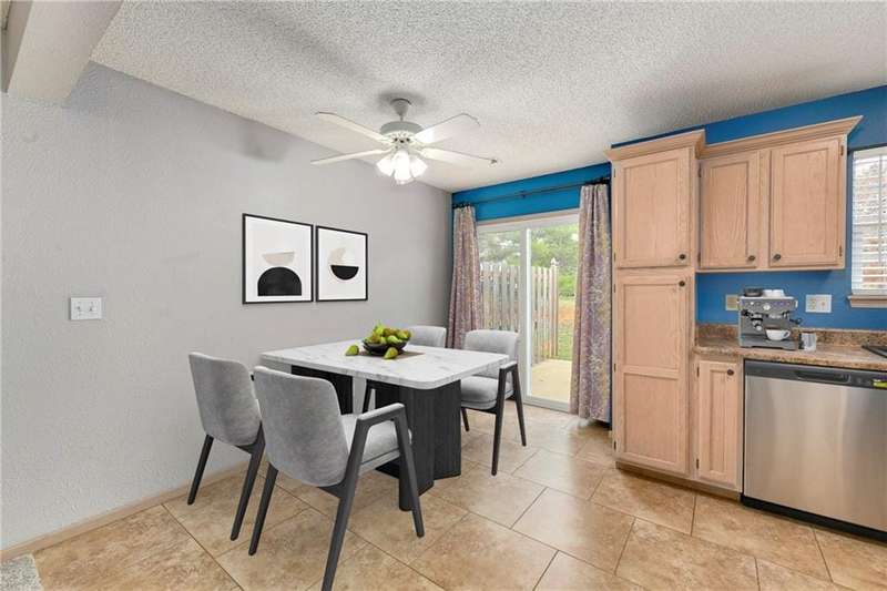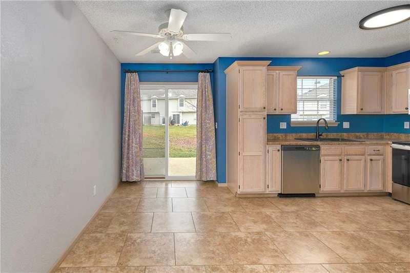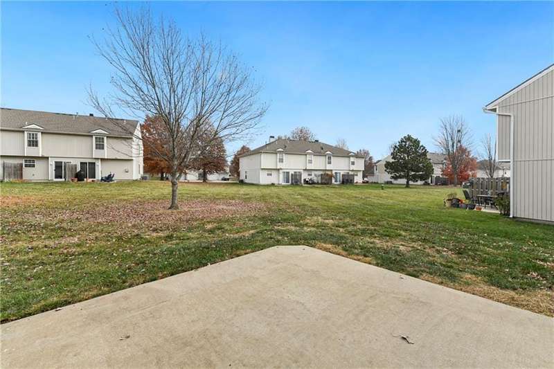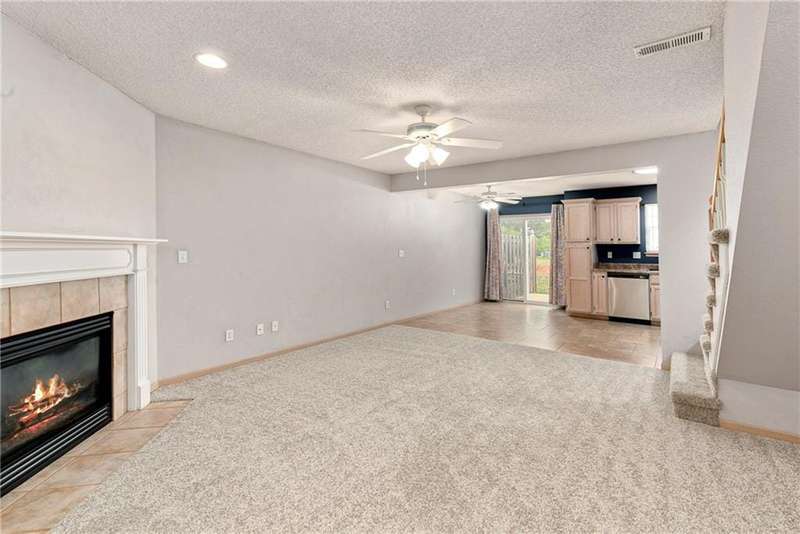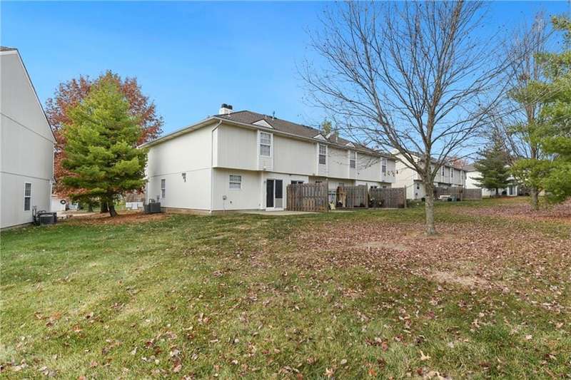 Highly sought after end unit that backs to greenspace with trees. MOVE IN READY!!! Cleaned from top to bottom (even power washed the patio) with a splash of color (various ocean/sky blues and relaxing grays). NEW - kitchen SS appliances (stove, microwave, & dishwasher), carpet throughout the whole unit, kitchen faucet, primary suite - light fixtures, sink faucet, shower & bathtub faucets, toilet flange ring & wax ring), water heater (next week), window & storm door screens (4), & 2 sets of blinds. Seller replaced A/C unit the summer of 2023 to a Trane XR. Other updates include - kitchen ceiling light fixture, taller toilet in primary bath, & new fan in living room. BIG BONUS - Garage features an attic pull-down with stairs for additional storage. Front faces West (sun to clear driveway). The patio is on the East (shade for the evening). Washer & dryer stay with the unit. Amenities include lawn care, snow removal, community pool, exterior maintenance. Neighborhood is owner occupied only, no rentals allowed. Home is close to shopping and restaurants, with quick highway access, and located within award winning Lee's Summit School District (New middle school - 1 mile to the East). Dont miss out on this fantastic opportunity to own a move-in ready home with thoughtful updates in a prime location. COME SEE IT TODAY!