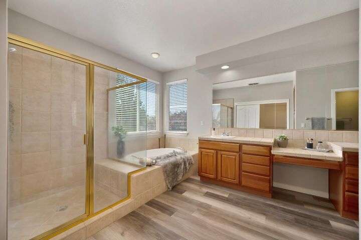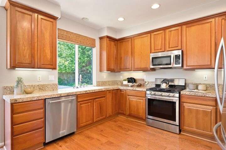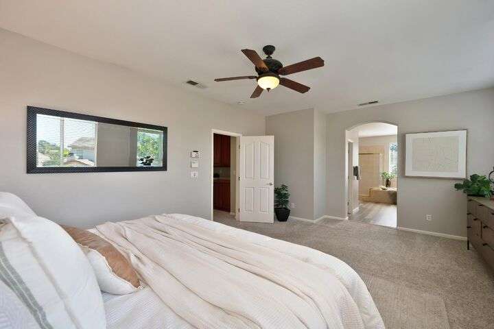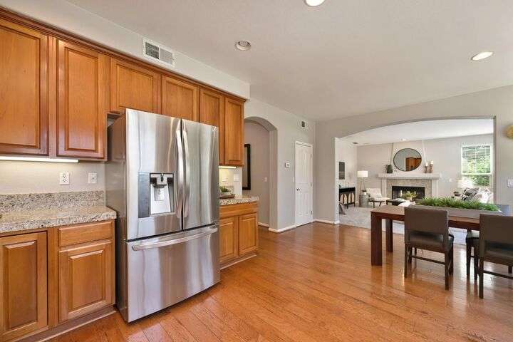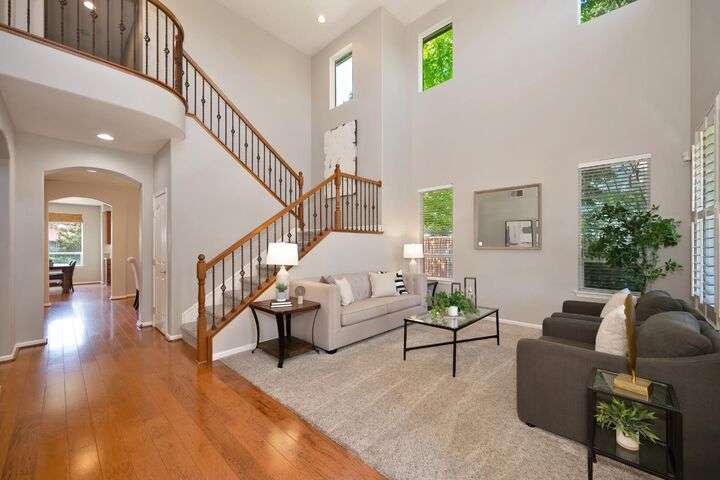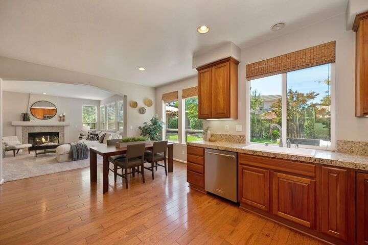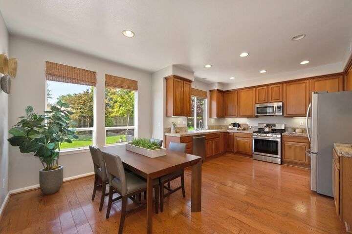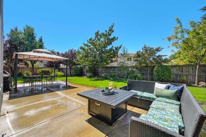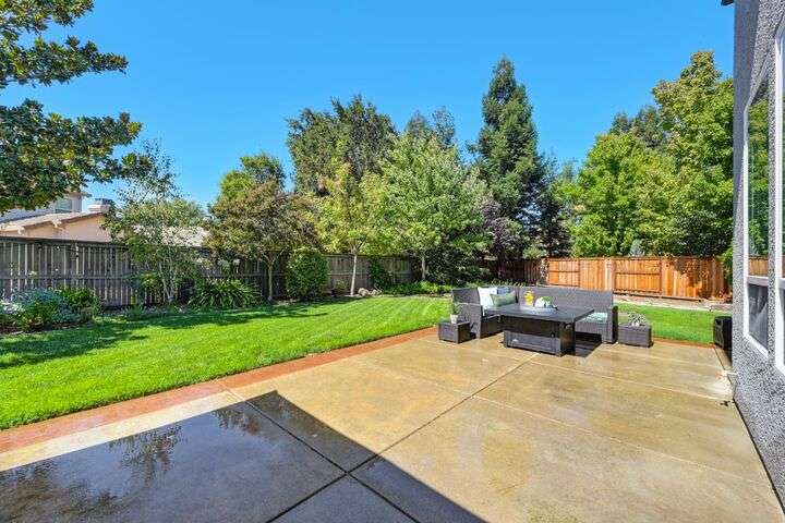 Welcome to this spacious 5-bedroom, 3-bathroom home nestled in one of Elk Grove's most desirable neighborhoods. Situated on nearly a quarter-acre lot at the end of a quiet court, this property offers comfort, functionality, and location. Step inside to soaring vaulted ceilings that create an inviting atmosphere in the entry and living room. The open-concept kitchen features granite counters and flows seamlessly into the dining area and den, making it ideal for both everyday living. The expansive primary suite includes a walk-in closet, spacious bath and plenty of room to unwind. The large backyard is designed for gatherings, with a large patio perfect for barbecues and family events. Additional features include gated RV parking, a 3-car tandem garage, and abundant storage throughout the home. Conveniently located near shopping, dining, and freeway access, this home checks all the boxes for modern living in a prime Elk Grove location.