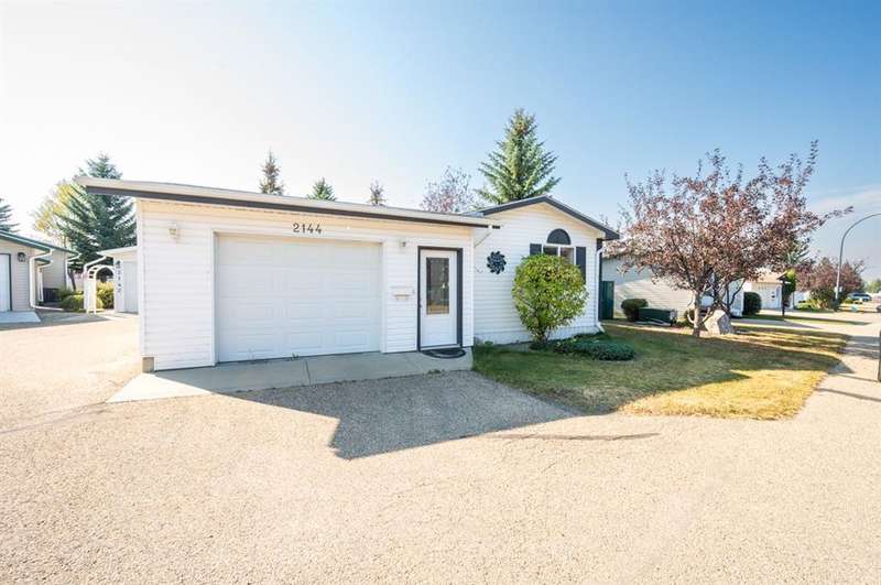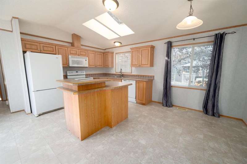 QUIET, QUAINT ADULT LIVING! Welcome to Davenport Place, an immaculate 55+ community in desirable Davenport / Deer Park. This charming mobile is move-in ready, and includes 3 bedrooms and 2 full bathrooms - primary bedroom with full ensuite. The bright kitchen includes a centre island with eat-up bar, large dining space and patio doors to a private deck. The attached oversized single garage (21’ long x 18’ wide) offers ample storage space and frost free parking all winter long! Lot rent includes yard maintenance and grass cutting - low impact living perfect for those buyers looking for convenience and freedom!